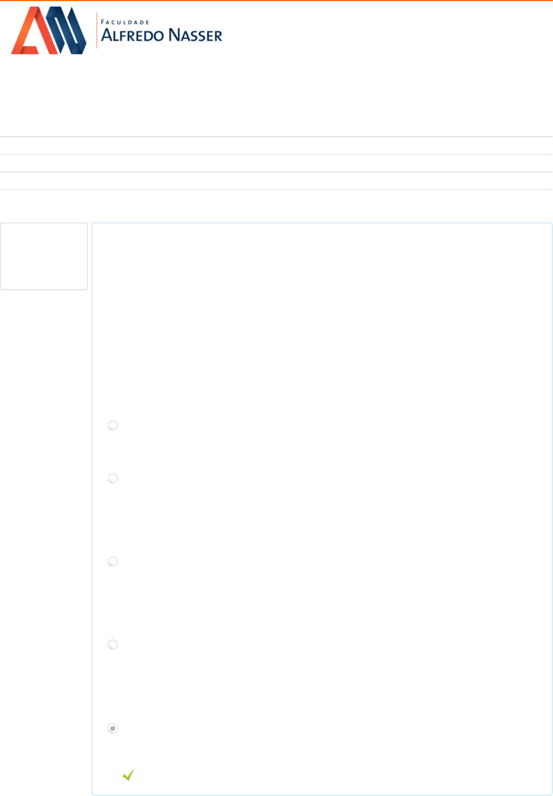 Página inicial → EaD → GRADUAÇÃO → Filosofia Direito → Filosofia Direito - 2018/2 - DM4 → Aula 2 - 29/08/18 a 11/09/18 → Aula 2 - Atividade Questão 1 Correto Vale 0,25 ponto(s). Iniciado em sexta, 31 Ago 2018, 05:00 Estado Finalizada Concluída em sexta, 31 Ago 2018, 05:02 Tempo empregado 2 minutos 7 segundos Cada cultura apresenta uma rede de mitos, de valores, de normas, de expectativas e de vários outros elementos simbólicos que definem as nossas visões de mundo. Quando uma determinada visão de mundo adquire um caráter hegemônico dentro de uma cultura, nós costumamos chamá-la de tradição. Assim, cada tradição é um conjunto de concepções que não precisa de justificativa porque elas são sentidas como naturais dentro de uma certa comunidade. Quem vive imerso numa determinada tradição não a compreende como uma visão de mundo, mas como a visão correta do Mundo. Esta é uma passagem do texto de Alexandre Araújo Costa adotado como referencial teórico em nossa aula, de acordo com este referencial assinale abaixo a alternativa que corresponda ao que é correto. Escolha uma: a. Os sofistas eram Soldados que andavam de pólis em pólis ensinando essa arte a quem podia pagar pelos seus serviços. Nessa medida, eles eram quase sempre estrangeiros, pois eles raramente estavam na sua cidade natal. b. O sofista foi sempre repleto de estranhamento com a cultura alheia, pois ele sabia ver muito bem toda a diferença entre as várias culturas que ele encontrava. Ao mesmo tempo, eles eram franceses, de tal forma que sua mirada não radicalmente externa, pois o estranhamento frente à pluralidade dos costumes era compensado pela familiaridade com tudo aquilo que se repetia de forma constante. c. O sofista foi sempre repleto de estranhamento com a cultura alheia, pois ele sabia ver muito bem toda a diferença entre as várias culturas que ele encontrava. Ao mesmo tempo, eles eram gregos, de tal forma que sua mirada não radicalmente externa, pois o estranhamento frente à pluralidade dos costumes era compensado pela falta de familiaridade com tudo aquilo que se repetia de forma constante. d. O sofista foi sempre repleto de estranhamento com a cultura alheia, pois ele não sabia ver muito bem toda a diferença entre as várias culturas que ele encontrava. Ao mesmo tempo, eles eram gregos, de tal forma que sua mirada não radicalmente externa, pois o estranhamento frente à pluralidade dos costumes era compensado pela familiaridade com tudo aquilo que se repetia de forma constante. e. Os sofistas eram professores de retórica que andavam de pólis em pólis ensinando essa arte a quem podia pagar pelos seus serviços. Nessa medida, eles eram quase sempre estrangeiros, pois eles raramente estavam na sua cidade natal. Questão 2 Correto Vale 0,25 ponto(s). Dentro da perspectiva apresentada por Platão no Mito da Caverna pode-se observar que: A razão defendida pelos filósofos equilibrava de maneira inovadora a perspectiva externa dos sofistas (usada para demolir o saber tradicional) e a perspectiva interna dos sábios (usada para falar em nome da nova verdade). Mas, ao contrário dos sofistas, eles não eram tipicamente estrangeiros nômades, mas representantes da própria sociedade, de tal modo que eles precisavam exercitar a sua capacidade de crítica ao ponto de poder olhar os valores de sua própria tradição a partir de uma perspectiva externa. Leia as proposições abaixo e assinale a seguir a correta. I - Olhar nossa própria imagem no espelho com a ingenuidade de uma criança e o estranhamento de um estrangeiro não é nada fácil. E os primeiros filósofos que tentaram compreender os mecanismos dessa aproximação ainda construíam argumentos de modo alegórico (ao modo da mitologia) e não apenas teórico. II – Alguns pesquisadores creditam a alegoria grega mais conhecida é o mito da caverna, contada no Livro VII da República, que é uma tentativa Aristotélica de lidar com a questão da verdade e a função do aprendizado. III - Segundo Aristóteles, a situação dos homens é como a de escravos acorrentados dentro de uma caverna. Imagina homens numa morada subterrânea, em forma de caverna, com uma entrada aberta à luz; esses homens estão aí desde a infância, de perna e pescoço acorrentados, de modo que não podem mexer-se nem ver senão o que está diante deles, pois as correntes os impedem de voltar à cabeça; a luz chega-lhes de uma fogueira acesa numa colina que se ergue por detrás deles; entre o fogo e os prisioneiros passa uma estrada ascendente. Imagina que ao longo dessa estrada está construído um pequeno muro, semelhante às divisórias que os apresentadores de títeres armam diante de si e por cima das quais exibem as suas maravilhas. É verdadeiro o que se afirma em: Escolha uma: a. I apenas b. II e III apenas c. II apenas d. III apenas e. I e III apenas Questão 3 Correto Vale 0,25 ponto(s). Platão é provavelmente o pensador mais influente da filosofia. O modo como ele equacionou as questões da verdade até hoje representa um dos modelos fundamentais do pensamento filosófico. Diante desta afirmação reflita sobre as proposições abaixo assinale a alternativa que corresponda com a verdade. Escolha uma: a. A grande invenção socrática foi a metafísica. Enquanto os filósofos naturalistas buscavam explicar o mundo a partir de elementos com existência física (água, ar, quatro elementos, átomos etc.), Platão percebeu a insuficiência dessas tentativas. b. Sócrates era um mestre da linguagem literária e da construção de alegorias. Os seus livros tinham uma estrutura narrativa, pois ele escrevia na forma de diálogos, normalmente protagonizados por Platão, que foi o seu mestre. c. Platão acentua a necessidade de desvendar as coisas em si, as verdades necessárias, os conceitos mutáveis, que podem ser colocados justificadamente na base das nossas cadeias de explicação do mundo. Essas coisas em si são observáveis no m