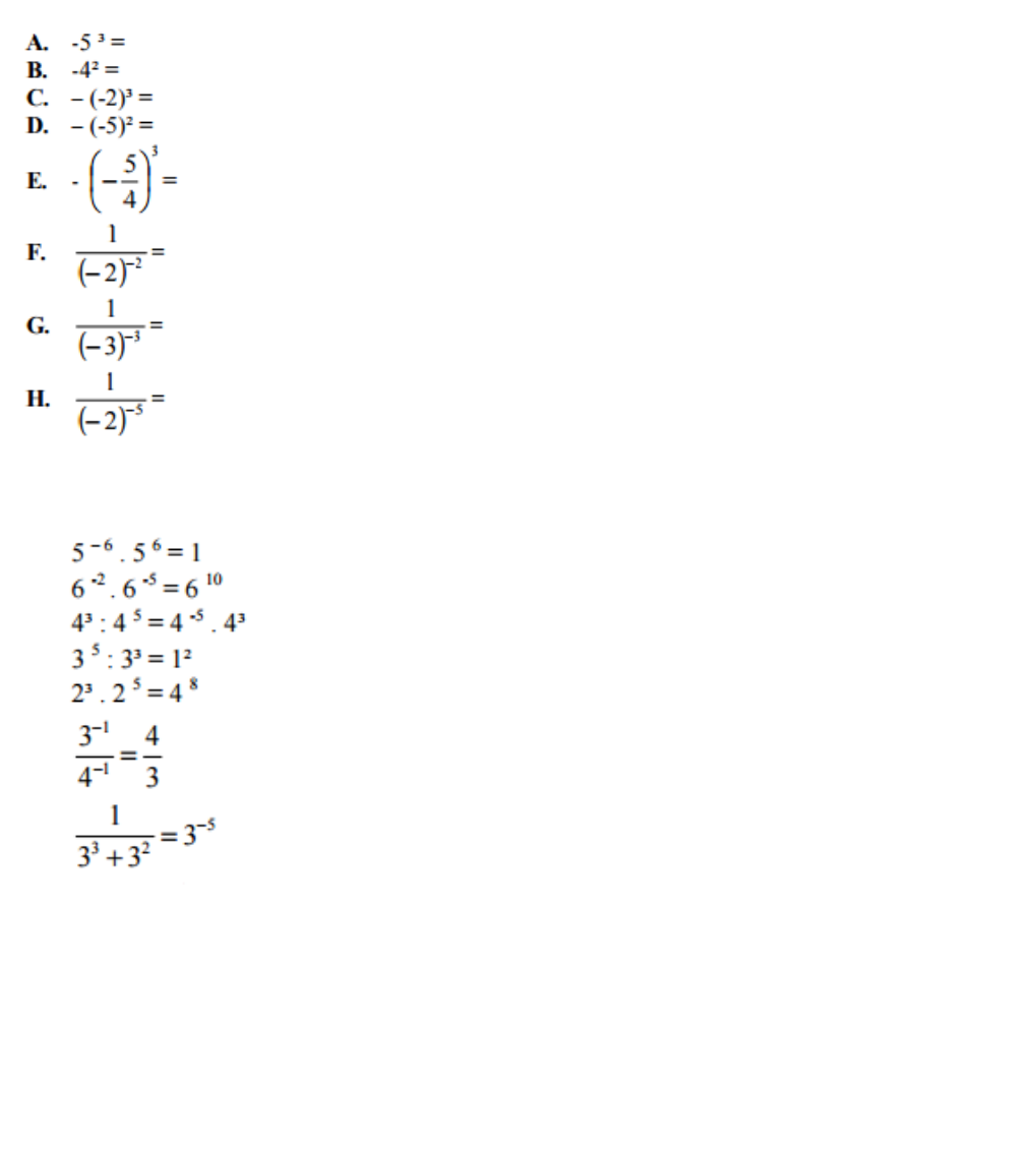 5. Calcule o valor numérico das expressões: