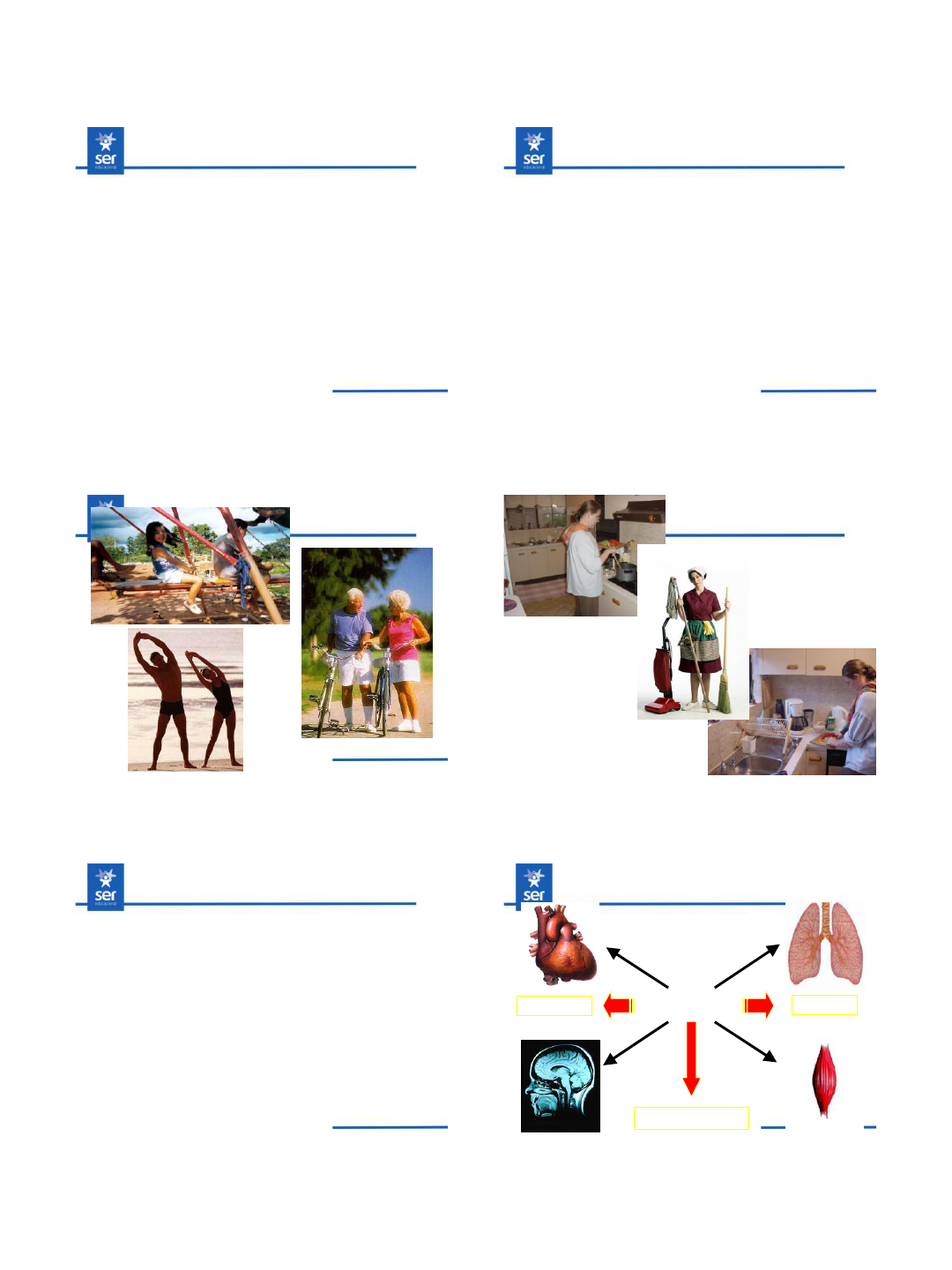 18/08/2018 1 METABOLISMO E SISTEMAS ENERGÉTICOS. Profº M.Sc. Klebson Almeida UNIDADE I EXERCÍCIO FÍSICO O exercício físico, uma das atividades mais comuns da vida diária, envolve um processo biológico bastante complexo, pois, durante a sua realização há o desencadeamento de ajustes hemodinâmicos e metabólicos envolvendo a participação de todos os sistemas que compõem o organismo. Estes ajustes ocorrem com a finalidade de permitir condições necessárias para que ocorra e se mantenha a contração muscular. Fisiologia do Exercício Físico Compreensão dos mecanismos fisiológicos envolvidos na realização do exercício físico Interação dos diferentes sistemas biológicos frente ao exercício físico Mensuração de parâmetros fisiológicos que caracterizam os diferentes tipos e níveis de atividade física Fisiologia do Exercício Físico Metabolismo Figura coração Bioquímica Fisiologia Exercício físico 18/08/2018 2 Fisiologia do Exercício Físico Compreensão dos mecanismos fisiológicos envolvidos na realização do exercício físico Interação dos diferentes sistemas biológicos frente ao exercício físico Mensuração de parâmetros fisiológicos que caracterizam os diferentes tipos e níveis de atividade física EXERCÍCIO FÍSICO Fisiologia do Exercício Físico Compreensão dos mecanismos fisiológicos envolvidos na realização do exercício físico Interação dos diferentes sistemas biológicos frente ao exercício físico Mensuração de parâmetros fisiológicos que caracterizam os diferentes tipos e níveis de atividade física Inspiração ExpiraçãoTranp. O2 Transp. CO2 Prod. CO2 Cons. O2 Circulação periférica Circulação pulmonar VCO2 . VO2 . Exercício Físico Adaptado de Wasserman et al. (1999) Fisiologia do Exercício Físico Consumo de oxigênio (VO2) . Definição Medida de capacidade aeróbia (VO2 máx) Classificação Evolução do treinamento físico . Capacidade máxima ou próxima da máxima de um organismo captar, transportar, liberar e utilizar o oxigênio, principalmente pela musculatura ativa Wasserman et al., 1999 Homens Consumo máximo de oxigênio (ml/kg/min) Idade (anos) Muito fraca Fraca Razoável Boa Excelente 20-29 25 25-33 34-42 43-52 53 + 30-39 23 23-30 31-38 39-48 49 + 40-49 20 20-26 27-35 36-44 45 + 50-59 18 18-24 25-33 34-42 43 + 60-69 16 16-22 23-30 31-40 41 + Exercise testing and training of apparently healthy individuals: A handbook for physicians. Dallas: American Heart Association, 1972. 18/08/2018 3 Mulheres Consumo máximo de oxigênio (ml/kg/min) Idade (anos) Muito fraca Fraca Razoável Boa Excelente 20-29 24 24-30 31-37 38-48 49 + 30-39 20 20-27 28-33 34-44 45 + 40-49 17 17-23 24-30 31-41 42 + 50-59 15 15-20 21-27 28-37 38 + 60-69 13 13-17 18-23 24-34 35 + Exercise testing and training of apparently healthy individuals: A handbook for physicians. Dallas: American Heart Association, 1972. Fisiologia do Exercício Físico Consumo máximo de oxigênio (VO2 máx) . Conceito Saturação do sistema cardiorrespiratório Platô do VO2 Problemas Influências externas (motivação, estímulos) Obtenção do platô do VO2 Limitação: dores musculares/articulares Exposição ao estresse máximo . . ENERGIA • É definida como a capacidade de realizar trabalho ou de gerar calor. • Plantas Autótrofos • Humanos Heterótrofos Wilmore & Costil, Fisiologia do Exercício e Esporte, Edit. Manole, 2000 O ATP fornece a energia química para a contração ATP Nucleotídeo composto por uma base purínica (Adenina), um açúcar com cinco carbonos (Ribose)- ADENOSINA e um unidade trifosfato. O ATP fornece a energia química para a contração O ATP fornece a energia química para a contração 18/08/2018 4 VIAS ENERGÉTICAS RECONVERTEM O ADP ATP ADP ATP = ADP + Pi + H+ + ENERGIA LIBERA: 7,3 Kcal AÇÃO DA ENZIMA: Atpase , Na presença de um cofator metálico : Mg2+ HIDRÓLISE FONTES ENERGÉTICAS Substratos Energéticos Reserva energética Carboidratos, Gorduras e Proteínas FONTES ENERGÉTICAS • Carboidratos (Açúcares) - Átomos de carbono, hidrogênio e oxigênio. - Forma mais simples glicose (C6H12O6) - Fontes: açúcar; doces, amido, encontrado no arroz, milho, farinhas, pães, biscoitos, batatas e fibras. Hespanha, 2004. FONTES ENERGÉTICAS • Carboidratos (Açúcares) - A glicose quando em excesso é armazenada no fígado e no músculo na forma de glicogênio. - Encontrado no citoplasma das células hepáticas e musculares (principalmente) sob forma de grânulos GLICOSE ENERGIA Hespanha, 2004. FONTES ENERGÉTICAS • Gorduras (Lipídios) - Fornecem uma fonte concentrada de energia, que pode ser armazenada. - Quando ingeridas na alimentação são armazenadas no tecido adiposo e nos músculos sob a forma de triglicerídeos. • Fontes : gema de ovo, carnes gordurosas, frutos do mar, mortadela, salame, lingüiça, salsicha bacon, creme de leite, manteiga, queijos, leite integral, cacau, coco, óleos, margarina. Hespanha, 2004. FONTES ENERGÉTICAS • Gorduras (Lipídios) - Estoques de gordura - Estoques de carboidratos - Metabolismo celular Triglicerídeos Glicerol e Ác. Graxos Livres ATP 18/08/2018 5 FONTES ENERGÉTICAS Fornecimento de O2 Glicogênio Muscular e Glicose Sanguínea (Principal fonte energética) Hespanha, 2004. FONTES ENERGÉTICAS GORDURAS X CARBOIDRATOS FONTES ENERGÉTICAS GORDURAS X CARBOIDRATOS FONTES ENERGÉTICAS • Proteínas - São moléculas construídas por compostos denominados aminoácidos. - Estas representam cerca de 15% do peso corporal e cerca de 23% da reserva energética orgânica. - Fontes: - Origem animal: carnes, ovos (clara), leite e derivados (queijo, coalhada, iogurte, requeijão) Origem vegetal: feijão, lentilha, ervilha, soja, grão-de-bico. FONTES ENERGÉTICAS • Proteínas - Contribuem com menos de 10% do suprimento energético total. - Unidades básicas Aminoácidos ENERGIA Glicose (glicogênese) Ác. Graxo Livres (lipogênese) Mc. Ardle, Katch e Katch, 2002. UTILIZA