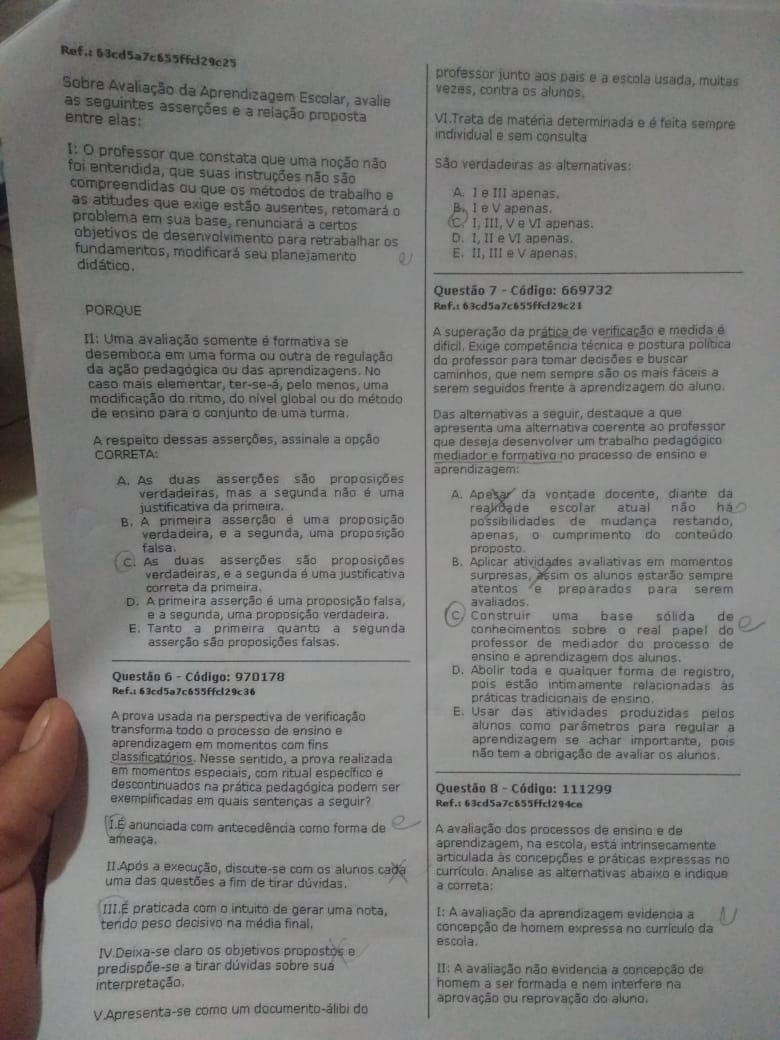 Considerando as assertivas a seguir sobre a atuação do professor no processo avaliativo, assinale a alternativa correspondente a uma prática docent...
