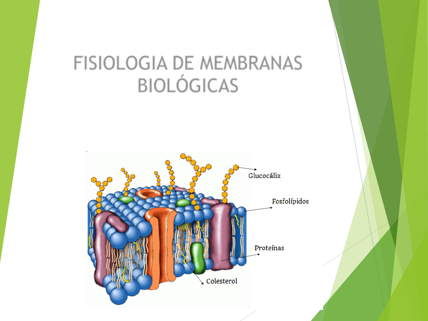 FISIOLOGIA DE MEMBRANAS BIOLÓGICAS PROFª. SABRINA QUEIROZ A Membrana Plasmática: Estrutura Determina os limites da célula, separando os dois principais compartimentos líquidos do corpo: - Líquido intracelular: dentro da célula; - Líquido extracelular: fora das células. A Membrana Plasmática: Estrutura MODELO MOSÁICO-FLUIDO Descreve a membrana como uma estrutura extremamente delgada, composta de uma dupla camada de moléculas lipídicas com proteínas dispersas nela. Proteínas em constante movimento. A Membrana Plasmática: Estrutura BICAMADA LIPÍDICA Forma o “tecido” básico da membrana; Constituída em grande parte por fosfolipídeos, em menor quantidade de colesterol e glicolipídeos. São compostas de duas lâminas paralelas de moléculas de fosfolipídeos com as caudas de uma camada voltadas para as caudas da outra e com as cabeças polares em contato com a água (interno/externo). Disposição das Proteínas da Membrana As proteínas compõem cerca de metade da massa da membrana plasmática e são responsáveis pela maioria das funções especializadas da membrana. Proteínas integrais: - Firmemente inserida na bicamada lipídica; são proteínas transmembrana; função de mecanismo de transporte. Proteínas periféricas: - rede de filamentos que ajudam a sustentar a membrana a partir do seu lado citoplasmático; função mecânica – conexão entre células para mantê-las unidas. Henrikson, et al. 1999 Funções das Proteínas da Membrana M A R IE B & H O E H N , 2 0 0 9 Especializações da membrana plasmática Microvilosidades - São prolongamentos diminutos da membrana, em forma de dedo, que se projetam a partir de uma superfície celular livre ou exposta. Especializações da membrana plasmática Junções da membrana - Junções oclusivas: série de moléculas de proteínas integrais das membranas plasmáticas de células adjacentes fusiona-se formando uma junção impermeável que circunda toda a célula. Bloqueia a passagem de moléculas. Especializações da membrana plasmática - Desmossomos: são junções ancoradoras, acopladores mecânicos, espalhados pelas superfícies laterais de células vizinhas que impedem sua separação. Especializações da membrana plasmática - Junções comunicantes: as células conectam-se por cilindros ocos chamados de conexons, formados por proteínas transmembrana. A Membrana Plasmática: Funções Isolamento Físico: A membrana celular age como uma barreira física que separa o interior da célula (citosol ou fluido intracelular) do fluido extra-celular. Regulação das Trocas: A membrana celular controla a entrada de íons e nutrientes, a eliminação de excretas, e a liberação de produtos de secreção. Comunicação Intercelular e com seu Ambiente: Na membrana celular existem receptores que permitem à célula reconhecer e responder a moléculas ou a mudanças no seu ambiente externo. Suporte Estrutural: A Membrana Plasmática: Transporte através da membrana Processos Passivos: as substâncias atravessam a membrana sem qualquer gasto energético celular. - Difusão simples - Difusão facilitada = Carreadores / Canais - Osmose Processos Ativos: a célula fornece energia metabólica (ATP) necessária para mover as substâncias através da membrana. - Transporte Ativo = Primário / Secundário - Transporte Vesicular A Membrana Plasmática: Transporte através da membrana Processos Passivos: Princípio da Difusão - é a tendência das moléculas ou dos íons de se distribuir uniformemente por todo o meio. A Membrana Plasmática: Transporte através da membrana Princípio da Difusão: Características - As moléculas difundem-se passivamente ou a favor do seu gradiente de concentração (de uma área de maior concentração para uma área de menor concentração); - A força motriz para a difusão é a energia cinética das próprias moléculas; - A velocidade de difusão é influenciada pelo tamanho da molécula (quanto menor, mais rápido); e pela temperatura (quanto mais quente, mais rápido). A Membrana Plasmática: Transporte através da membrana Tipos: Difusão Simples - É a difusão livre (sem auxilio) de moléculas lipossolúveis ou de partículas muito pequenas para dentro ou para fora das célula. A Membrana Plasmática: Transporte através da membrana Difusão Facilitada - As moléculas (glicose, aminoácidos, íons) são transportadas passivamente, mesmo sendo incapazes de atravessar a bicamada lipídica. - A substância transportada liga-se a uma proteína carreadora em um dos lados da membrana sendo levada para o outro lado ou move-se através de poros aquosos dos canais proteicos. A Membrana Plasmática: Transporte através da membrana Difusão Facilitada Carreadores (Transportadores) A Membrana Plasmática: Transporte através da membrana Difusão Facilitada Canais A Membrana Plasmática: Transporte através da membrana Osmose - é a difusão de um solvente (água), através de uma membrana semipermeável; - só ocorre sempre que a concentração de água entre os dois lados de uma membrana é diferente. - Aquaporinas: proteínas transmembrana que atuam como canais para a água. A Membrana Plasmática: Transporte através da membrana - Osmolaridade Pressão hidrostática (pressão exercida pela água contra a membrana) dentro da célula iguala-se à pressão osmótica – a tendência da célula de resistir à entrada adicional de água. A Membrana Plasmática: Transporte através da membrana Osmose Definição de hipertônico: - O meio hipertônico é quando a concentração do soluto é maior que a concentração do solvente; - Quando um meio é hipertônico ele possui uma grande quantidade de sais ou de produtos que aumentam a osmolaridade do líquido; - Quando uma célula entra em contato com um meio hipertônico, a água que está no centro dela vai difundir para o meio hipertônico, que possui maior osmolaridade que dentro da célula. Fazendo com que essa célula murche. A Membrana Plasmática: