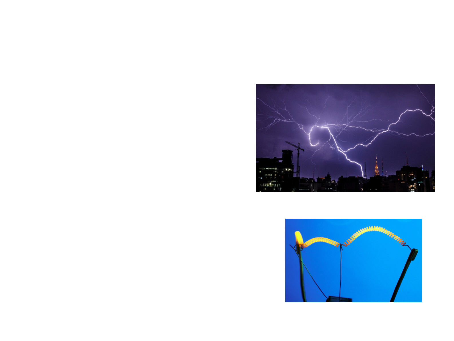 Eletrodinâmica ● Trata-se do estudo das correntes elétricas. Que por sua vez são FLUXOS ORDENADOS DE ELÉTRONS. ● Esse fenômeno se dá em condições especiais, mas são extremamente comuns. Quando acendemos uma lâmpada, quando usamos os celulares, quando um raio ilumina a noite em tempestade e muitos outros exemplos. Materiais condutores e isolantes ● Condutores são aqueles materiais que permitem o trânsito dos elétrons. (para se aprofundar, se desejar, pesquise por “banda de condução”) ● Isolantes apresentam uma enorme resistência a passagem dos elétrons. Na verdade todos os materiais são condutores, mas para isso a diferença de potencial entre as extremidades do fio precisa ser grande o suficiente. Note que o ar é um isolante elétrico, mas os raios são enormes correntes elétricas atravessando o espaço entre o solo e as nuvens. Materiais condutores e isolantes Cobre - condutor borracha - isolante Materiais condutores e isolantes ● Importante sabermos que, em condições normais, os elétrons em num condutor nunca trafegam sem alguma resistência a esse movimento. Nesse processo há sim perda de energia e isso pode ser notado pelo aumento da temperatura do condutor com a passagem dos elétrons. A esse fenômeno damos o nome de efeito joule. ● Em verde é assim que vários aparelhos domésticos funcionam, se aproveitando do efeito joule. Materiais condutores e isolantes ● Quais desses aparelhos você acha que usam o efeito joule em seu funcionamento? Como se dão as correntes elétricas? ● Normalmente os elétrons na banda de condução de um material estão sim se movimentando, entretanto aleatoriamente. Dessa forma não conseguimos aproveitar a sua energia. ● Quando o fluxo se dá ordenadamente, ou seja a maioria dos elétrons nessa condição caminham de uma extremidade para outra, podemos utilizar essa energia. ● Esse fenômeno acontece quando há uma diferença de potencial (d.d.p) entre as extremidades do condutor. Unidade da d.d.p é o Volt (V). pilhas baterias e até mesmo a tomada de sua casa são objetos que fornecem essa Voltagem aos aparelhos que usamos diariamente. Relembrando o campo elétrico ● Linhas de campo de cargas elétricas. ● Linhas de campo de cargas elétricas interagindo entre si. ● Podemos calcular a intensidade do campo elétrico segundo as expressões. E⃗= F⃗ q ou E⃗=K Q r⃗ Potencial elétrico ● Energia Potencial Elétrica ● Essa expressão nos fornece o quanto de energia é necessária para mover uma carga q com relação à carga Q, sob o efeito da lei de coulomb, de uma distância infinitamente grande (onde estipulamos energia zero) à uma posição finita r, ou seja o trabalho realizado. Ue=K Q⋅q r ● Ex: Duas cargas de 1C estão separadas de uma distância de 10m. Um indivíduo as aproxima em 1m, quantos joules de trabalho ele realizou? Ue1=9⋅10 9 1⋅1 10 =9⋅108 j Ue2=9⋅10 9 1⋅1 9 =1⋅109 j Ue2−Ue1=10⋅10 8−9⋅108=1⋅108 j Potencial elétrico ● Já o potencial elétrico é definido como a razão entre a energia potencial elétrica pela carga elétrica de prova colocada ou imersa em um campo elétrico. ● Assim devemos encarar essa informação como sendo a capacidade de uma carga tem de realizar trabalho sobre outra e não menos importante a unidade dessa grandeza é o Volt (V). V=K Q⋅q r /q→V=K Q r V=Ue /q Ex: ● Vamos supor que temos uma partícula carregada com carga q = 4 μC e que ela seja colocada em um ponto A de um campo elétrico cujo potencial elétrico seja igual a 60 V. Se essa partícula ir, espontaneamente, para um ponto B, cujo potencial elétrico seja 20 V, qual será o valor da energia potencial dessa carga quando ela estiver no ponto A e posteriormente no ponto B? ● Vamos supor que temos uma partícula carregada com carga q = 4 μC e que ela seja colocada em um ponto A de um campo elétrico cujo potencial elétrico seja igual a 60 V. Se essa partícula ir, espontaneamente, para um ponto B, cujo potencial elétrico seja 20 V, qual será o valor da energia potencial dessa carga quando ela estiver no ponto A e posteriormente no ponto B? Ue A=4⋅10 −6⋅60=2,4⋅10−4 j UeB=4⋅10 −6⋅20=8⋅10−4 j ● Obs: bem mais simples que no caso anterior, não? Ex: ● (UFSM-RS) Uma partícula com carga q = 2 . 10-7 C se desloca do ponto A ao ponto B, que se localizam numa região em que existe um campo elétrico. Durante esse deslocamento, a força elétrica realiza um trabalho igual a 4 . 10- 3 J sobre a partícula. A diferença de potencial VA – VB entre os dois pontos considerados vale, em V: V=Ue q ● Como se trata da diferença de potencial, podemos estabelecer o zero de potencial elétrico onde for mais conveniente. V a−V b= Uea−Ue b q sejaUb=0,então :V a−V b= Uea q =2⋅104V Diferença de potencial (d.d.p) ● Seja o potencial: V=K Q r então: v a−vb=K Q r =V=K Q r a−r b Resistência elétrica dos materiais ● É a dificuldade que os elétrons têm de passar pelos condutores elétricos, em função dessa características existe o efeito joule, ou seja conversão de energia elétrica em energia térmica. R=ρ l A Onde: ● ρ é a resistividade elétrica ● l comprimento ● A área da secção transversal do condutor Corrente elétrica ● Como já vimos é o fluxo de elétrons ordenado. Mas e sua forma matemática? i=|Q| Δt ● Assim a corrente elétrica i fica definida como a quantidade de elétrons em coulomb por intervalo de tempo. Essa unidade C/s chamamos de Ampére (A). Segunda lei de o Ohm V=R⋅i Segunda lei de o Ohm Ou seja a diferença de potencial em um circuito elétrico tem uma relação direta com a corrente elétrica levado por uma constante R, que é uma característica do material condutor ou componente do circuito elétrico. Slide 1 Slide 2 Slide 3 Slide 4 Slide 5 Slide 6 Slide 7 Slide 8 Slide 9 Slide 10 Slide 11 Slide 12 Slide 13 Slide 14 Slide 15