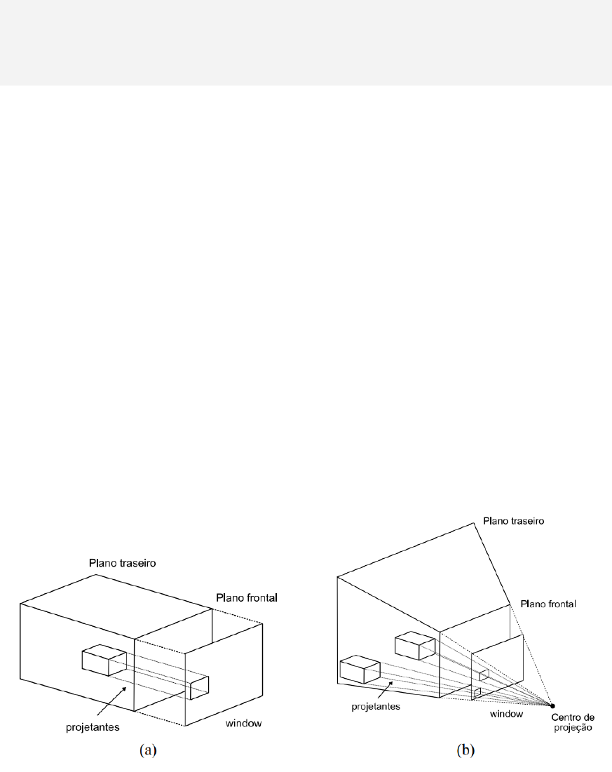 Universidade Paulista (UNIP) Instituto de Ciências Exatas e Tecnológicas (ICET) Disciplina: Computação Gráfica Projeções Quando se está trabalhando com a representação de objetos no espaço tridimensional existe uma etapa obrigatória: mapear suas representações 3D para imagens 2D que serão exibidas em um dispositivo como um monitor. Esta operação de obter representações bidimensionais de objetos tridimensionais é chamada de projeção. Como a maioria dos objetos é representada por uma coleção de vértices, sua projeção é definida por raios de projeção (segmentos de retas) chamados de projetantes, que passam através de cada vértice do objeto e interseccionam um plano de projeção. Esta classe de projeções é chamada de projeções geométricas planares. As projeções usualmente são divididas em dois tipos principais: Projeção Paralela Ortográfica, na qual as projetantes são paralelas entre si, passam pelos vértices dos objetos e interseccionam o plano com um ângulo de 90o; Projeção Perspectiva, quando as projetantes emanam de um único ponto que está a uma distância finita do plano de projeção e passam pelos vértices. Figura 1. Projeção de paralelepípedos usando a projeção paralela ortográfica (a) e a projeção perspectiva (b). Na projeção paralela ortográfica (Figura a) não há alteração nas medidas do objeto. Sua construção é bastante simples, pois, basicamente, consiste em omitir um dos componentes de cada vértice. Entretanto, a projeção perspectiva é mais utilizada, uma vez que representa melhor o que acontece na realidade. Por exemplo, se dois objetos possuem o mesmo tamanho e estão posicionados a diferentes distâncias do plano de projeção, o objeto que está mais longe vai parecer menor do que o objeto que está próximo, conforme ilustra a Figura b. Na visualização 3D também é preciso definir um volume de visualização, ou seja, a região exata do universo 3D que se deseja visualizar. O tamanho e a forma do volume de visualização dependem do tipo de projeção. Para a projeção paralela ortográfica, os quatro lados do volume de visualização e os planos frontal e traseiro na direção do eixo z, formam um paralelepípedo. Para a projeção perspectiva o volume de visualização é um tronco de pirâmide, limitado pelos planos frontal e traseiro, cujo topo é o centro de projeção, como demonstra a Figura b. Os planos frontal e traseiro do volume de visualização são paralelos ao plano de projeção, formando um volume de visualização limitado por seis planos e permitindo excluir partes da cena de acordo com a profundidade. Mapeamento para a Tela Mesmo após a etapa de projeção, as imagens já 2D no plano de projeção ainda não estão em coordenadas do Sistema de Referência da Tela (SRT) adotado no monitor do computador. Por exemplo, no SRT a origem fica no canto superior esquerdo do monitor e a resolução pode variar, enquanto que o Sistema de Referência de Projeção (SRP), que consiste no plano de projeção, é geralmente definido como [−1, 1]. Portanto, torna-se necessário realizar o mapeamento entre estes sistemas de referência, que consiste, basicamente, em uma regra de proporção. Além disso, é necessário definir em qual parte da tela se deseja exibir o que foi selecionado e projetado. A esta região dá-se o nome de janela de exibição ou viewport. Uma viewport é delimitada pelas coordenadas de seus cantos, os quais sempre são dados em valores que dizem respeito ao SRT. A Figura 2 ilustra o funcionamento do mapeamento. Figura 2. Mapeamento do SRP para diferentes viewports Rasterização Após a etapa de mapeamento para a tela, é preciso definir exatamente quais são os pixels que irão compor uma linha e como preencher os diferentes polígonos com uma determinada cor. Estes procedimentos são conhecidos como rasterização. Atualmente os algoritmos para desenhos de linhas, tal como o de Bresenham, e para preenchimento de polígonos, como o flood-fill, são implementados pelas bibliotecas gráficas, bastando apenas chamar as funções definidas para desenhar linhas e polígonos. Computer-Generated Imagery (CGI) Computer-Generated Imagery (CGI) ou “imagens geradas pelo computador” é qualquer imagem dentro de um filme que não foi gravada pela câmera, mas desenhada e posicionada na cena pelo computador. Há incontáveis filmes e jogos, onde o personagem é criado por um rascunho no programa e passa por diversas etapas até o produto final. Special Effects (SFX) Special Effects são os conhecidos efeitos especiais, porém, diferente do CGI, os efeitos especiais não são feitos pelo computador, mas contam como qualquer efeito utilizado durante a gravação. Isso inclui maquiagem, luz, explosões de verdade, canhões de ar, entre outros efeitos práticos, o que pode soar um tanto ultrapassado, mas os resultados podem ser surpreendentes. Um bom exemplo é uma das mais famosas cenas do filme Inception, também conhecido como A Origem no Brasil, onde os dois personagens estão conversando em uma cafeteria e, quando um deles percebeu que estava em um sonho, os elementos na cena começam a explodir, e isso não foi feito através da computação gráfica, mais sim através de canhões de ar estrategicamente posicionados e gravados em slow motion![1: Slow Motion é o nome em inglês dado para o efeito de câmera lenta, muito usado no cinema para criar tensão ou ampliar momentos de clímax. Além disso, também é usado como linguagem e ferramenta cinematográfica pelas super câmeras, capazes de gravar imagens que nossos olhos não conseguem captar. O efeito virou febre na internet por causa da popularização das câmeras digitais não tão caras e que conseguem bons resultados de vídeos lentos, por causa dos frames por segundos que conseguem alcançar. Outra razão para disseminação do slow motion é a oferta dos editores de vídeo (muitos deles grátis) que permitem co