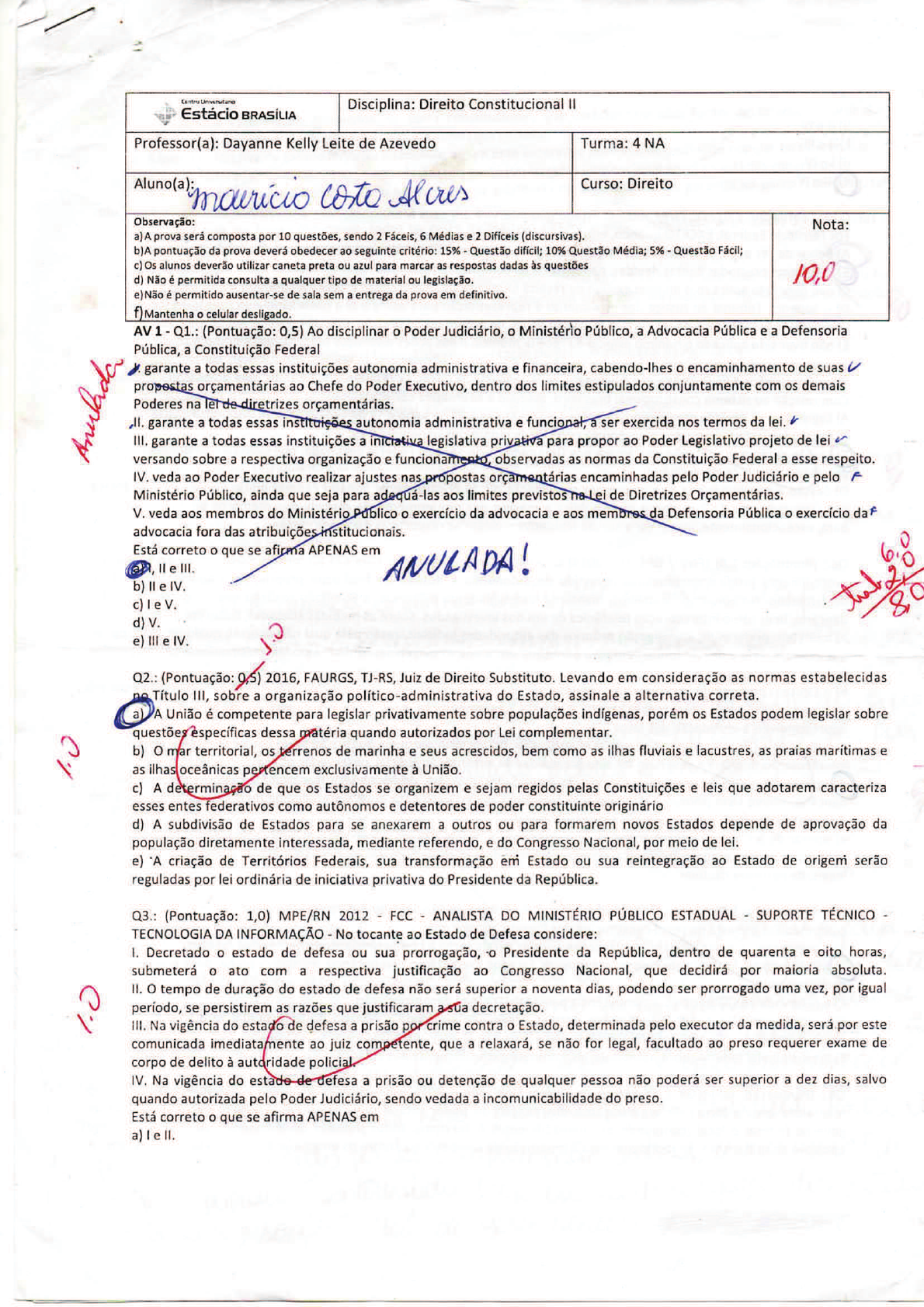 PROVA DIREITO CONSTITUCIONAL II AV1