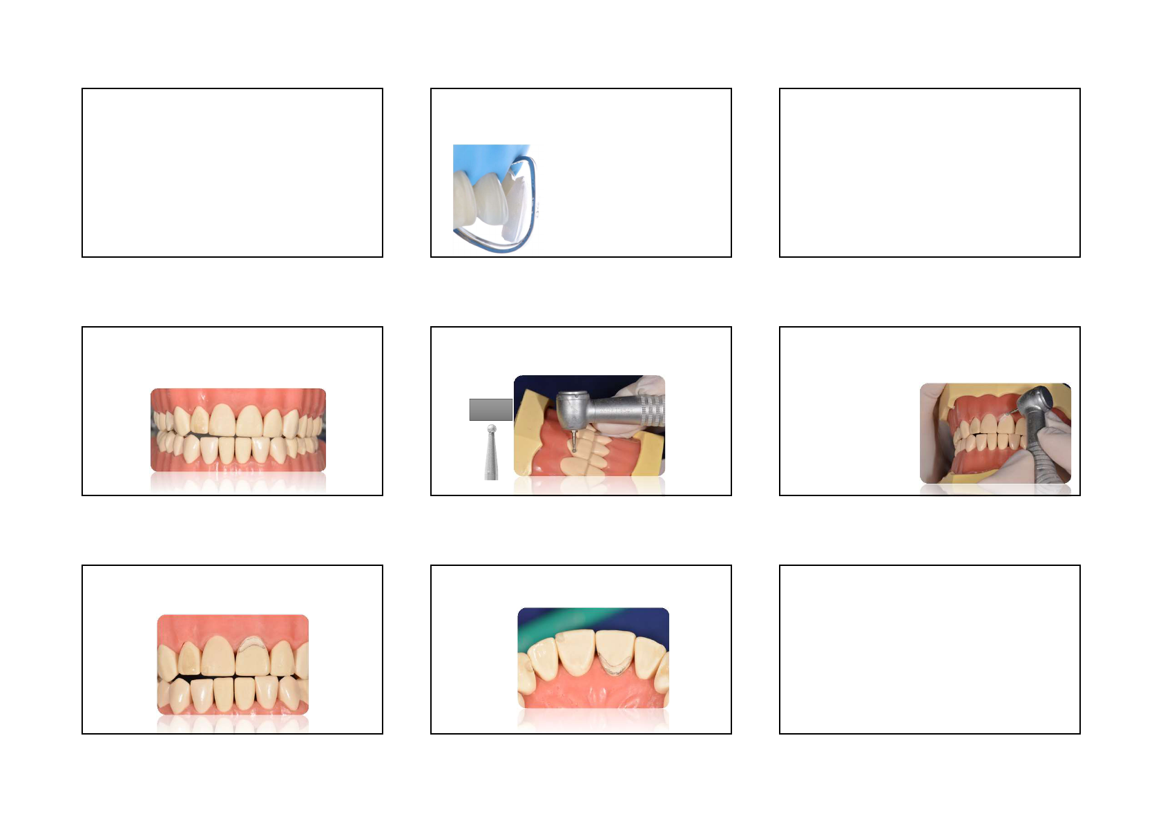 03/08/2017 1 Preparo para coroa metalocerâmica (técnica da silhueta) Dentes anteriores 1. Sulco marginal cervical 2. Sulcos de orientação nas faces vestibular, incisal e linguocervical 3. União dos sulcos de orientação 4. Desgastes proximais 5. Desgaste lingual 6. Preparo subgengival 7. Acabamento Dentes anteriores • Sulco marginal cervical • Estabelece o término cervical • Broca esférica 1.4mm, 1014 • Sulco realizado nas faces vestibular e lingual até o ponto de contato com o dente vizinho, na margem gengival • Profundidade: 0,7mm (metade da ponta ativa da broca) • Inserir em 45⁰ PROCEDIMENTOS PARA PREPARO DE COROA TOTAL METALOCERÂMICA Sulco marginal cervical Broca 1014 Ø 0,14 Sulco marginal cervical • Profundidade: 0,7mm (metade da ponta ativa da broca) • Inserir em 45⁰ Sulco marginal cervical Preparo cervical Dentes anteriores • Sulcos de orientação nas faces vestibular, incisal e linguocervical • Espaço necessário para material: • 1,3mm na vestibular e proximais • 2mm na incisal • Os sulcos devem ser confeccionados em uma metade do dente, assim, controlamos a quantidade de desgaste • Broca diamantada com extremidade ogival (3216 – dentes de tamanho satisfatório ou 2215 – dentes coroa curta) • Três sulcos na vestibular, com o diâmetro da broca (1,2mm), um no centro, um na mesial e outro na distal • Seguir o plano inclinado da face: terço mediocervical e terço medioincisal 03/08/2017 2 Sulcos de orientação vestibular Broca 3216 Ø 0,12 Sulcos de orientação vestibular Sulcos de orientação vestibular Sulcos de orientação - Incisal Broca 3216 Ø 0,12 Dentes anteriores • Sulcos incisais • Mesma broca, inclinada a 45º em relação ao longo eixo do dente, dirigida para a face lingual nos dentes superiores e para vestibular nos ântero-inferiores • Profundidade: 2mm (1broca e meia) Sulcos de orientação - Incisal Desgastes proximais • Proteger o dente vizinho com matriz de aço • Broca troncocônica fina 3203 • Término: nível gengival • Paredes proximais paralelas entre si • Desgastar até ter pelo menos 1mm de distância entre o término cervical do dente preparado e o dente vizinho – acomodação da papila • Se dois pilares unidos: espaço de 1,5 a 2,0 mm – espaço para papila e higienização Desgastes proximais Broca 3203 Ø 0,12 Desgastes proximais 03/08/2017 3 União dos sulcos de orientação • União dos sulcos de orientação • Broca 3216 União sulcos vestibulares Broca 3216 Ø 0,12 União sulcos vestibulares Desgaste Incisal Broca 3216 Ø 0,12 Desgaste lingual/palatino • Desgastar o terço médio-incisal, no mínimo 0,6mm (apenas metal) e 1,3mm (metal e porcelana) • Broca em forma de pêra 3118 • Seguir a anatomia • Desgaste do terço cervical • Broca 3215 ou 2214 3118 3215 2214 Desgaste lingual Broca 3118 Ø 0,23 Desgaste cervical palatino Broca 3215 Ø 0,12 Desgastes linguais Preparo subgengival • Apenas a metade da ponta ativa da broca, sendo a metade em contato com o dente e metade com o epitélio sulcular • Profundidade: 0,5 – 1mm, apenas para esconder a cinta metálica 03/08/2017 4 Preparo subgengival Broca 3216 Ø 0,12 Preparo subgengival- tipos de término ufpel.edu.br3215 3216 Brocas cilíndricas de topo ogival Preparo subgengival Término chanfrado – Broca 3216 Término lingual PREPARO FINALIZADO PREPARO FINALIZADO PREPARO FINALIZADO