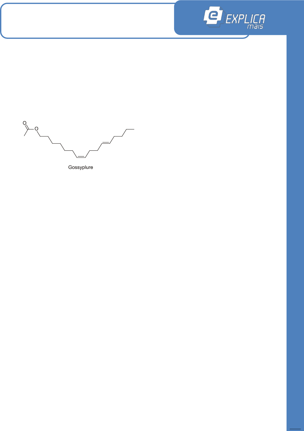 LISTA DE EXERCÍCIOS – QUÍMICA ASSUNTO: Isomeria Geométrica PROFESSOR: Rodrigo 01 1. (Unesp 1992) Considere o composto 3,4-dimetil-3-hexeno. a) Que tipo de isomeria ocorre nesse composto? b) Escreva as fórmulas estruturais dos isômeros do item anterior, identifique-os. 2. (Ufrgs 2010) A lagarta-rosada (Pectinophora gossypiella) é considerada uma das pragas mais importantes do algodoeiro. Armadilhas de feromônio sexual à base de gossyplure permitem o monitoramento da infestação e a consequente redução das aplicações de inseticidas. Observe a estrutura da molécula de gossyplure. Considere as seguintes afirmações a respeito dessa molécula. I. Ela apresenta 18 átomos de carbono. II. Ela apresenta duas ligações duplas C=C com configuração geométrica cis. III. Trata-se de um éster cujo grupamento ligado ao oxigênio é uma cadeia alifática insaturada. Quais estão corretas? a) Apenas I. b) Apenas II. c) Apenas III. d) Apenas I e II. e) Apenas I e III. 3. (Ufla 2010) Apresentam‐se a seguir quatro compostos. I ‐ Penteno – 2 II ‐ Hexeno – 1 III ‐ 1,2 – dimetilciclobutano IV ‐ Cicloexano A possibilidade de isomeria cis‐trans existe a) somente no composto III. b) somente nos compostos II e IV. c) somente no composto IV. d) somente nos compostos I e III. 4. (Ufrn 2012) As gorduras de origem animal são constituídas principalmente por gorduras saturadas, colesterol e gorduras trans. Nos últimos anos, o termo “gordura trans” ganhou uma posição de destaque no dia a dia em função da divulgação de possíveis malefícios à saúde decorrentes de seu consumo. Esse tipo de gordura, que se encontra em alimentos como leite integral, queijos gordos, carne de boi e manteiga, pode aumentar os níveis do colesterol prejudicial ao organismo humano. LISTA DE EXERCÍCIOS – QUÍMICA ASSUNTO: Isomeria Geométrica PROFESSOR: Rodrigo 02 Nesse tipo de gordura, a fórmula do composto ao qual a denominação trans faz referência é a) b) c) d) 5. (Uerj 2012) Em uma das etapas do ciclo de Krebs, ocorre uma reação química na qual o íon succinato é consumido. Observe a fórmula estrutural desse íon: Na reação de consumo, o succinato perde dois átomos de hidrogênio, formando o íon fumarato. Sabendo que o íon fumarato é um isômero geométrico trans, sua fórmula estrutural corresponde a: a) b) c) d) LISTA DE EXERCÍCIOS – QUÍMICA ASSUNTO: Isomeria Geométrica PROFESSOR: Rodrigo 03 Gabarito: Resposta da questão 1: a) Isomeria espacial geométrica. b) Observe a figura a seguir: Resposta da questão 2: [E] Análise das afirmações: I. Correta. Ela apresenta 18 átomos de carbono. II. Incorreta. Ela apresenta uma ligação dupla C=C com configuração geométrica cis: III. Correta. Trata-se de um éster cujo grupamento ligado ao oxigênio é uma cadeia alifática instaurada. Resposta da questão 3: [D] A possibilidade de isomeria cis-trans existe no penteno-2 e 1,2–dimetilciclobutano: LISTA DE EXERCÍCIOS – QUÍMICA ASSUNTO: Isomeria Geométrica PROFESSOR: Rodrigo 04 Resposta da questão 4: [C] A presença de uma dupla ligação num átomo de carbono faz com que ele fique com duas valências livres, formando um ângulo de 120° (o carbono sofre uma hibridização do tipo sp2). A ligação pi ( ),π que é responsável pela dupla ligação, impede a rotação dos átomos de carbono em volta de um eixo de referência. Quando os ligantes de maior massa estiverem em semi-espaços opostos, teremos o isômero geométrico na forma TRANS (que significa do lado de lá, ou seja, opostos). A fórmula do composto ao qual a denominação trans faz referência é: Resposta da questão 5: [D] Teremos: LISTA DE EXERCÍCIOS – QUÍMICA ASSUNTO: Isomeria Geométrica PROFESSOR: Rodrigo 05