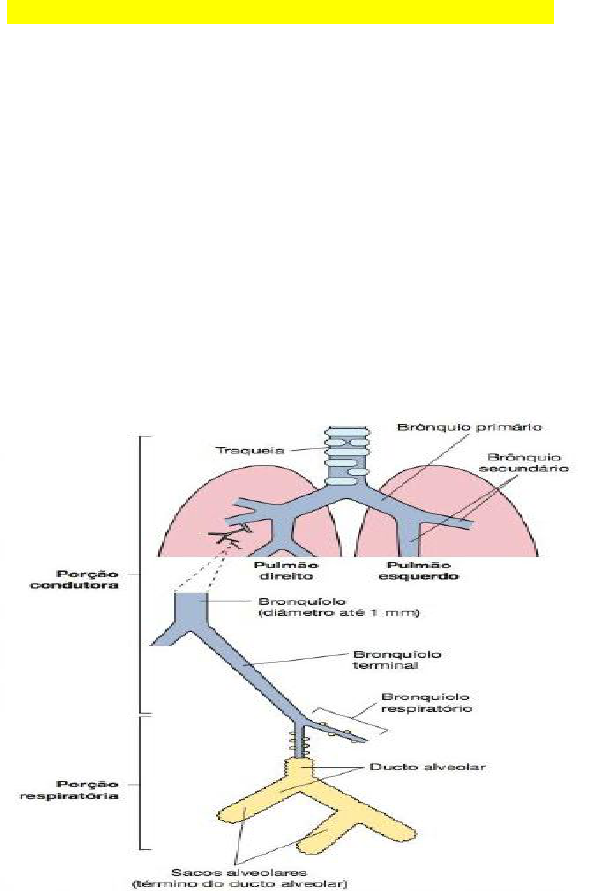 SEMANA 5- RESPIRATÓRIO- VIAS ÁEREAS SUPERIORES Introdução: o aparelho respiratório é constituído pelos pulmões e um sistema de tubos que comunicam o parênquima pulmonar com o meio exterior. É comum distinguir dois conceitos: Porção condutora: compreende as fossas nasais, nasofaringe, laringe, traqueia, brônquios e bronquíolos. Essa promove a entrada e saída de ar, além de limpar, umedecer e aquecer o ar inspirado, a fim de proteger o revestimento dos alvéolos. A fim de promover uma passagem contínua, a parede dessa porção é constituída de uma combinação de cartilagem, tecido conjuntivo e tecido muscular liso, o que proporciona um suporte estrutural, flexibilidade e extensibilidade. Porção respiratória: na qual ocorrem as trocas gasosas e é constituída pelos bronquíolos, ductos alveolares e alvéolos (são estruturas de paredes muito delgadas, as quais facilitam a troca gasosa e é constituinte da maior parte do parênquima pulmonar). Epitélio respiratório: a maior parte da porção condutora é revestida por epitélio ciliado pseudoestratificado colunar com muitas células caliciformes (produtoras de muco), o que chama de epitélio respiratório. Esse consiste em cinco tipos celulares: E o mais abundante é a célula colunar ciliada. Células caliciformes: são células secretoras de muco. A parte apical dessa célula possui numerosas gotículas de muco composto de glicoproteínas. Células em escova: apresentam numerosas microvilosidades na superfície apical e na base há terminações nervosas aferentes e, portanto, elas são consideradas receptores sensoriais. Células basais: são pequenas e arredondadas e também estão apoiadas na lamina basal, mas que não se estendem até a superfície livre do epitélio. Essas são células tronco que se multiplicam continuamente, por mitose, e originam os demais tipos celulares do epitélio respiratório. Célula granular: parece com a célula basal, mas contem inúmeros grânulos, os quais apresentam a parte central mais densa. OBS: Desde as cavidades nasais até a laringe existem porções de epitélio estratificado pavimentoso, em vez de respiratório. Esse primeiro é encontrado nas regiões diretamente expostas a fluxo de ar, a fim de promover uma proteção melhor ao atrito. Nos tabagistas há uma grande quantidade de células caliciformes e redução no numero de células ciliadas, além de ocorrer uma mudança de pseudoestratificado para pavimentoso (estratificado), a fim de proteger o organismo= metaplasia. Fossas nasais: essas são revestidas por mucosa e distinguem-se em três regiões: Vestíbulo: é a porção mais anterior e dilatada das fossas nasais, sua mucosa é uma continuação da pele do nariz, porém o epitélio estratificado pavimentoso da pele logo perde sua queratina e o tecido conjuntivo da derme dá origem a lamina própria da mucosa. Há presença de pelos curtos (vibrissas) e secreção de glândulas sebáceas e sudoríparas, as quais representam uma barreira à penetração de partículas grosseiras. A área respiratória: compreende a maior parte das fossas nasais. A mucosa dessa região é recoberta por epitélio pseudoestratificado colunar ciliado e muitas células caliciformes, as quais juntamente com glândulas mistas (serosas e mucosas) produzem muco prendendo os microrganismos e com o batimento ciliar são levados até a faringe. A parede lateral de cada cavidade nasal apresenta-se irregular, devido à presença de expansões ósseas chamadas conchas ou cornetos. Ao passar pelas fossas, o ar é aquecido, filtrado e umedecido, atribuindo-se ao plexo venoso a função de aquecimento. Área olfatória: é uma região na parte superior das fossas nasais e é responsável pela sensibilidade olfatória. Essa área é revestida pelo epitélio olfatório (neuroepitelio colunar pseudoestratificado), que contém os quimiorreceptores da olfação. O epitélio olfatório é composto de três tipos celulares: célula de sustentação- células prismáticas, largas no ápice e estreitas na base e que apresentam na superfície microvilosidades; células basais- são pequenas, arredondas e estão entre as células olfatórias e de sustentação; células olfatórias- são neurônios bipolares e se distinguem das células de sustentação, pois seus núcleos se localizam em uma posição mais inferior, os dendritos possuem dilatações elevadas, de onde partem cílios e são quimiorreceptores excitáveis pelas substancias odoríferas. (Células de bowman- glândulas ramificadas tubuloacinosas alveolares, as quais levam a secreção para a superfície, criando uma corrente liquida continua, que limpa os cílios das células olfatórias, facilitando o acesso de novas substancias odoríferas). Seios paranasais: são cavidades nos ossos frontais, maxilar, etmoide e esfenoide revestido por epitélio do tipo respiratório, que apresenta baixas e poucas células caliciformes. Esses se comunicam com as fossas nasais por meio de pequenos orifícios. Dessa maneira, o muco produzido nessas cavidades é drenado para as fossas nasais pela atividade das células epiteliais ciliadas. Nasofaringe: é a primeira parte da faringe, continuando caudalmente com a orofaringe (epitélio estratificado pavimentoso). É separada incompletamente da orofaringe pelo palato mole e é revestido por epitélio tipo respiratório. Laringe: une a faringe à traqueia. Suas paredes contem peças cartilaginosas irregulares, unidas por tecido conjuntivo fibroelastico. As peças cartilaginosas maiores (tireoide, cricoide e maior parte das aritenoides) são do tipo hialino, as demais é elástico. A epiglote é um prolongamento que se estende da laringe em direção à faringe. A mucosa forma dois pares de pregas: o primeiro par e superior- as falsas cordas vocais ou pregas vestibulares, as quais possuem uma lamina própria frouxa e varias glândulas; o segundo par e inferior- as cordas vocais verdadeiras, as quais apresenta um teci