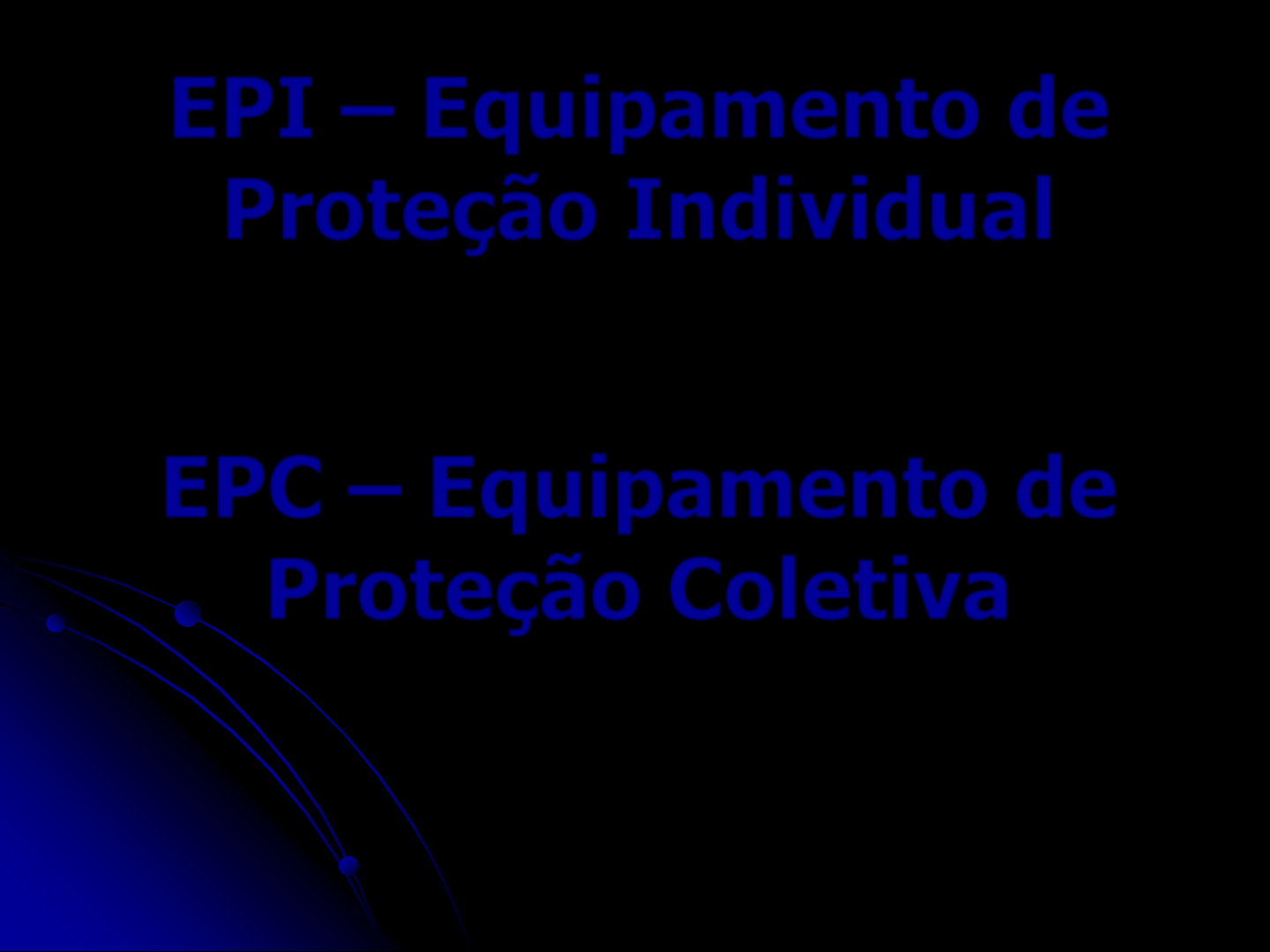 Clique para editar o estilo do título mestre Clique para editar o estilo do subtítulo mestre * * * EPI – Equipamento de Proteção Individual EPC – Equipamento de Proteção Coletiva & * * * O que são EPI’s Equipamentos de Proteção Individual é todo dispositivo ou produto , de uso individual utilizado pelo trabalhador, destinado a proteção de riscos suscetíveis de ameaçar a segurança e a saúde no trabalho. * * * Quem se ama, usa EPI! Clique para editar o estilo do título mestre Clique para editar o estilo do subtítulo mestre * * * Tipos de EPI’s * * * Proteção da cabeça Capacete : Proteção do crânio contra impactos,choques elétricos e no combate a incêndios. * * * Capuz/Touca : Proteção do crânio contra riscos de origem térmica , respingos de produtos químicos e contato com partes móveis de máquinas, hospitais e centro cirúrgico. Proteção da cabeça * * * Proteção dos olhos e face Óculos: Proteção contra partículas , luz intensa , radiação , respingos de produtos químicos; Protetor facial: Proteção do rosto. * * * Proteção Auditiva Protetor auricular: Para nível de ruído é prejudicial (acima de 85 dB) e em situações de longa exposição ao ruído. Abafador: É altamente eficaz para reduzir o ruído excessivo e seus efeitos em ambientes abertos ou fechados. * * * Proteção da pele Proteção da pele contra a ação de produtos químicos em geral; Grupo 1 - creme água resistente Grupo 2 - creme óleo resistente Grupo 3 - cremes especiais * * * Proteção dos membros superiores Luvas de proteção Mangas Mangotes Jalecos Proteção de mãos , dedos e braços de riscos mecânicos , térmicos,químicos, hospitalares e riscos biológicos. * * * Proteção Respiratória Proteção do sistema respiratório contra gases , vapores , névoas , poeiras, infecções e riscos biológicos. Máscaras de proteção respiratória * * * Proteção dos membros inferiores Calçados de segurança Botas e botinas Proteção de pés , dedos dos pés e pernas contra riscos de origem térmica , umidade , produtos químicos , quedas e para utilização em centros cirúrgicos. * * * EPI São equipamentos, de uso estritamente pessoal, utilizados para proteger a integridade física do trabalhador nos casos de exposição direta a riscos não Controlados. Lembre-se: Os EPI’s não reduzem o “risco e/ou perigo”, apenas auxilia o indivíduo ao meio ambiente e ao grau de exposição. * * * EPI Equipamento de Proteção Individual Quando usar? Durante a realização de atividades rotineiras ou emergenciais, de acordo com o grau de exposição. Como escolher? De acordo com as necessidades, riscos intrínsecos das atividades e parte do corpo a ser protegida. * * * OBSERVAÇÃO: Em caso de dúvidas ou desconhecimento do grau de exposição e/ou contaminação a que o trabalhador estará exposto, deverão sempre ser utilizados os EPIs de proteção máxima. * * * O que são EPC’s São equipamentos instalados no local de trabalho, que servem para proteger mais de uma pessoa ao mesmo tempo e são utilizados para prevenir e/ou minimizar acidentes. * * * Tipos de EPC’s Extintores de Incêndio: Lembre-se: Eles devem estar instalados em lugares de fácil acesso e visibilidade Caso ocorra algum acidente. * * * Outros tipos de EPC’s. Biombos Exaustores Ventiladores Paredes acústicas e térmicas Iluminação de emergência Alarmes Pias Etc. * * * Exigência legal para empresa e empregado A Lei nº. 6514, de 22/12/1977, que alterou o capitulo o capítulo V Título II, da CLT – Consolidação das Leis do Trabalho, relativo a segurança do trabalho, em seus artigos 166 e 167 informa que: * * * Art. 166 - A empresa é obrigada a fornecer aos empregados, gratuitamente, equipamento de proteção individual adequado ao risco e em perfeito estado de conservação e funcionamento, sempre que as medidas de ordem geral não ofereçam completa proteção contra os riscos de acidentes e danos à saúde dos empregados. * * * Artigo 167 O equipamento de proteção só poderá ser posto à venda ou utilizado com a indicação do Certificado de Aprovação do Ministério do Trabalho. * * * Legislação A empresa é obrigada a fornecer aos empregados , de forma gratuita , EPI’s e EPC’s adequado ao risco , em perfeito estado de conservação e funcionamento , nas seguintes circunstâncias: a) Sempre que medidas de ordem geral não ofereçam completa proteção contra os riscos de acidentes do trabalho ou de doenças profissionais e do trabalho; b) Enquanto as medidas de proteção coletiva estiverem sendo implantadas. c) Para atender situações de emergência. * * * Obrigações do empregador Cabe ao empregador: adquirir o adequado ao risco da atividade; exigir seu uso fornecer somente o EPI aprovado pelo órgão nacional competente; orientar e treinar o trabalhador quanto a seu uso , guarda e conservação; substituir imediatamente quando extraviado ou danificado; responsabilizar-se por sua manutenção e higienização. Comunicar ao M T E qualquer irregularidade observada. * * * Obrigações do empregado Cabe ao empregado: Usar , utilizando-o apenas para a finalidade a que se destina; responsabilizar-se por sua guarda e conservação; comunicar qualquer alteração que o torne impróprio para uso; cumprir as determinações do empregador sobre seu uso adequado. * * * O trabalhador recusa-se a usar os EPI somente quando não foi conscientizado do risco e da importância de proteger sua saúde. O aplicador profissional exige os EPI’s e EPC’s para trabalhar. Na década de 80, quase ninguém usava cinto de segurança nos automóveis. Hoje, a maioria dos motoristas usam e reconhecem a importância. * * * A falta de EPI’s e EPC’s, ou o uso inadequado podem acarretar vários problemas e acidentes de trabalho. * * * Os próximos slides veremos alguns acidentes de trabalho. As imagens são fortes, então para as pessoas sensíveis não recomendamos. * * * * * * * * * * * * *