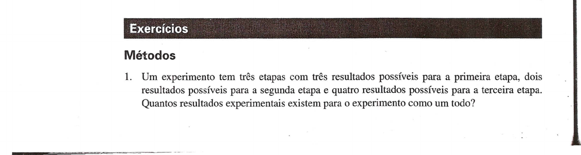 1. Urn experirnento tern tres etapas com tres resultados posslveis para a prirneira etapa, dois