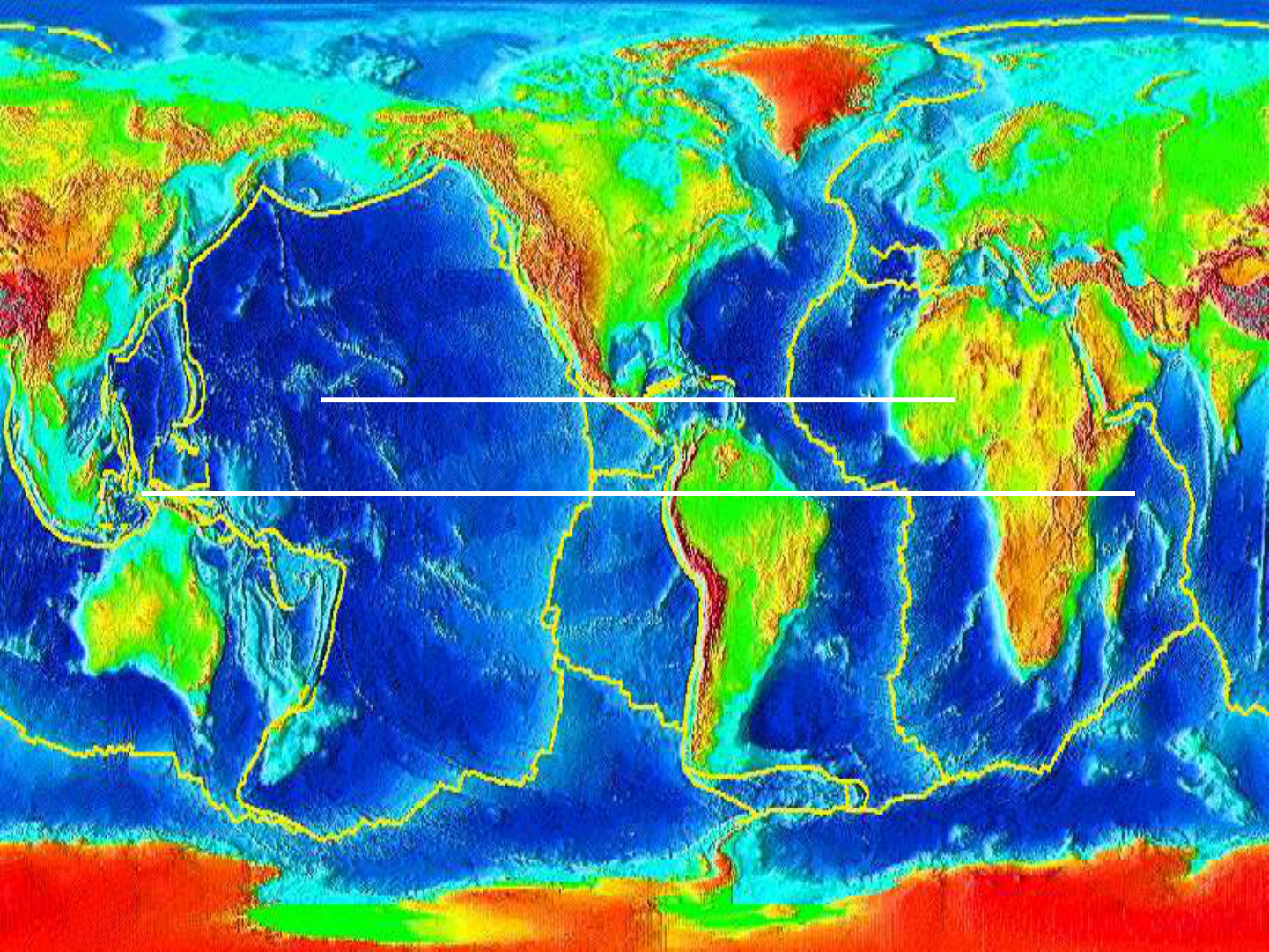 TECTÔNICA GLOBAL (Tekton = construtor em grego) Professos Estefan Monteiro da Fonseca DSc. • Geotectônica - Estuda a movimentação das placas litosféricas e a arquitetura da crosta terrestre; Tectônica global Tectônica global • Evolução da Geologia comparada a criação da teoria da RELATIVIDADE PARA A FÍSICA, ou a do DNA PARA A BIOLOGIA. • A unificação da teoria aconteceu a menos de 40 anos, mas sua filosofia já existe desde o século XX. • Placa na geologia = “laje” grande, rígida formada de rocha sólida. • Tectônica do grego = construir • Tectônica de Placas = superfície da Terra construída por placas. • A teoria é nova (década de 60). Revolucionou nosso conhecimento sobre a dinâmica do nosso planeta. Tectônica global 5 Tempo geológico •É o tempo que mede a idade da Terra. O tempo geológico é dividido em eras, que são subdivididas em períodos. Cada etapa desse tempo é marcado por acontecimentos que o caracterizam. 6 Escala Geológica - pré-cambriana – A primeira Era é a chamada Pré-cambriana, que se divide em três períodos: – Azóica: por volta de 4,5 bilhões de anos atrás, esse período é marcado pela não existência de vida, esse período durou bilhões de anos. – Arqueozóica e Proterozóica: nesse período passaram a surgir os seres unicelulares e invertebrados (algas e bactérias). Formação das rochas magmáticas. 7 Escala Geológica - Paleozóica – A Era Paleozóica está dividida nos períodos: Permiano, Carbonífero, Devoniano, Siluriano, Ordoviciano e Cambriano. – Nestes períodos houve a existência de rochas sedimentares e metamórficas. Surgiu os peixes e os primeiros répteis. 8 Escala Geológica - Mesozóica – A próxima Era foi a Mesozóica, dividida pelos períodos Cretáceo, Jurássico e Triássico. Surgiram mamíferos e aves; répteis gigantescos (dinossauros); grandes florestas; e rochas sedimentares e vulcânicas. 9 Escala Geológica - Cenozóica – Já na Era Cenozóica existem dois períodos, Quaternário e Terciário. Este último houve o desenvolvimento dos mamíferos. Os répteis gigantes foram extintos, formou-se as bacias sedimentares. 10 Escala Geológica - Cenozóica – No período do Quaternário houve a glaciação no hemisfério norte; delineamento dos atuais continentes; formação das bacias sedimentares recentes; aparecimento do homem. TERRA • Planeta Dinâmico em constante deformação de suas estruturas; • Formada de uma dúzia de placas cuja força motriz se localiza no manto; Tectônica global • Placas são formadas nas dorsais mesooceânicas e ao se chocarem, provocam o mergulho da placa mais densa, retornando ao núcleo; Tectônica global DERIVA CONTINENTAL • 1960 - Francis Bacon apontou o perfeito encaixe da América do Sul com a África; Tectônica global DERIVA CONTINENTAL • Ao final do século XIX, o geólogo austríaco Eduard Suess postulou que o conjunto dos continentes meridionais atuais formaram um único continente gigante chamado GONDWANA. Tectônica global • Teoria da Tectônica de Placas: Início do Século XX por Alfred Wegener; Tectônica global DERIVA CONTINENTAL (cont.) Pangea (do grego = Todas as terras) (220 milhões de anos): Supercontinente formado dos demais ; DERIVA CONTINENTAL (cont.) • Pangea gerou Laurásia e o Gondwana; DERIVA CONTINENTAL (cont.) Wegener em A ORIGEM DOS CONTINENTES E OCEANOS, estudou através de evidências: • Como a direção da Serra do Cabo (África do Sul) quer seria a continuação da Sierra de La Ventana (Argentina); • Planalto na Costa do Marfim da África que teria continuidade no Brasil; • Montes Apalaches = Montanhas do Reino Unido e da Caledônia. Tectônica global DERIVA CONTINENTAL (cont.) • Presença de Fósseis Glossopteris em regiões da África e do Brasil. • A similaridade evolutiva de algumas espécies até o momento determinado como a quebra também suportaram a teoria; Tectônica global DERIVA CONTINENTAL (cont.) • Evidências de Glaciação a 300Ma na região Sudeste do Brasil, Sul da África, Índia, Oeste da Austrália e Antártica; DERIVA CONTINENTAL (cont.) • Alfred Wegener morreu durante uma expedição meteorológica à Groenlândia, em 1930. A idéia de comprovar a teoria da deriva continental ocupou toda a sua vida. • Algumas outras contribuições de Wegener na área diziam respeito à idade do assoalho oceânico. Ele percebeu que os oceanos mais rasos eram mais jovens, ou seja, que a crosta oceânica mais profunda é mais velha. Esta informação foi importante para a evolução da idéia da deriva continental para a teoria da Tectônica de Placas. Tectônica global DERIVA CONTINENTAL (cont.) • A hipótese errônea do quão rápido os continentes migram reduziu sua credibilidade com outros cientistas. DERIVA CONTINENTAL (cont.) • OBS. A ausência de conhecimento do caráter plástico da astenosfera tirou a credibilidade do livro. • Após cerca de uma década os físicos convenceram que a grande rigidez das placas impossibilitaria seus movimentos. Tectônica global DERIVA CONTINENTAL (cont.) • Em 1928 Arthur Holmes propôs idéias puramente especulativas a respeito de uma possível convecção do assoalho oceânico; Tectônica global DERIVA CONTINENTAL (cont.) • A 2ª Guerra Mundial possibilitou o desenvolvimento de técnicas de levantamento como sonares que detalham o fundo oceânico, quando descobriu-se as fossas que comprovaram a existência de um ambiente geologicamente muito mais ativo; DERIVA CONTINENTAL (cont.) • No final da década de 40 e na década seguinte diversas expedições mapearam o fundo do oceano atlântico, o que permitiu o descobrimento da cadeia mesooceânica , cujo formato evidenciou um sistema tensional. • Além disso um fluxo térmico foi constatado; DERIVA CONTINENTAL (cont.) • Final de 50/Início de 60 – Desenvolvimento das técnicas de datação; • Faixas de rochas com mesma idade em lados opostos da cordilheira mesooceân