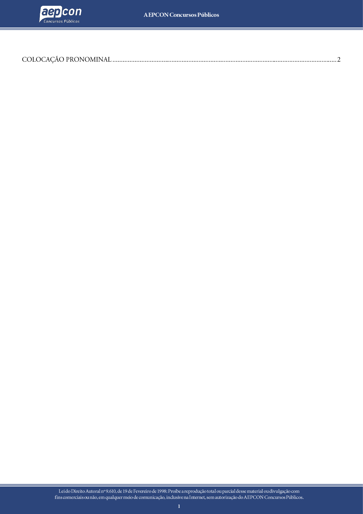 Sumário Nesse estudo, é abordada a correta colocação do pronome pessoal oblíquo átono (ME, TE, SE, NOS, VOS, O(A)S [-LO(A)S – NO(A)S, LHE(S)] em relação ao verbo. Essa colocação se dá fundamentalmente de três maneiras: 1. PRÓCLISE – quando o pronome oblíquo é posicionado antes do verbo. Ex.: O dia ME PARECE promissor. 2. MESÓCLISE – quando o pronome oblíquo é posicionado no interior do verbo. Ex.: O dia TRAR-LHE-Á ótimos resultados. 3. ÊNCLISE – quando o pronome é posicionado logo depois do verbo, preso por hífen, obrigatoriamente. Ex.: É bom MANTER-SE informado de tudo. Obs.: Ainda há um quarto posicionamento, empregado nos texto clássicos, porém, hoje em desuso, chamado APOSSÍNCLISE. Seria uma próclise mais afastada. Ex.: Se ME não ENGANO, hoje é dia do aluno. Obs.: Esse pronome pode também posicionar-se nas locuções verbais. Exemplos: Ele ME DEVIA FALAR a verdade. Ele DEVIA ME FALAR a verdade. Ele DEVIA FALAR-ME a verdade. Ele ME ESTÁ FALANDO a verdade. Ele ESTÁ ME FALANDO a verdade. Ele ESTÁ FALANDO-ME a verdade. É importante notar que, para cada um desses posicionamentos (PRÓCLISE, MESÓCLISE, ÊNCLISE), vai haver momentos de colocação obrigatória e de colocação facultativa. Para isso, inicialmente, lembrar que SUBSTANTIVO e pronome pessoal RETO são neutros quanto à colocação do pronome pessoal oblíquo átono. São, pois, os principais responsáveis por colocações pronominais facultativas. Exemplos: O repórter ME FEZ uma indagação capciosa. O repórter FEZ-ME uma indagação capciosa. Obs.: Não se pode esquecer que, neste estudo da colocação pronominal, os oblíquos LHE e O e suas variações são específicas: aquele só pode estar como complemento indireto e este só pode estar como complemento direto. Exemplos: Não O quero em minha sala. TD Vou obedecer-LHE sempre. TI Anotações: _______________________________________________________________________ _______________________________________________________________________ _______________________________________________________________________ _______________________________________________________________________ _______________________________________________________________________ _______________________________________________________________________ _______________________________________________________________________ Questões 01. (FCC - 2015) A substituição do elemento grifado pelo pronome correspondente, com os necessários ajustes, foi feita corretamente em: (A) quando veio apanhar a crônica = quando veio apanhar-lhe (B) Depois de cumprir meus afazeres = Depois de cumprir-nos (C) Já tive muitas capas e infinitos guarda-chuvas = Já lhes tive (D) pendurei o guarda-chuva = pendurei-no (E) Pedi ao moço de recados = Pedi-lhe 02. (FCC - 2014) A substituição do elemento grifado pelo pronome correspondente foi realizada de modo INCORRETO em: (A) que permitiu à civilização = que lhe permitiu (B) envolveu diferentes fatores = envolveu-os (C) para fazer a dragagem = para fazê-la (D) que desviava a água = que lhe desviava (E) supriam a necessidade = supriam-na 03. (CESPE - 2015) Haveria prejuízo para a correção gramatical do texto caso o pronome “se”, em “Amanda recusou-se” (R.5), fosse deslocado para imediatamente antes da forma verbal “recusou”: Amanda se recusou. 04. (CESGRANRIO - 2015) De acordo com a norma-padrão da língua portuguesa, o pronome destacado está colocado adequadamente em: (A) Quando todas as instituições educacionais se interessarem pela inclusão digital, a sociedade será muito beneficiada em diferentes aspectos do seu desenvolvimento. (B) Atualmente, há uma intensa pressão social para que o indivíduo sempre mantenha- se a par das novas tecnologias lançadas em outras regiões do mundo. (C) Não pouparam-se esforços para que todos os funcionários daquela empresa tivessem acesso às mídias digitais por meio de renovação dos equipamentos. (D) Os pesquisadores das áreas sociais e tecnológicas nunca enganam-se a respeito da grande importância da presença da internet em nossa sociedade. (E) Se o preço dos equipamentos eletrônicos ficar muito elevado, poderá-se procurar pesquisar mais atentamente. Gabarito 01. E 02. D 03. FALSO 04. A