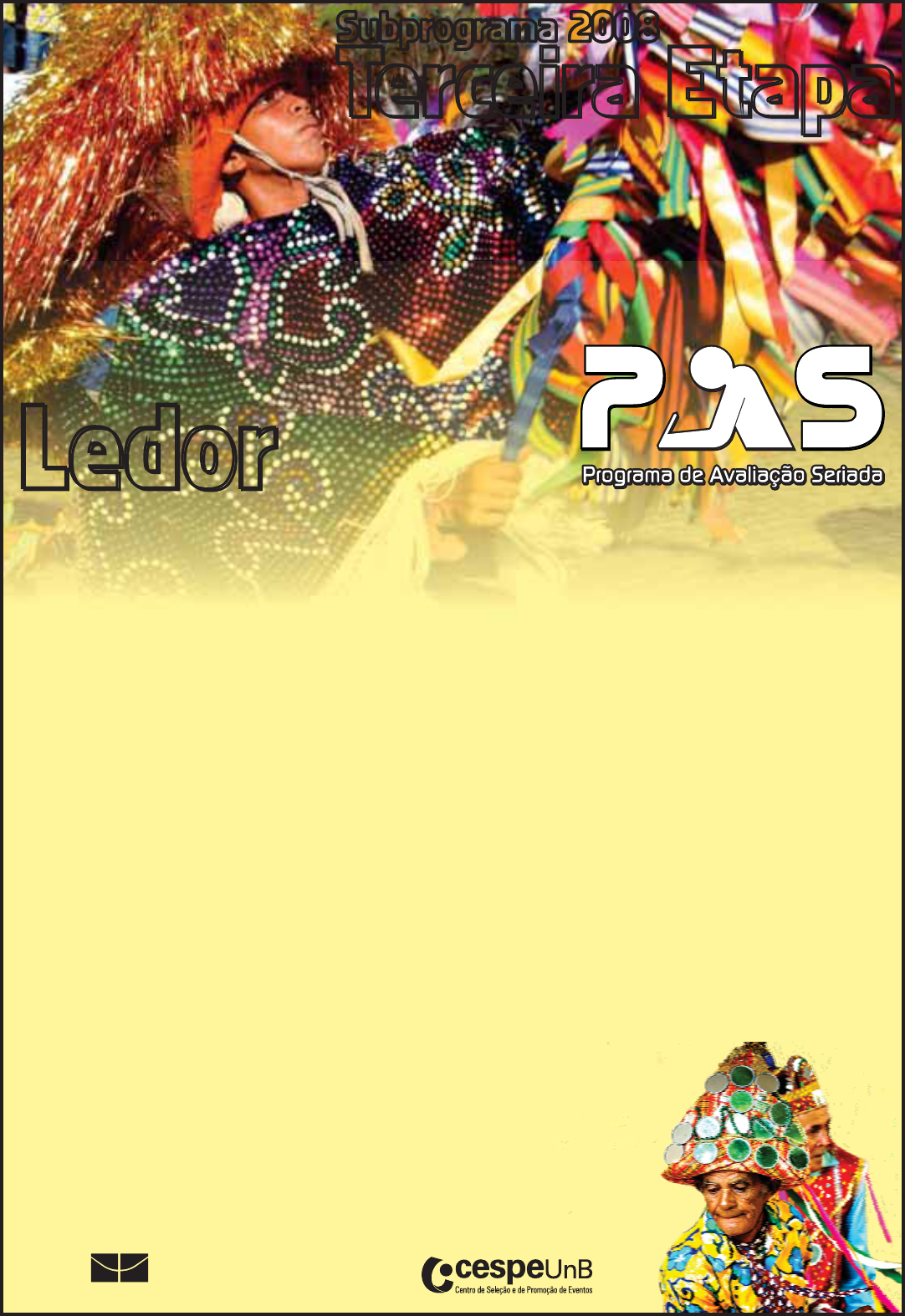 Universidade de Brasília 1 Quando autorizado pelo chefe de sala, no momento da identificação, escreva, no espaço apropriado de seu Caderno de Respostas, com a sua caligrafia usual, a seguinte frase: Somos aquilo que fazemos com o que fazem de nós. 2 LínguaEstrangeira 1 10 Redação em Língua Portuguesa Caderno de Respostas 3 Caderno de Respostas Língua Estrangeira 4 tipoA tipo B tipo C tipo D Caderno de Respostas tipo D 5 CadernodeRespostas 6 tipoA tipoC 7 8 9 CadernodeRespostas 10 Caderno de Respostas VerifiqueseestecadernocontémaprovadaTerceiraEtapadoSubprograma2008doPAS,comtodasasopçõesde (itensde a )e a prova de , acompanhada de espaço para rascunho, de uso opcional, e se nele consta, ao final, uma Classificação Periódica dos Elementos. Verifique, ainda, se este caderno contém a quantidade de itens indicada no . Caso o caderno esteja incompleto ou tenha qualquer defeito, solicite ao fiscal de sala mais próximo que tome as providências cabíveis, pois não serão aceitas reclamações posterioresnessesentido. No , marque as respostas relativas aos itens da que corresponde à sua opção, pois não serão aceitas reclamações posteriores. Nos itens do , de acordo com o comando agrupador de cada um deles, marque, para cada item: o campo designado com o código C, caso julgue o item CERTO; ou o campo designado com o código E, caso julgue o item ERRADO. Nos itens do , marque, de acordo com o comando: o algarismo das CENTENAS na coluna C; o algarismo das DEZENAS na coluna D; o algarismo das UNIDADES na coluna U. Os algarismos das CENTENAS, das DEZENAS e das UNIDADES devem ser, obrigatoriamente, marcados, mesmo que sejam iguais a zero. Nos itens do , marque a única opção correta de acordo com o respectivo comando. Nos itens do , que são de resposta construída, faça o que se pede em cada um deles usando o espaço destinado para rascunho neste caderno, caso deseje. Escreva as respostas definitivas no . Nos itens do , em caso de erro, risque, com um traço simples, a palavra, a frase ou o símbolo e escreva o respectivo substitutivo. Lembre-se: parênteses não podemser utilizados para essa finalidade. Nãodeixe de registrar suas respostas no , único documento válido para a correção da sua prova. Nos itens do e do , siga a recomendação de nãomarcar ao acaso, pois, para cada item cuja resposta divirja do gabarito oficial definitivo, será atribuídapontuaçãonegativa, conformeconstaemedital. Não utilize qualquermaterial de consulta que não seja fornecido peloCESPE/UnB. Durante a prova, não se comunique comoutros candidatos nemse levante semautorização do chefe de sala. Fique atento à duração da prova, que é de cinco horas, já incluído o tempo destinado à identificação — que será feita no decorrer da prova — e à transcrição das respostas para os locais apropriados do . Atenda às determinações constantes nas presentes instruções ou no , porque a poderá implicar a anulação da sua prova. desobediência a qualquer uma delas AGENDA(DATASPROVÁVEIS) I 8/12/2010 II 9 10/12/2010 III 31/1/2011 IV 7 8/2/2011 V 14/2/2011 VI 18/2/2011 OBSERVAÇÕES —Divulgação dos gabaritos oficiais preliminares da prova, após as 14h, na Internet—noendereço http://www.cespe.unb.br. e — Recebimento de recursos contra os gabaritos oficiais preliminares da prova, que devem ser encaminhados exclusivamente peloSistemaEletrônico de Interposição deRecursos doCESPE/UnB. —Divulgação da relação dos candidatos selecionados em1.ª chamada, após as 17 h. e —Registro, naSecretaria deAdministraçãoAcadêmica (SAA) daUnB, dos candidatos aprovados em1.ª chamada. —Divulgação da relação dos candidatos selecionados em2.ª chamada. —Registro, naSAA, dos candidatos selecionados em2.ª chamada. Informações relativas aoPASpoderão ser obtidas pelo telefone 0(XX) 61 3448 0100. É permitida a reprodução desta prova apenas para fins didáticos, desde que citada a fonte. Subprograma 2008 Terceira EtapaTerceira Etapa LEIA COM ATENÇÃO AS INSTRUÇÕES ABAIXO. LedorLedor UnB/CESPE – PAS 3.ª ETAPA Subprograma 2008 – 3.ª Etapa – 1 – PARTE I - LÍNGUA ESPANHOLA Texto I En la destrucción del aura estética, Adorno veía un1 proceso que forzaba al espectador a convertirse en un consumidor pasivo e irreflexivo, y que por tanto imposibilitaba las experiencias estéticas; el arte de masas que resultaba de la4 nueva reproducción técnica no representaba para él más que una “desestetificación del arte”. Benjamin, por su parte, en el arte de masas tecnificado veía sobre todo la posibilidad de7 nuevas formas de percepción colectiva; ponía todas sus esperanzas en el hecho de que, en la experimentación inmediata del arte por parte del público, las iluminaciones y10 experiencias que hasta el momento sólo se habían dado en el proceso esotérico de goce solitario del arte pudieran producirse en forma profana.13 Axel Honneth. Teoría crítica. Alianza Editorial, p. 468. Texto II Con los diversos métodos de su reproducción técnica1 han crecido en grado tan fuerte las posibilidades de exhibición de la obra de arte, que, por un fenómeno análogo al que se había producido en los comienzos, el desplazamiento4 cuantitativo entre las dos formas de valor características de las obras de arte ha dado lugar a un cambio cualitativo, el que afecta a su naturaleza misma. A saber, en los tiempos7 primitivos, y a causa de la preponderancia absoluta de su valor de culto, la obra de arte fue antes que nada un instrumento de magia que sólo más tarde fue reconocido hasta un cierto punto10 como obra de arte; de manera parecida, hoy la preponderancia absoluta de su valor de exposición le asigna funciones enteramente nuevas, entre las cuales bien podría ocurrir que13 aquella que es para nosotros la más vigente — la función artística — llegue a ser accesoria. Por lo menos es seguro que actualmente la fotografía y además el cine son claros ejemplos16 d
