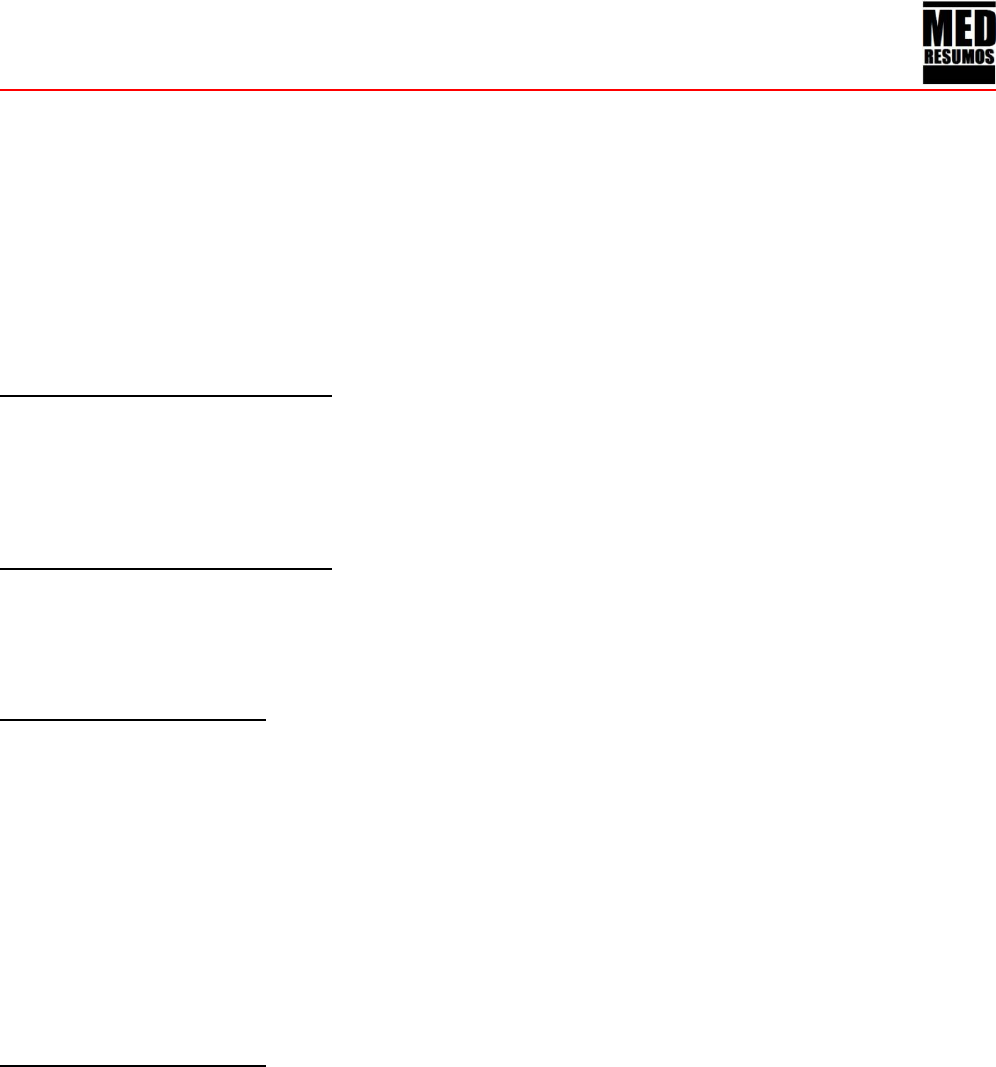 Arlindo Ugulino Netto; Luiz Gustavo Barros; Yuri Leite Eloy – HEMATOLOGIA – MEDICINA P8 – 2011.1 225 MED RESUMOS 2011 NETTO, Arlindo Ugulino. HEMATOLOGIA LEUCEMIA LINFÓIDE CRÔNICA (Professora Angelina Cartaxo) A leucemia linfoctica crnica (LLC) uma doena clonal que, geralmente, envolve linfcitos B e se caracteriza pelo acmulo destes linfcitos maduros no sangue perifrico, medula e tecidos linfides. A LLC parece ser idntica ao Linfoma Linfoctico de Pequenas Clulas (LLPC), um tipo de linfoma no-Hodgkin. A Organizao Mundial de Sade considera a LLC e o LLPC como espectros da mesma doena, no devendo ser separados em entidades diferentes. A LLC uma doena tpica do adulto. No deve ser confundida com a leucemia linfide aguda (LLA), um tipo de leucemia altamente agressivo que mais comum em crianas. A maioria das pessoas diagnosticadas com LLC tem mais de 50 anos e so do sexo masculino. DADOS EPIDEMIOLGICOS Corresponde 20 a 30% de todas as leucemias mais comum no oriente ( rara no mundo ocidental), apresentando incidncia de 2,5% no Japo mais comum em indivduos acima de 50 anos de idade (acomete pessoas com menos de 50 em menos de 20% dos casos) Sexo (♂2:1♀): 3,9 por 100.000 masculino e 2,0 por 100.000 feminino ETIOLOGIA E FATORES DE RISCO Diferentemente das demais formas de leucemia, no foram relatadas associa es entre a LLC e a exposio a irradiao e a substncias citotxicas. Acredita-se que o seu principal fator de risco gentico, pois, quase sempre, acomete mais de um membro da famlia e, em mais da metade dos casos, existem anormalidades cromossmicas associadas. QUADRO CLNICO Muitos pacientes (30%) so assintomticos. O diagnstico muitas vezes feito em decorrncia da investigao de linfocitose de causa indeterminada presente no hemograma. Quando presentes, os sinais e sintomas no so especficos e podem ocorrer: Fadiga Febre vespertina Sudorese noturna Emagrecimento Linfoadenomegalia Esplenomegalia Hepatomegalia Infec es OBS1: Síndrome de Richter uma rara complicao da leucemia linfide crnica (LLC). Na sndrome de Ricthe, a LLC transforma-se em uma forma agressiva onde as clulas B crescem repidamente. Ela acomete cerca de 2% a 8% dos pacientes com LLC. Os sintomas da transformao na Sndrome de Richter inclui febre, perda de peso e massa muscular, e aumento dos linfonodos. O tumor se acelera em um ou mais linfonodos e atinge outros rgos como fgado, pele, osso e trato gastrointestinal. Esta sndrome pode aparecer repentinamente, at em pacientes que no estejam em remisso. Geralmente o prognstico ruim. DADOS LABORATORIAIS Hemograma: nmero de leuccitos aumentados, com grande nmero de linfcitos aparentemente maduros (mais de 70% dos leuccitos totais, o que caracterizaria um padro normalmente visto em crianas com menos de 2 anos). Pode tambm ocorrer a visualizao de restos celulares no sangue perifrico (chamados de "Smudge Cells" ou "manchas de Gumprecth") que nada mais so do que artefatos produzidos por danos aos linfcitos durante a confeco do esfregao de sangue. Os principais achados do hemograma so: Leucocitose as custas de uma linfocitose (ver OBS1) Anemia normoctica e normocrmica Reticulctios normais, diminudos ou aumentados (pode haver anemia hemoltica em 20% dos casos) Plaquetopenia em mais da metade dos pacientes Mielograma: a medula ssea apresenta-se infiltrada de linfcitos pequenos e bem diferenciados. Clulas mielides e eritrides apresentam-se em nmero diminudo. Arlindo Ugulino Netto; Luiz Gustavo Barros; Yuri Leite Eloy – HEMATOLOGIA – MEDICINA P8 – 2011.1 226 Imunofenotipagem: apresenta um papel importante por diferenciar a LLC de outras leucemias células B e das leucemias células T. A LLC usual é uma proliferação de linfócitos B (CD19+, CD20+, CD22+ e CD 23+) e ainda apresentam coexpressão de um marcador linfóide T , o CD5+. O CD5+ é comum em células T e em um subgrupo de células B. A LLC apresenta um antígeno de superfície (sIg) fraco. Biópsia de medula óssea: para avaliação do padrão de infiltração que, para alguns autores, configura uma forma de avaliar o prognóstico do paciente. OBS1: Depois da análise do hemograma que caracteriza as mais variadas formas de leucemias, podemos concluir o seguinte: A neutrofilia associada ao desvio a esquerda sem a presença de blastos fala a favor de infecção grave, principalmente na presença de um quadro clínico infeccioso exuberante. A neutrofilia com a presença de desvio a esquerda associada à presença de blastos sugere uma leucemia mielóide crônica. A clínica e a fosfatase alcalina diminuída auxiliam a afastar a hipótese de infecção. A presença de blastos na circulação periférica (sem que haja desvio a esquerda), sugere uma leucemia aguda, seja mielóide ou linfóide. A diferenciação entre as duas deve ser feita através da análise clínica ou do mielograma, e não pela proporção entre neutrófilos e linfócitos (uma vez que, por ser um quadro agudo, pode não ter dado tempo para formação das células predominantes). A clínica do paciente pode ajudar a excluir uma eventual hipótese de infecção (que deve ser remota, diante do achado de blastos sem desvio a esquerda). Além disso, pode-se fazer a reação do Periódico de Schif (PAS), positivo na LLA e negativo na LMA. A imunofenotipagem também auxilia no diagnóstico diferencial. A linfocitose com predomínio sobre os neutrófilos pode sugerir: (1) um leucograma de criança, se a contagem geral de leucócitos for normal; (2) uma leucemia linfóide crônica em adultos. CRITRIOS DIAGNSTICOS Linfocitose >5000 u/l em sangue periférico Mielograma > 30% linfócitos maduros CLASSIFICAO E PROGNSTICO Os principais fatores de prognóstico da LLC são: estadiamento clínico, mutação genética e achados na FISH (fluorescent in situ hybridization). O estadiamento clínico do LLC pode ser estabelecido através de dois parâmetros diferentes, que seguem: TRATAMENTO Embora geralmente considerada incurável, a LLC progride lentamente na maioria dos casos. Muit
