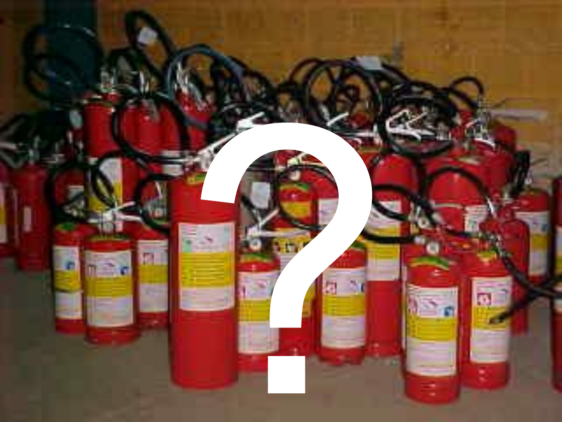 Algumas empresas usam a cor no rótulo para sinalizar a classe de incêndio para a qual o equipamento se aplica. Pó Químico - Age principalmente por abafamento. Há várias composições de pós, o mais comum, do tipo BC é fabricado com 95% de bicarbonato de sódio e 5% de estearato de potássio, de magnésio e outros - para melhorar sua fluidez e torná-lo repelente à umidade e ao empedramento. Como gás de pressurização recomenda-se o uso de nitrogênio. Pó Químico Pó ABC (múltiplo uso, polivalente, para fogo em sólidos, líquidos inflamáveis e eletricidade). Seu principal componente, o fosfato monoamônico, é um produto muito utilizado na produção de fertilizante agrícola. Monoammonium Phosphate Monoammonium Phosphate or "ABC" or "Multi-Purpose" Dry Chemical differs from potassium bicarbonate or sodium bicarbonate in that it is acidic in nature. In addition to similar effectiveness on class B and C fires when compared to sodium bicarbonate, monoammonium phosphate has unique effectiveness on class A fires. When it contacts the burning surface of an ordinary combustible, a molten residue (metaphosphoric acid) is formed. This residue coats the burning ember and excludes oxygen. Monoammonium phosphate will not saponify when used on hot cooking grease and will cause corrosion if not thoroughly removed from most surfaces. http://www.amerex-fire.com/system/document/file/92/Fire_and_Fire_Extinguishment.pdf Note a presença do manômetro e a ausência do disco de ruptura no gatilho. Compostos Halogenados Agem por abafamento. Não danificam equipamentos eletrônicos sensíveis. ALTAMENTE EFICIÊNTES! Mais eficiente que o CO2. São aplicáveis para as classes de fogo A, B e C. Problemas ambientais. Uso restrito (ex: aeronaves). Observação: Agentes halogenados (Halon) Nesta classificação são encontrados por exemplo o Halon 1211, o Halon 1301 e a combinação dos dois: - Halon 1211/1301. São gases liquefeitos, classificados como agentes limpos porque não deixam resíduos após descarga. Extinguem o fogo interrompendo a reação da combustão. Halon 1301- Bromotrifluorometano Para espaços ocupados de aeronaves, onde não existe ventilação forçada, não há disponibilidade de máscaras de oxigênio e não há um segundo piloto, o extintor de Halon 1301 é o escolhido e deve ter o mínimo de 8 segundos de tempo de descarga. Halon 1211- Bromoclorodifluorometano O extintor de Halon 1211, indicado para espaços ocupados em aeronaves, deve ter não menos de 8 segundos de tempo de descarga e alcance mínimo de 3 metros. Em pequenas aeronaves, certificadas para até quatro ocupantes, pode ser usado em lugar do Halon 1301, que é o recomendado. Podem, também, serem usados os extintores que combinam os agentes Halon 1211 e Halon 1301. Fonte: ANAC Data: 10 abr. 2008 CI Nº: 20-003 Observação: Agentes halogenados (Halon) Halogenated agents have been used for fire fighting since the early 1900's. Of the ten halogenated agents that have been used two have been the most common since the early 1970's - halon 1211 and halon 1301. Each halogenated agent has unique physical properties such as vapor pressure, boiling point, specific gravity and the like. All halogenated agents decompose when exposed to flame or temperatures above 900 deg. F. THEORY OF EXTINGUISHMENT: Halogenated agents suppress fire by interrupting the chemical chain reaction in the combustion process, working in the fire chemically instead of physically. Exactly how this "chain breaking" process works is not completely understood. It is generally agreed that bromine is released from the agent as it decomposes in the fire carrying away the "free radicals" that cause the combustion and releasing more bromine to continue the "chain breaking" process. http://www.amerex-fire.com/system/document/file/92/Fire_and_Fire_Extinguishment.pdf Many of these halogenated agents, halon 1301 and 1211 specifically, are identified as ozone-depleting agents and are subject to control under the Montreal Protocol and other Federal requirements. NFPA 10 and 12A have specific requirements for reclaiming these agents and preventing their release into the atmosphere under non- fire conditions. For more information on how to accomplish this consult the manufacturer’s service, maintenance and recharge manual for the equipment and agent involved. The primary advantage of halogenated agents has been the lack of clean up required after using the agent. In some environments (such as electronics, data processing, jet engines and high tech optical equipment), discharging other extinguishing agents such as dry chemical or water could cause more property damage than the fire itself. Pound for pound, halogenated agents as used in hand portable extinguishers were never as effective as more common agents on typical class B and class A fires. http://www.amerex-fire.com/system/document/file/92/Fire_and_Fire_Extinguishment.pdf Gás Carbônico (CO2) - Age por abafamento, e por resfriamento em ação secundária. É um gás sem cheiro, sem cor e não conduz eletricidade, sendo recomendado na extinção de fogo classes B e C. Quando usado em grandes quantidades (sistemas fixos) é asfixiante. Segure aqui! Gatilho Frio!!! Cuidado! Alta Pressão! Note a ausência de manômetro e a presença do disco de ruptura. Disco de ruptura. Fonte: http://www.cieb.cbmerj.rj.gov.br/documentos/Material_downloads/Cap_3.pdf Água - Age inicialmente por resfriamento. Sua ação por abafamento ocorre devido à sua capacidade de transformação em vapor, na razão de 1 litro de água para 1.500 litros de vapor. Específico para classe A. Fonte: http://www.cieb.cbmerj.rj.gov.br/documentos/Material_downloads/Cap_3.pdf Rasgos laterais na rosca. Espuma: Mecânica - Age primeiro por abafamento e de forma secundária por resfriamento. Quando a espuma é do tipo AFFF (aqueous film forming foams), o líquido drenado forma um filme aquoso na superfície do combustível, dificultando a re-igniç