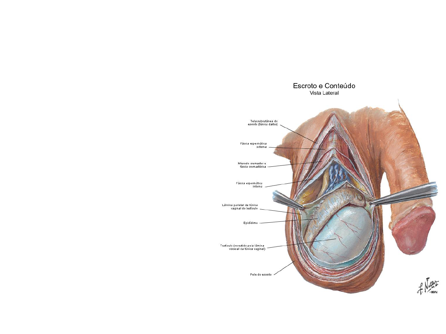 Escroto •Bolsa situada atrás do pênis e abaixo da sínfise púbica. •É dividida pelo septo do escroto em dois compartimentos, cada um contendo um testículo. •Estrutura que propicia uma temperatura favorável à espermatogênese.