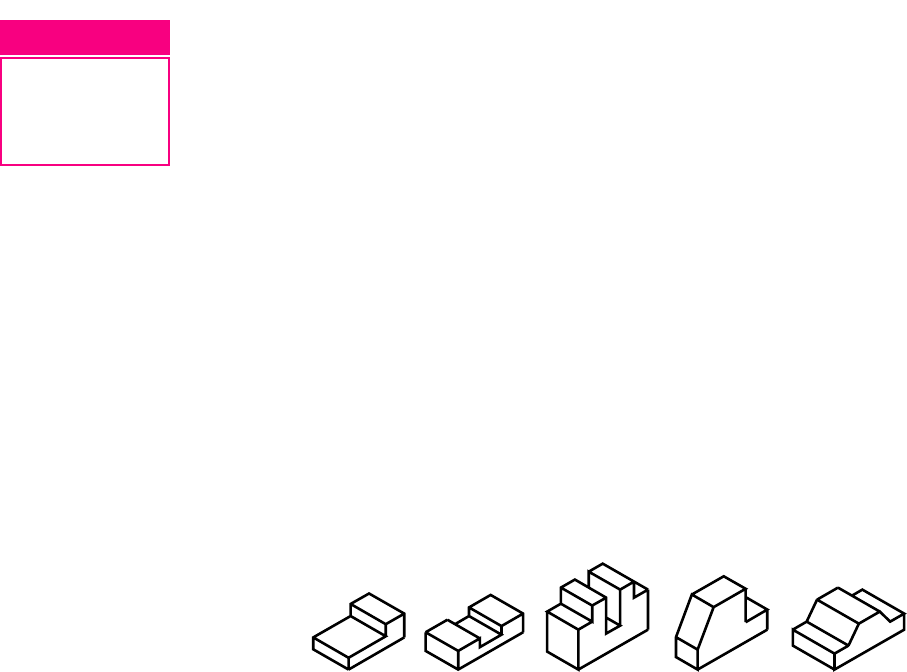 A U L A 8 Projeçªo ortogrÆfica de modelos com elementos paralelos e oblíquos 8 A U L A Introduçªo VocŒ jÆ sabe que peças da Ærea da Mecânica tŒm formas e elementos variados. Algumas apresentam rebaixos, outras rasgos, chanfros etc. Para interpretar o desenho tØcnico de modelos como esses, vocŒ vai precisar de outros conhecimentos, alØm dos princípios de projeçªo ortogrÆfica que jÆ aprendeu nas aulas anteriores. Todos os elementos que aparecem no desenho tØcnico - linhas, símbolos, nœmeros e indicaçıes escritas - sªo normalizadosnormalizadosnormalizadosnormalizadosnormalizados. É a ABNTABNTABNTABNTABNT, por meio da norma NBR 8 403, que determina quais tipos de linhas devem ser usadas em desenhos tØcnicos, definindo sua largura e demais características. Cada tipo de linha tem uma funçªo e um significado. É o que vocŒ vai aprender nesta aula. AlØm disso, vocŒ ficarÆ sabendo como se faz a projeçªo ortogrÆfica de sólidos geomØtricos com elementos paralelos e oblíquos. Para ser bem-sucedido, vocŒ deverÆ acompanhar com interesse as instru- çıes, fazer todos os exercícios com atençªo e reler o conteœdo quantas vezes forem necessÆrias, atØ entender bem cada assunto. Projeçªo ortogrÆfica de modelos com elementos paralelos O primeiro modelo prismÆtico com elementos paralelos a ser examinado Ø o prisma com rebaixo, que corresponde ao modelo de plÆstico n” 1. Nossa aula 1 A U L A 8 Estudando as projeçıes de diversos modelos, vocŒ aprenderÆ a interpretar todos os tipos de linhas empregadas em desenho tØcnico. Linha contínua larga A linha usada para representar arestas e contornos visíveis Ø a linha contínua larga. Agora, veja a aplicaçªo da linha contínua larga na representaçªo da projeçªo ortogrÆfica do prisma com rebaixo. Observando o modelo de fren- te, vocŒ terÆ uma vista frontal proje- tada no plano vertical. Todos os pontos do modelo es- tªo representados na vista frontalvista frontalvista frontalvista frontalvista frontal, mas apenas as arestas visíveis ao observador sªo desenhadas com a linha contínua largalinha contínua largalinha contínua largalinha contínua largalinha contínua larga. Observando o modelo de cima vocŒ terÆ a vista superiorvista superiorvista superiorvista superiorvista superior projetada no plano horizontal. Todas as arestas visíveis ao ob- servador sªo desenhadas na vistavistavistavistavista superiorsuperiorsuperiorsuperiorsuperior. A face do prisma, indicada pela letra AAAAA, Ø um retângulo perpendi-perpendi-perpendi-perpendi-perpendi- cularcularcularcularcular ao plano horizontal. Logo, a projeçªo da face AAAAA no plano hori- zontal reduz-se a um segmento de reta. Modelo n” 1 2 A U L A 8 E, finalmente, observando o modelo de lado, vocŒ terÆ a vistavistavistavistavista lateral esquerdalateral esquerdalateral esquerdalateral esquerdalateral esquerda projetada no pla- no lateral. A face BBBBB do prisma, que forma o rebaixo, Ø um retângulo perpen- dicular ao plano lateral. No desenho, a projeçªo da face BBBBB Ø representada por uma linha contínua larga. Veja agora a projeçªo do mode- lo nos trŒs planos de projeçªo ao mesmo tempo. Linha contínua estreita Imagine que o modelo tenha sido retirado. Observe suas vistas representa- das nos planos de projeçªo. As linhas contínuas estreitaslinhas contínuas estreitaslinhas contínuas estreitaslinhas contínuas estreitaslinhas contínuas estreitas, que aparecem no desenho ligando as arestas das vistas, sªo chamadas de linhas projetantes auxiliareslinhas projetantes auxiliareslinhas projetantes auxiliareslinhas projetantes auxiliareslinhas projetantes auxiliares. Essas linhas sªo importantes para quem estÆ iniciando o estudo da projeçªo ortogrÆfica, pois ajudam a relacionar os elementos do modelo nas diferentes vistas. Elas sªo imaginÆrias, por isso nªo sªo representadas no desenho tØcnico definitivo. linhas projetantes auxiliares linhas projetantes auxiliares 3 A U L A 8 Imagine o rebatimento dos planos de projeçªo, como mostram as ilustraçıes a seguir, e observe a disposiçªo das vistas ortogrÆficas: No desenho tØcnico identificamos cada vista pela posiçªo que ela ocupa no conjunto. Nªo hÆ necessidade, portanto, de indicar por escrito seus nomes. As linhas projetantes auxiliares tambØm nªo sªo representadas. Observe novamen- te o modelo e suas vistas ortogrÆficas: Verificando o entendimento Agora Ø a sua vez! Observe o modelo representado em perspectiva à esquerda. Complete as vistas desenhando na figura da direita as linhas para contornos e arestas visíveis. 4 A U L A 8 Veja bem! Para completar o traçado das vistas que estªo incompletas, vocŒ deve imaginar o modelo visto de cima e de lado: As arestas visíveis ao observador devem ser representadas na vista superior e na vista lateral esquerda, como mostra o desenho a seguir. Nªo faz mal se vocŒ nªo tiver representado as linhas projetantes auxiliares na sua resposta. Elas foram desenhadas aqui apenas para mostrar como os elementos se relacionam nas diferentes vistas. Essas linhas nunca sªo represen- tadas num desenho tØcnico definitivo. Linha tracejada estreita Dependendo da posiçªo que o elemento ocupa no modelo, Ø necessÆrio usar outro tipo de linha para representÆ-lo. Quando o elemento nªo Ø visível ao observador, ele deve ser representado pela linha para arestas e contornos nªo visíveis, simbolizada por uma linha tracejada estreita. Vamos ver a aplicaçªo desse tipo de linha na projeçªo ortogrÆfica do modelo prismÆtico com um rasgo central paralelo, representado a seguir. Esta perspec- tiva corresponde ao modelo de plÆstico n” 32: 5 A U L A 8Analise a figura ao lado. Ela mostra a projeçªo do modelo visto de frente no plano vertical. As faces que formam o rasgo central sªo retângulos perpendicu- lares ao plano vertical. Na vista frontal, esse rasgo apa- rece representado pela linha para arestas e contornos visí