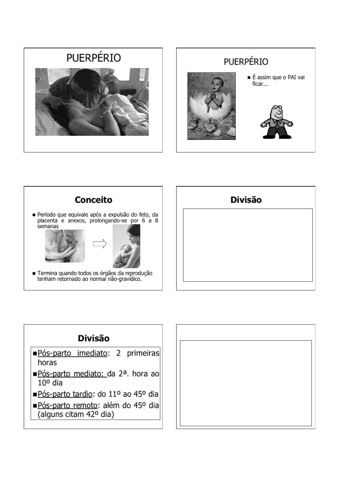 Nesse período de alterações físicas, o puerpério pode ser classificado em 4