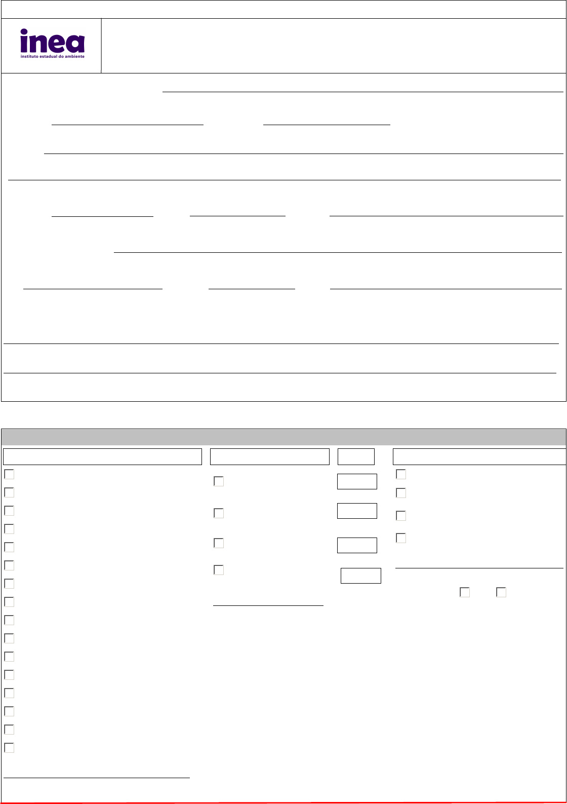 Vem requerer junto ao INSTITUTO ESTADUAL DO AMBIENTE - INEA, o especificado nos quadros abaixo e o que consta dos anexos apresentados e no Cadastro Nacional