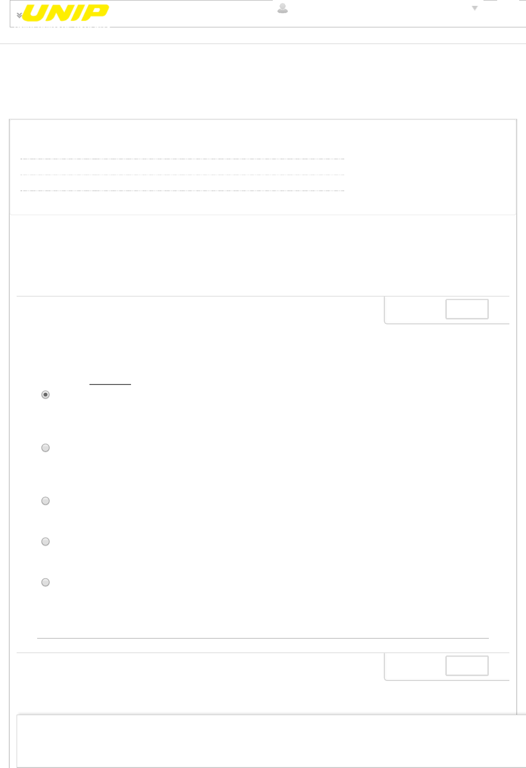 Fazer teste: QUESTIONÁRIO UNIDADE I EDUCAÇÃO AMBIENTAL - OPTATIVA 6584-20_57501_R_20182 CONTEÚDO Informações do teste Descrição Instruções Várias tentativas Este teste permite 3 tentativas. Esta é a tentativa número 1. Forçar conclusão Este teste pode ser salvo e retomado posteriormente. a. b. c. d. e. PERGUNTA 1 "O século XVIII estabeleceu um marco na história da humanidade quando teve início o processo da Revolução Industrial, que alterou as formas de organização social, a economia e o meio ambiente. Como consequência, a poluição do ar, da água e do solo se incorporaram ao cotidiano das cidades". Com relação ao período que se segue após a Revolução Industrial, assinale a alternativa incorreta. Nessa época, a utilização de energia proveniente do uso intensivo da água, da queima de carvão e, posteriormente, do petróleo nos processos industriais foi determinante para o comprometimento dos recursos naturais nas décadas que se seguiram. Os episódios de inversão térmica que causaram transtornos em diversos países, como no Vale de Meuse, na Bélgica, em 1930, não tinham relação nenhuma com as indústrias, pois a inversão térmica é um fenômeno natural que não sofre in�uência das emissões de gases industriais. Só em meados do século XX, diante do intenso aumento da poluição nos ambientes urbanos, estabeleceu-se a associação entre alterações na saúde das populações, até mesmo a morte, e a exposição a esses poluentes. A sociedade industrializada de então desconhecia a dimensão dos graves problemas que provocaria no meio ambiente em curto e médio prazo e, consequentemente, seus impactos na saúde humana. A vulnerabilidade ambiental e dos seres humanos foi definitivamente desnudada quando acidentes ambientais de grande magnitude começaram a ocorrer. 0,5 pontos Salva a. b. PERGUNTA 2 A Agenda 21 abrange uma quantidade ambiciosa de temas e propõe um plano de ação necessário para que o desenvolvimento ocorra sempre vinculado a uma preocupação de ordem mundialmente ambiental. Tal proposta foi apresentada em qual evento? Clube de Roma, na Itália. Primeira Conferência Mundial de Meio Ambiente Humano, em Estocolmo, na Suécia. 0,5 pontos Salva ? Estado de Conclusão da Pergunta:CONTEÚDOS ACADÊMICOS BIBLIOTECAS MURAL DO ALUNO TUTORIAIS Clique em Salvar e Enviar para salvar e enviar. Clique em Salvar todas as respostas para salvar todas as respostas. UNIP EAD maceilto.almeida @unipinterativa.edu.br c. d. e. Primeiro Congresso Mundial de Educação Ambiental, que �cou conhecido como Conferência de Tbilisi. Segundo Congresso Internacional de Educação Ambiental, em Moscou, na ex-União Soviética. Conferência das Nações Unidas para o Meio Ambiente e Desenvolvimento, no Rio de Janeiro, mais conhecida como Rio 92 ou ECO 92. a. b. c. d. e. PERGUNTA 3 Com relação à Conferência de Tbilisi, realizada em 1977, em Tbilisi, na Geórgia (ex-União Soviética), é incorreto a�rmar que: Consta no relatório final da Conferência Internacional de Tbilisi, que a educação deve promover a compreensão do papel dos diversos fatores biológicos, físicos e socioeconômicos nas interações totais que caracterizam o ambiente. Durante a Conferência de Tbilisi foram delineados os principais eixos norteadores da Educação Ambiental. O próprio conceito de meio ambiente sofreu reformulações. Foi durante a Conferência de Tbilisi que o brasileiro Paulo Nogueira Neto elaborou com outros integrantes da Comissão Mundial Sobre o Meio Ambiente e Desenvolvimento o documento Nosso Futuro Comum. Esse texto aponta pela primeira vez a incompatibilidade entre desenvolvimento sustentável e padrões de produção e consumo, no entanto, sem desconsiderar o crescimento econômico, desde que este venha conciliado com as questões ambientais. Estabeleceu diversas metas e uma delas seria estabelecer meios que propiciassem a conscientização a respeito da íntima relação entre o modo de vida das pessoas e a qualidade ambiental. Estabeleceu diversas metas e uma delas seria promover o estabelecimento de uma visão ampla da complexidade das interações ocorridas entre o meio natural e o meio social humano. 0,5 pontos Salva a. b. c. d. e. PERGUNTA 4 Em 1962, ________________ alertou para os efeitos danosos que algumas ações humanas provocam no ambiente. Por meio da publicação de_________________________ questionou de forma incisiva a con�ança cega da humanidade no progresso tecnológico. Essa obra abriu espaço para o movimento ambientalista que se seguiu. Sua maior contribuição foi a conscientização pública de que a natureza é frágil diante da intervenção humana, fomentando uma inquietação internacional sobre a perda da qualidade de vida. Assinale a alternativa que preenche corretamente as lacunas do texto. Darcy Vargas, Primavera Silenciosa. Paulo Nogueira Neto, Nosso Futuro Comum. Rachel Carson, Primavera Silenciosa. Aziz Nacib Ab’Sáber, Nosso Futuro Comum. José Lutzenberger, O Manifesto Ecológico Brasileiro. 0,5 pontos Salva PERGUNTA 5 Em 1968 foi criado o Clube de Roma, na Itália, em que tomavam parte cientistas, políticos e industriais. Assinale a alternativa que apresenta os 0,5 pontos Salva Estado de Conclusão da Pergunta: Clique em Salvar e Enviar para salvar e enviar. Clique em Salvar todas as respostas para salvar todas as respostas. a. b. c. d. e. , p q p principais problemas detectados por eles e publicados no relatório que chamaram de Limites do Crescimento. Utilização do carvão e do petróleo na indústria; aquecimento global. Elevação da temperatura da Terra; problemas relacionados à utilização dos agrotóxicos; contaminação do mar por mercúrio. Industrialização acelerada; rápido crescimento demográ�co; esgotamento de recursos não renováveis. Aquecimento global; problemas relacionados com a utilização dos agrotóxicos; rápido crescimento demográ�co. Rápido crescimento demográ�co