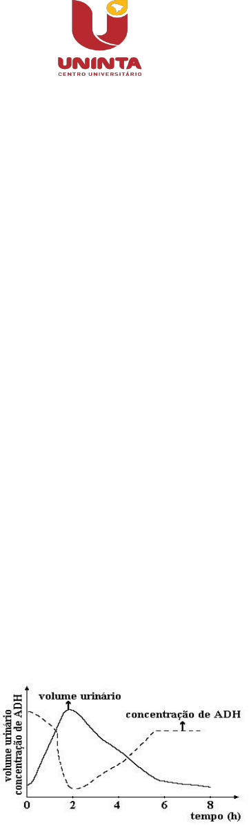 1º ESTUDO DIRIGIDO 1. Quando falamos em homeostase, referimo-nos à tendência do organismo de manter o meio interno em relativa estabilidade. Entende-se por meio interno: a) o conjunto de todas as células do corpo. b) o conjunto de todos os sistemas do organismo. c) os fluidos que circulam pelas nossas células. d) o interior dos órgãos. e) o interior do sistema nervoso. 2. O organismo é capaz de manter o equilíbrio do meio interno quase constante. Para garantir esse equilíbrio, denominado de homeostase, o corpo conta com dois sistemas principais: a) sistema cardiovascular e sistema nervoso. b) sistema endócrino e sistema cardiovascular. c) sistema digestório e sistema urinário. d) sistema urinário e sistema cardiovascular. e) sistema endócrino e sistema nervoso. 3. Para manter a homeostase, nosso organismo realiza vários processos. Quando a pressão arterial eleva-se, por exemplo, sinais são enviados para o encéfalo a fim de diminuir a atividade bombeadora do coração e facilitar o fluxo sanguíneo pelos vasos periféricos. Como consequência dessas ações, a pressão arterial cai. O mecanismo de controle da homeostase descrito acima é chamado de: a) ciclo celular. b) irritabilidade. c) metabolismo. d) feedback negativo. e) feedback positivo 4. Pessoas normais beberam, cada uma, 2 litros de água num intervalo de 2 horas. A seguir temos os gráficos que registram as médias das variações dos volumes urinários e das concentrações do hormônio anti-diurético (ADH) no sangue em função do tempo. A análise dos gráficos permite concluir que a) o hormônio ADH tem efeito diurético, o que faz aumentar o volume urinário. b) o volume urinário não tem nenhuma relação com a secreção do hormônio ADH. c) há uma relação diretamente proporcional entre a concentração do hormônio ADH e o volume urinário. d) o aumento do volume urinário influi sobre os rins, inibindo a secreção do hormônio ADH. e) há uma relação inversamente proporcional entre a concentração do hormônio ADH e o volume urinário. 5. Um esportista percorreu alguns quilômetros numa manhã ensolarada de verão, acompanhado de seu cachorro. Após a corrida, o esportista estava suando e o cachorro com a língua de fora. Do ponto de vista fisiológico, que relação existe entre o fato do esportista suar e o cachorro colocar a língua de fora, após a execução de um exercício físico? Explique o que acontece em ambos os casos. 6. O gráfico anterior representa como um determinado tipo de animal reage às variações de temperatura do ambiente. Para manifestar essa reação, seu corpo lança mão de mecanismos fisiológicos diferenciados em locais de clima quente e de clima frio. Assinale a opção que apresenta corretamente os mecanismos fisiológicos adequados a cada uma das situações. a) CLIMA QUENTE - contração dos vasos sanguíneos superficiais. CLIMA FRIO: eriçamento de pelos e penas. b) CLIMA QUENTE - dilatação de vasos sanguíneos superficiais. CLIMA FRIO: respiração ofegante. c) CLIMA QUENTE: diminuição da circulação abaixo da pele. CLIMA FRIO: tremor do corpo. d) CLIMA QUENTE: respiração ofegante. CLIMA FRIO: dilatação de vasos sanguíneos superficiais. e) CLIMA QUENTE: aumento da sudorese. CLIMA FRIO: contração dos vasos sanguíneos superficiais. 7. Diariamente o corpo humano realiza diversas atividades que são controladas pelo Sistema Nervoso e conduzidas através de impulsos nervosos: que são impulsos elétricos que se originam das alterações nas cargas elétricas das superfícies interna e externa da membrana plasmática. Sendo assim, se a concentração de potássio intracelular for 30 vezes maior do que a extracelular e se a membrana celular for permeável somente ao íons potássio, deve-se considerar que: a) haverá efluxo de potássio até que o potencial de membrana seja equivalente ao potencial de equilíbrio do potássio. b) a força impulsora de potássio será definida pela diferença entre o potencial de membrana e o potencial de equilíbrio. c) o movimento líquido dos íons potássio através da membrana é uma corrente elétrica. d) o número de canais de potássio abertos é proporcional a uma condutância elétrica. e) todas as alternativas estão corretas. 8. Diversos comportamentos e funções fisiológicas do nosso corpo são periódicos, sendo assim, são classificados como ritmo biológico. Quando o ritmo biológico responde a um período aproximado de 24 horas, ele é denominado ritmo circadiano. Esse ritmo diário é mantido pelas pistas ambientais de claro-escuro e determina comportamentos como o ciclo do sono-vigília e o da alimentação. Uma pessoa, em condições normais, acorda às 8 h e vai dormir às 21 h, mantendo seu ciclo de sono dentro do ritmo dia e noite. Imagine que essa mesma pessoa tenha sido mantida numa sala totalmente escura por mais de quinze dias. Ao sair de lá, ela dormia às 18 h e acordava às 3 h da manhã. Além disso, dormia mais vezes durante o dia, por curtos períodos de tempo, e havia perdido a noção da contagem dos dias, pois, quando saiu, achou que havia passado muito mais tempo no escuro. Em função das características observadas, conclui-se que a pessoa: a) Apresentou aumento do seu período de sono contínuo e passou a dormir durante o dia, pois seu ritmo biológico foi alterado apenas no período noturno. b) Apresentou pouca alteração do seu ritmo circadiano, sendo que sua noção de tempo foi alterada somente pela sua falta de atenção à passagem do tempo. c) Estava com seu ritmo já alterado antes de entrar na sala, o que significa que apenas progrediu para um estado mais avançado de perda do ritmo biológico no escuro. d) Teve seu ritmo biológico alterado devido à ausência de luz e de contato com o mundo externo, no qual a noção de tempo de um dia é modulada pela presença ou ausência do sol. e) Deveria não ter apresentado nenhuma mudança do seu período de sono porque, 