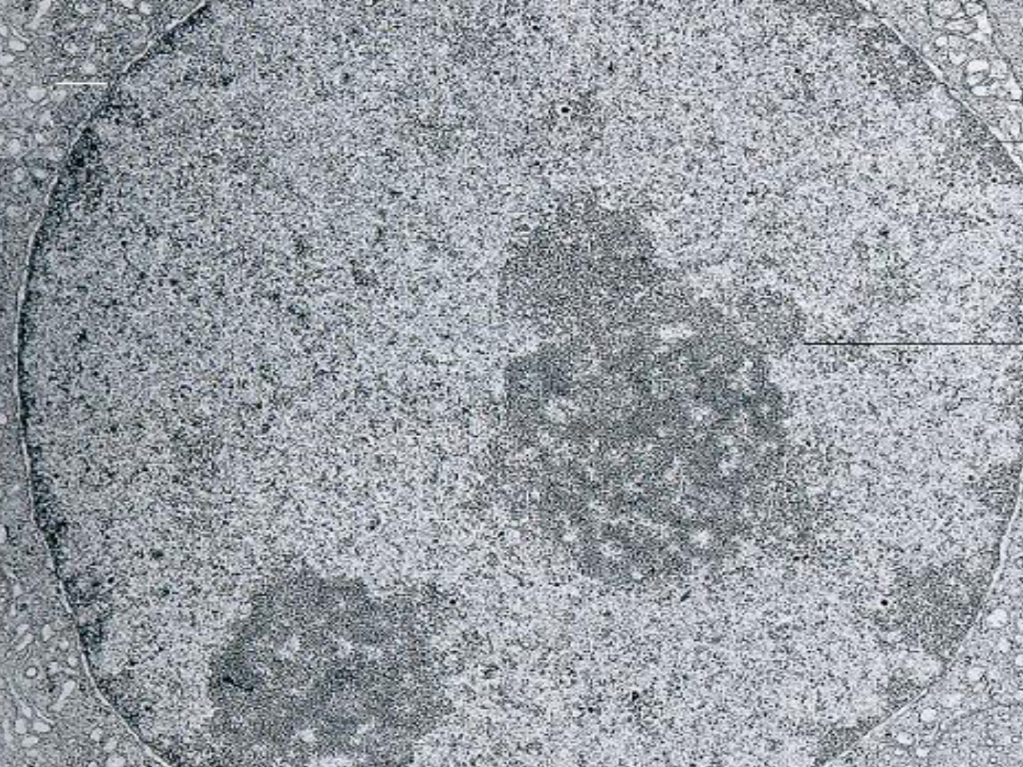 Núcleo Jim Duffy – Spector Lab Núcleo Eucariontes 10% do volume celular Carioteca – duas membranas concêntricas contínuas com o RE poros Núcleo Celular Corpúsculo celular relacionado ao controle de todas as atividades celulares. As suas funções estão relacionadas: - Armazenamento de informações hereditárias. - Controle das funções celulares. NUCLÉOLO CROMATINA CARIOTECA CARIOPLASMA nucléolo Filamento de cromatina poros carioteca cariolinfa Componentes NÚCLEO INTERFÁSICO Célula que não está se dividindo. Núcleo Celular 1. Carioteca - envoltório nuclear, formada por duas membranas com poros, onde há intercâmbio de substâncias entre o núcleo e o citoplasma. 2. Nucleoplasma, Cariolinfa ou Suco Nuclear- é uma massa incolor constituída principalmente de água e proteínas. 3. Nucléolo - Trata-se de um corpúsculo esponjoso e desprovido de membranas, que se encontra em contato direto com o suco nuclear, rico em RNA ribossômico. 4. Cromatina - representa o material genético, com proteínas e moléculas de DNA. Têm aspecto emaranhado de filamentos longos e finos, denominados cromonemas. Esses apresentam regiões condensadas chamadas de heterocromatinas, e regiões distendidas chamadas eucromatinas. Durante a divisão celular, os cromonemas espiralizam-se, tornando-se mais curtos e mais grossos e passam a ser chamados de cromossomos. Compartimento nuclear Cromossomos Uma única molécula de DNA combinada com proteínas RNA Mensageiro, ribossômico, transportador Nucléolo Genes de RNAm e RNAm Proteínas Nucleoplasma Carioteca Duas membranas concêntricas atravessadas por poros unidas ao nível dos poros Espaço perinuclear – espaço entre a membrana interna e externa Membrana externa comunica-se com o RE Lâmina nuclear – malha delgada de filamentos entrecruzadas Confere resistência Superfície citoplasmática Superfície nuclear C a r i o t e c a NÚCLEO INTERFÁSICO Características dupla Continuidade do R.E. Presença de ribossomos Presença de poros ( annulli) C a r i o p l a s m a NÚCLEO INTERFÁSICO Composto por H2O, DNA, proteínas Massa incolor (coloidal) Também chamado cariolinfa ou nucleoplasma Comporta as estruturas nucleares. Citoesqueleto / matriz nuclear Laminas matrinas Metaloproteínas Actina Miosina I Estrutura dos poros Fig.8: Poros nucleares ao microscópio electrónico . Estruturas anelares. Fig.9: Modelo a 3D de um poro nuclear. 8 sub-unidades. Poros 3000 a 4000 poros Nucleoporinas – proteínas que compõem uma estrutura denominada complexo do poro Complexo do poro Oito colunas protéicas – formam uma parede cilíndrica; Proteínas de ancoragem – amarram as colunas proteícas Proteínas radiais – orientadas para o poro, função diafragma (alongam e encurtam) Fibrilas proteícas – se projetam para o nucleoplasma e citosol; fibras circulares; Doye & Hurt, Curr Opin Cell Biol 1997 9:401 _________________ Complexo do Poro Nuclear Passagem de macromoléculas através do poro RNA Proteínas nucleares que deixaram de funcionar _______Estrutura do_Complexo do poro nuclear * Estrutura central *Anel nuclear * Filamentos nucleares * Anel citoplasmático * Filamentos Citopl. * Plug central Ohno et al., 1998 Cell 92:327 É uma estrutura cilindrica; Perpendicular ao plano do envelope nuclear; Entrada de proteínas no núcleo Ingressam pregueadas Peptídeo sinalizador – específico NSL – nuclear sinal localização Interagem especificamente com as importinas Cada NSL tem uma importina Transportinas – interagem com os NSL para permitir a entrada Transporte através do poro nuclear 5 - 60 kDa >60 kDa 25 nm 19 Etapas para entrada através do poro Proteína se liga à importina por meio do NSL Atravessam antes da ampliação do diafragma Importina é guiada pelas fibrilas Gasto um GTP – hidrólise ocorre por meio da proteína Ran GTP atuam associadas às GEF e GAP: GAP – leva GTP a formar GDP + P Visão esquemática do mecanismo de transporte ativo por meio dos poros nucleares. Transporte ativo através dos poros nucleares depende do ciclo de hidrólise de GTP da proteína Ran-GTPase “Pequena GTPase” “Pequena proteina G” 22 Etapas para entrada através do poro GEF promove a substituição do GDP da RAN por um GTP RAN – GTP se une ao complexo importina-proteína com isso a proteína fica retida no núcleo (desligada da importina) Importina e RAN –GTP permanecem unidas, atravessam o poro e retornam ao citosol No citosol a GAP induz à hidrólise de GTP e a separação da importina podendo ser utilizadas novamente Saída de proteínas e de moléculas de RNA NES – peptídeos sinalizadores Reconhecidos pelas exportinas ou transportinas Etapas Proteína se une à exportina por meio do NES GEF remove o GDP de uma RAN-GDP RAN-GTP se une à proteína por meio da exportina Aproximação do poro Alargamento do poro 25nm Exportina é guiada pelas fibrilas RAN-GTP hidrolisa a GDP Proteína se desliga e fica retida Cromossomos Informações genéticas Genoma – toda informação genética contida no DNA Genes – sequências de nucleotídeos Cromossomo é uma única molécula de DNA O DNA é como uma escada retorcida ou uma dupla hélice sendo composta por inúmeros genes, os quais tem a função de determinar as características de cada um de nós. Cromossomos Células somáticas – cromossomos divididos em pares diplóides Células haplóides gametas Cromonema = Cromossomo Durante a divisão celular, os cromonemas espiralizam-se, tornando-se mais curtos e mais grossos. Podem, então, ser vistos individualmente e passam a ser chamados de cromossomos. Cromatina = Cromossomos O material genético descondensado – cromatina - é ativo, pois pode ser transcrito mais facilmente nesse estado. Ao se tornar condensado – cromossomo – a transcrição é dificultada, mas por outro lado a divisão celular ocorre com maior precisão. Cromossomos Uma molécula de DNA associada a diversas proteínas Cromatina – complexo DNA, histonas e 