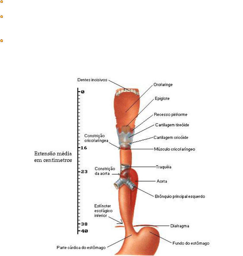ANATOMIA DO ESÔFAGO O esôfago é um tubo fibro-músculo-mucoso que se estende entre a faringe e o estômago. Se localiza posteriormente à traquéia começando na altura da 7ª vértebra cervical. Perfura o diafragma pela abertura chamada hiato esofágico e termina na parte superior do estômago. Mede cerca de 25 centímetros de comprimento. O esôfago é formado por três porções: Porção Cervical: porção que está em contato íntimo com a traquéia. Porção Torácica: é a porção mais importante, passa por trás do brônquio esquerdo (mediastino superior, entre a traquéia e a coluna vertebral). Porção Abdominal: repousa sobre o diafragma e pressiona o fígado, formando nele a impressão esofâgica. Porções do Esôfago O esôfago é constituído por musculatura de dois tipos. O esôfago cervical e o início do esôfago torácico é formado por musculatura estriada e a medida que ele aprofunda-se pelo tórax sua musculatura sofre uma transição para músculo liso de modo que no terço inferior do esôfago é predominante a musculatura lisa. Esta característica da disposição da musculatura é que determinará a velocidade de passagem do alimento mais lentamente no seu terço inferior. Uma vez dentro do esôfago, o alimento será impulsionado pelo peristaltismo próprio do esôfago, e este é produzido através de ondas que são classificadas em primárias, secundárias e algumas vezes terciárias. As relações anatômicas do esôfago cervical são: posteriormente a coluna vertebral desde vértebra cervical de número 6 até vértebra torácica de número 1, anteriormente relaciona-se com a traquéia intimamente, lateralmente está separado por fáscias dos grandes vasos do pescoço como por exemplo a carótida comum e sua divisão, a veia jugular interna, nervo vago e nervo hipoglosso. O esôfago torácico atravessa o mediastino superior e posterior, sendo que no mediastino superior relaciona-se com o arco da aorta e com a divisão da traquéia em brônquios principais direito e esquerdo. Já no mediastino posterior ele atravessa um espaço localizado entre os dois pulmões, isto também é observado no mediastino superior, passa por trás do coração e atinge a abertura do diafragma ( hiato esofagiano).Tanto no mediastino superior como no mediastino posterior o esôfago relaciona-se posteriormente com a coluna vertebral. O esôfago abdominal é a menor parte do esôfago, geralmente com apenas 2 cm de comprimento, logo após atravessar o hiato esofagiano o esôfago desvia-se para a esquerda e alcança o estômago na junção esofagogástrica. ANATOMIA DO ESTÔMAGO O estômago é uma porção do tubo digestivo sacular, localizado entre o esôfago e o duodeno, e que tem como principal função a digestão do alimento através da ação do suco gástrico. Ele possui uma parede anterior e outra posterior que juntam-se nas curvaturas gástricas maior e menor , sendo a curvatura menor côncava à direita e a curvatura maior convexa e localizada à esquerda. A junção do estômago com o esôfago se faz através da junção esofagogástrica e a região que separa o estômago do duodeno chama-se piloro, tanto proximalmente como distalmente, as aberturas do estômago são dotadas de um mecanismo esfincteriano que evita o refluxo do alimento. O estômago pode ser dividido em quatro porções : cárdia, fundo, corpo e parte pilórica. A cárdia é a região adjacente ao esôfago, possui no seu interior glândulas cárdicas, porém não há um limite externo preciso que separe esta região das regiões adjacentes. O fundo gástrico é a porção do esôfago que localiza-se superiormente a um plano imaginário e horizontal que atravessa a junção esofagogástrica, geralmente nesta porção encontramos ar (50 ml) que são normalmente deglutidos junto com o alimento, e este ar é visto ao RX simples de abdome na posição ereta. O corpo é a maior porção do estômago, está separado superiormente do fundo e da cárdia e inferiormente da porção pilórica. A área de separação inferior do corpo e porção pilórica pode ser localizada através da incisura angular que é uma depressão na curvatura menor do estômago. Finalmente a porção pilórica, localizada entre o corpo do estômago e o duodeno, pode ser dividida em duas partes : antro e canal pilórico, sendo o canal pilórico formado por uma musculatura espiralada conhecida por piloro. Estratigraficamente o estômago pode ser dividido em 4 camada que são de fora para dentro : camada serosa peritoneal, porção muscular, submucosa e mucosa. a porção muscular gástrica é representada por 3 camadas de músculos (circular, longitudinal e obliqua). Existe um marcapasso localizado no corpo do estômago que determina a contração da musculatura gástrica, os impulsos elétricos são produzidos numa freqüência de 20 em 20 segundos, e uma onda peristáltica formada no corpo impulsiona o alimento do estômago para o duodeno. O estômago possui geralmente a forma da letra (J) , é bastante móvel e possui uma grande capacidade de relaxamento podendo armazenar grande quantidade de alimento, porém geralmente sua capacidade é de 1 a 2 litros ESTÔMAGO O estômago está situado no abdome, logo abaixo do diafragma, anteriomente ao pâncreas, superiormente ao duodeno e a esquerda do fígado. É parcialmente coberto pelas costelas. O estômago está localizado no quadrante superior esquerdo do abdome (Ver quadrantes abdominais no menu principal), entre o fígado e o baço. O estômago é o segmento mais dilatado do tubo digestório, em virtude dos alimentos permanecerem nele por algum tempo, necessita ser um reservatório entre o esôfago e o intestino delgado. A forma e posição do estômago são muito variadas de pessoa para pessoa; o diafragma o empurra para baixo, a cada inspiração, e o puxa para cima, a cada expiração e por isso não pode ser descrita como típica. O estômago é divido em 4 áreas (regiões) principais: