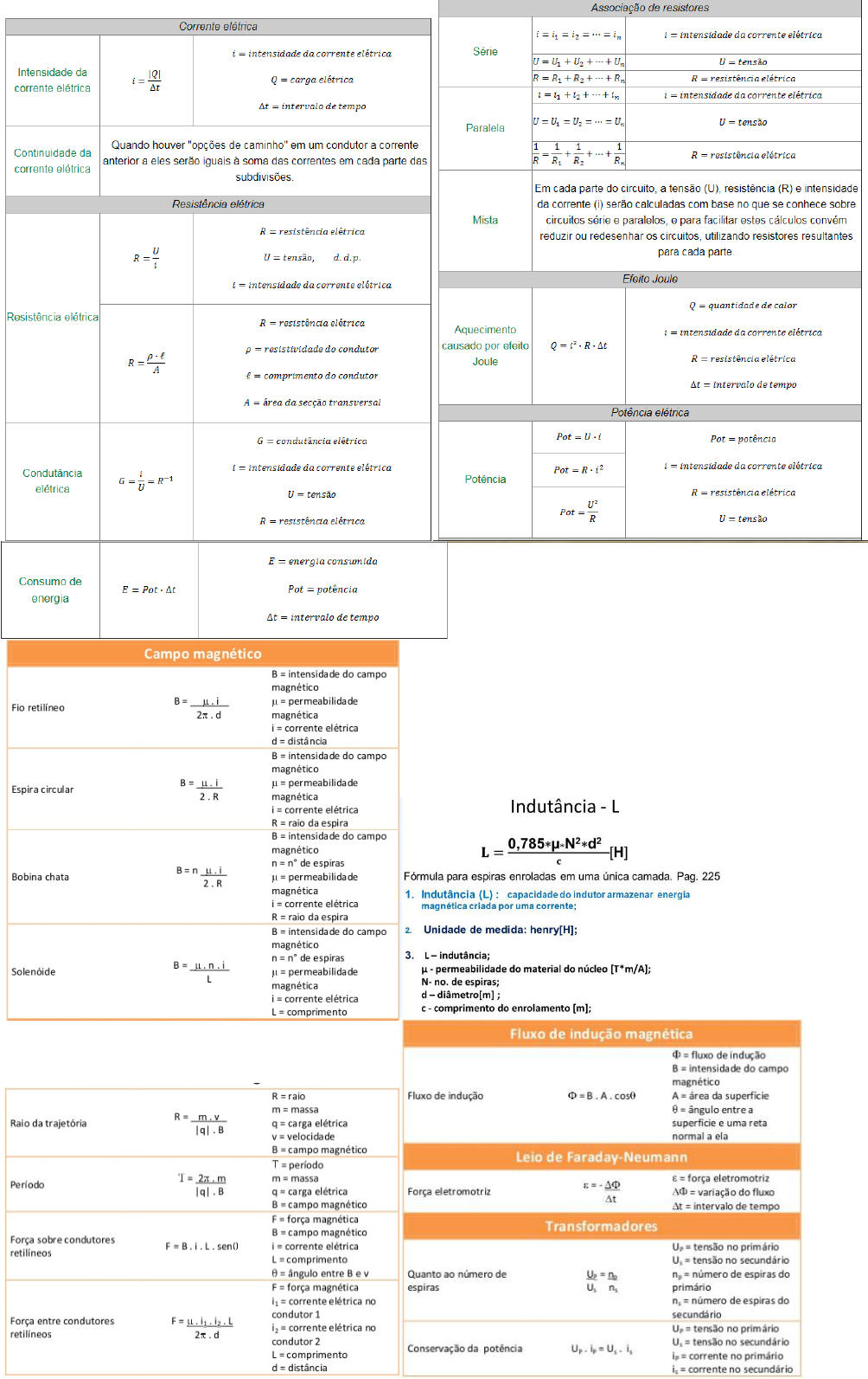 Fórmulas física - Eletromagnetismo