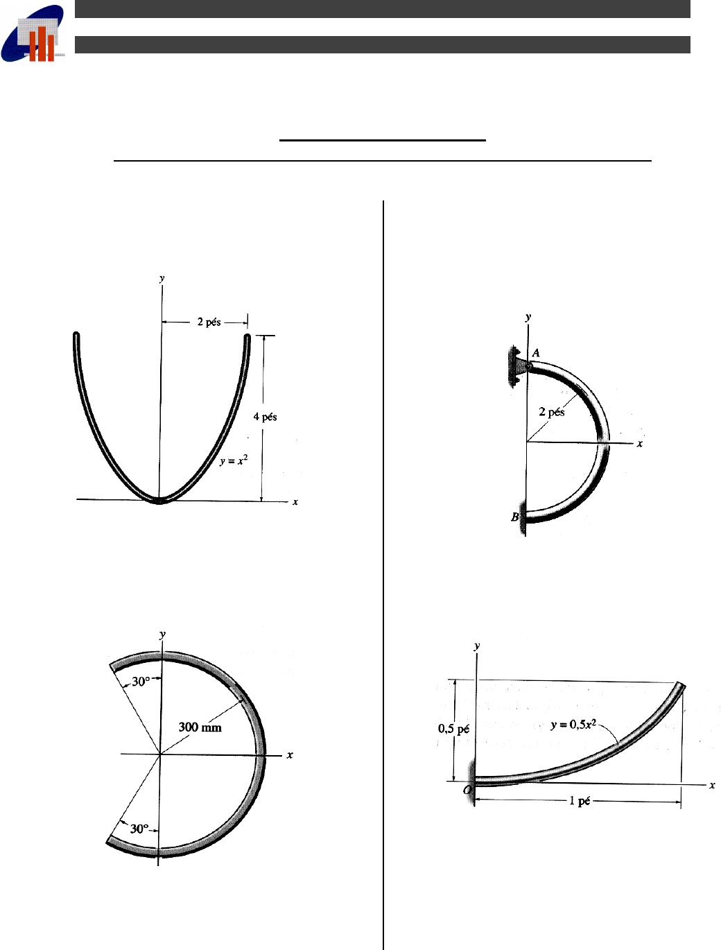 barra homogênea curvada na forma de uma parábola.