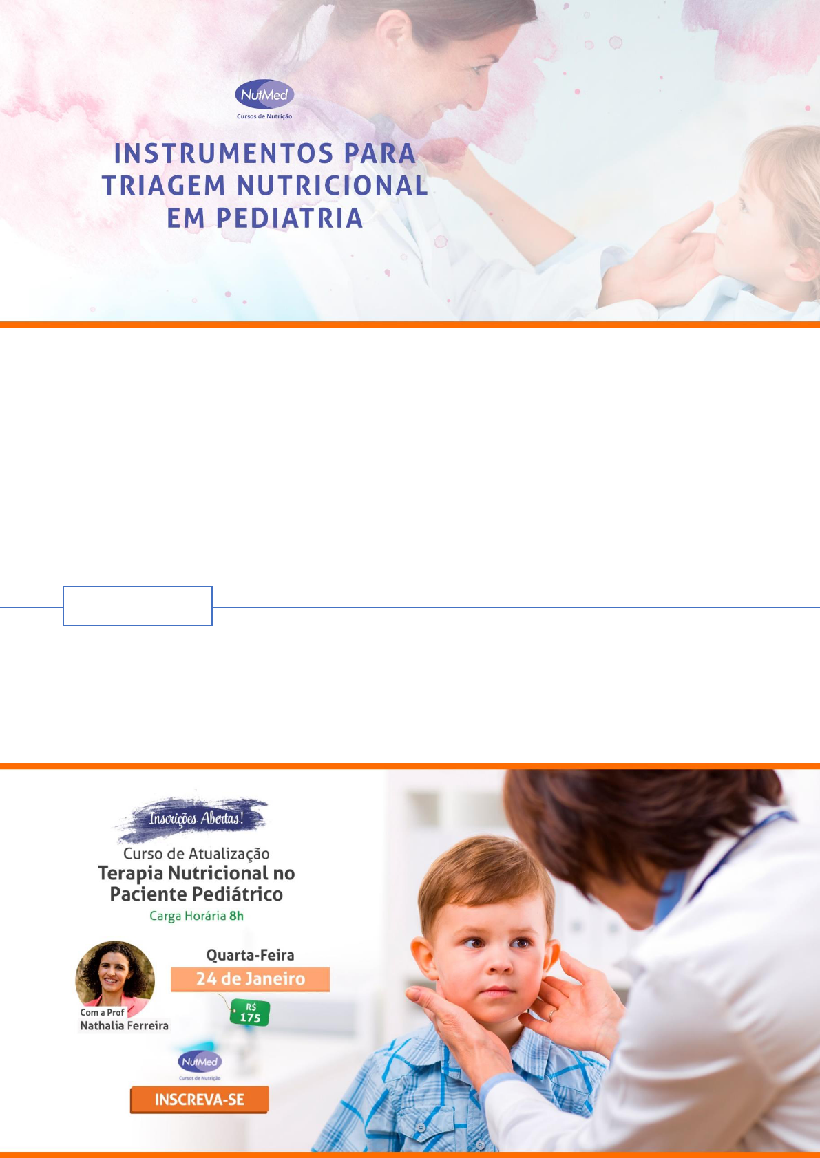 A avaliação do risco nutricional em pediatria se faz importante, pois as crianças e adolescentes estão em fase de pleno crescimento e desenvolvimento e, impactos negativos no estado nutricional podem ser significativos para a saúde desse grupo. A elevada morbimortalidade de crianças e adolescentes desnutridos sinaliza a necessidade de avaliação precoce, especialmente nas primeiras 48 horas de internação. A seguir estão listadas algumas ferramentas para triagem nutricional em pediatria amplamente divulgadas na literatura e que podem auxiliar os profissionais nutricionistas/equipe multiprofissional de terapia nutricional (EMTN) na detecção precoce de crianças e adolescentes desnutridos. 1. STRONGkids A ferramenta é utilizada em crianças e adolescentes com faixa etária de 1 mês a 18 anos de idade. Segue a referência original e a versão traduzida e adaptada para a população pediátrica brasileira: REFERÊNCIAS: - CARVALHO FC, LOPES CR, VILELA LC, VIEIRA MA, RINALDI EM, CRISPIM CA. Tradução e adaptação cultural da ferramenta Strongkids para triagem do risco de desnutrição em crianças hospitalizadas. Rev Paul Pediatr 2013;31(2):159-65. - HULST JM, ZWART H, HOP WC, JOOSTEN KF. Dutch national survey to test the STRONGkids nutritional risk screening tool in hospitalized children. Clin Nutr 2010;29:106-11. 2. Pediatric Nutritional Risk Score (PNRS) Aplicável em crianças e adolescentes com idade entre 1 mês a 18 anos sendo pacientes cirúrgicos ou clínicos. Questionamentos: Ingestão alimentar (Inferior a 50%): Sim (1) Não (0) Presença de dor: Sim (1) Não (0) Condição Patológica Grau 1: Baixo fator estresse – Exemplos: Detecção de algum problema de saúde ou Bronquiolite ou Gastroenterite ou Pequena cirurgia (1) Grau 2: Moderado fator estresse – Exemplos: Cardiopatia crônica ou Cirurgia eletiva ou Enteropatia crônica ou Infecção ou Fiborse cística ou Anemia falciforme, etc. (2) Grau 3: Grave fator estresse – Exemplos: Cirurgia cardiaca ou Doença crônica degenerativa ou Grande cirurgia ou Hemopatia ou Depressão grave ou Sepse grave, etc. (3) REFERÊNCIA SERMET-GAUDELUS I, POISSON-SALOMON AS, COLOMB V, BRUSSET MC, MOSSER F, BERRIER F, et al. Simple pediatric nutritional risk score to identify children at risk of malnutrition. Am J Clin Nutr. 2000; 72(1):64-70. 3. Subjective Global Nutritional Assessment (SGNA) Aplicável em crianças e adolescentes com idades entre 1 mês e 18 anos. As classificações determinam as crianças e adolescentes como: Bem nutridas, Moderadamente desnutridas e Gravemente desnutridas. REFERÊNCIA - SECKER DJ, JEEJEEBHOY KN. Subjective Global Nutritional Assessment for children. Am J Clin Nutr. 2007; 85(4):1083-9. Classificação 0 – Sem risco 1 – 2 - Risco moderado >3 – Alto risco 4. STAMP tool Aplicável em crianças e adolescentes com idades entre 2 e 17 anos. REFERÊNCIA MCCARTHY H, MCNULTY H, DIXON M, EATON- EVANS MJ. Screening for nutrition risk in children: the validation of a new tool. Journal of Human Nutrition and Dietetics. 2008; 21(4):395-96. 5. Paediatric Yorkhill Malnutrition Score (PYMS) Aplicável em crianças e adolescentes com idades entre 1 e 16 anos. REFERÊNCIA GERASIMIDIS K, KEANE O, MACLEOD I, FLYNN DM, WRIGHT CM. A four-stage evaluation of the Paediatric Yorkhill Malnutrition Score in a tertiary paediatric hospital and a district general hospital. Br J Nutr. 2010; 104(5):751-6. 6. Nutrition Screening tool for childhood cancer (SCAN) Aplicável em crianças e adolescentes com idade entre 5 e 18 anos. Instrumento construído para avaliação da população infanto-juvenil com câncer. REFERÊNCIA - MURPHY AJ, WHITE M, VIANI K, MOSBY TT. Evaluation of the nutrition screening tool for childhood cancer (SCAN). Clin Nutr. 2015, 35(1):219-24.