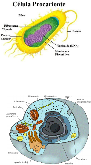 FISIOLOGIA E ESTRUTURA CELULAR O que é uma célula? A palavra “célula” é um diminutivo do termo “cela”, que designa um compartimento (como as células de uma prisão ou de um mosteiro). . Os dois tipos celulares Fundamentais Célula Procariótica: do grego “protos”, primitivo, e “karyon”, núcleo. São mais simples e seu citoplasma não tem estrutura membranosa nem núcleo;“cromossomo” bacteriano concentra-se em uma região da célula chamada nucleoide. Célula Eucariótica: do grego “eu” verdadeiro, e “karyon” núcleo. Tem citoplasma repleto de canais, bolsas e outras estruturas membranosas, sendo uma delas o núcleo, onde se localizam os cromossomos. ESTRUTURA BÁSICA DAS CÉLULAS MENBRANAS BIOLÓGICAS Todas as células, sejam elas procarióticas ou eucarióticas, possuem uma membrana plasmática, que é uma fina película, de natureza lipoproteica, que separam o meio interno da célula do ambiente externo. Essa membrana delimita e confere forma a célula; A microscopia eletrônica revelou também que o citoplasma de uma célula eucariótica é repleto de membranas, com espessura e composição química semelhante a membrana plasmática. A membrana plasmática também determina, de forma seletiva o que pode ou não entrar ou sair da célula -> Permeabilidade seletiva. ESTRUTURA MOLECULAR DAS BIOMENBRANAS Analises bioquímicas de biomembranas isoladas mostraram que os fosfolipídios são seus principais componentes. As membranas plasmáticas das células animais apresentam também o colesterol, um tipo de lipídio ausente em células vegetais. As moléculas de fosfolipídios podem ser descritas como tendo uma “cabeça” eletricamente carregada, representada pelo grupo fosfato, e duas “caudas” apolares, representadas pelo glicerídeo. As cabeças eletricamente carregadas dos fosfolipídios tendem atrair moléculas de agua (que também tem cargas), sendo por isso denominadas hidrofílicas ( do grego hydro, agua, e phylos, amigo). As caudas, sem carga elétrica, tendem a repelir moléculas de água, sendo por isso denominadas hidrofóbicas ( do grego hydro, agua, e phobos, medo, aversão). Em 1972, os pesquisadores estadunidenses Jonathan Singer e Garth Nicolson, com base na constituição química e no comportamento das biomembranas, elaboraram um modelo molecular para explicar sua estrutura altamente dinâmica. Os fosfolipídios da biomembranas, no modelo de Singer e Nicholson, estão com as cabeças, eletricamente carregadas, voltadas para as faces externas à célula. Com isso “escondem” suas caldas sem carga elétrica da água circundante, voltando-as para o interior da bicamada molecular da membrana. Segundo o modelo, é essa estrutura que confere às membranas biológicas estabilidade e dinamismo. Embora se desloquem continuamente no plano da membrana, as moléculas de fosfolipídios nunca perdem o contato umas com as outras. O modelo de Singer e Nicholson completa-se com a presença de moléculas globulares de proteínas, incrustadas na bicamada de fosfolipídios como se fossem peças de um mosaico. Algumas estão em posição superficial enquanto outras atravessam de lado a lado. A movimentação das proteínas na biomembranas permite o desempenho de diversas funções importantes e levou Singer e Nicholson a dar seu nome de modelo mosaico fluido. BIOMEMBRANAS E PERMEABILIDADE CELULAR A manutenção da vida depende do continuo intercambio de substancias entre o meio extracelular e o citoplasma através da membrana plasmática. A entrada e a saída das substancias das células constituem a permeabilidade celular, também conhecida como permeabilidade seletiva. Certas substancias atravessam a membrana plasmática espontaneamente, sem gasto de energia pela célula, o que se denomina transporte passivo. Outras substancias no entanto, precisam ser “bombeadas” para dentro ou para fora da célula em processos que consomem energia e, por isso, classificados como transporte ativo. Transporte passivo: difusão e osmose Difusão Moléculas de água, certos tipos de íons e pequenas moléculas hidrossolúveis passam facilmente através da membrana sem que haja gasto de energia pela célula. Esse processo depende apenas da diferença de concentração de moléculas ou íons difusíveis dentro e fora da célula. Algumas proteínas presentes na membrana plasmática, chamadas genericamente de permeases, são capazes de facilitar o ingresso de certas moléculas na célula. Elas atuam como transportadoras, capturando substancia na face externa e liberando-as na face oposta. Esse transporte pelas permeases obedece às mesmas regras da difusão. Se determinada substancia está mais concentrada no meio externo, sua tendência natural é entrar na célula, onde sua concentração é menor. Como as proteínas transportadoras apenas facilitam esse ingresso e a célula não gasta energia, esse processo passivo de transporte é denominado difusão facilitada. Osmose É um tipo de difusão diferencial de água através de uma membrana semipermeável (que deixa passar apenas moléculas de solvente) que separa duas soluções com diferentes concentrações em solutos. A água tende a se difundir para a região de maior concentração de solutos. O citoplasma é uma solução aquosa, ou seja, uma solução em que o solvente é agua. Moléculas solúveis em água presentes no citosol e nas bolsas citoplasmáticas (glicídios, proteínas, sais minerais e etc). são os solutos. Quando uma célula é mergulhada em água pura, a concentração externa desse solvente é sempre maior do que encontrada no interior da célula, onde a água divide o espaço com as moléculas de soluto. Consequentemente, a água tende a se difundir em maior quantidade para dentro da célula, fazendo-a inchar. As moléculas de água são capazes de atravessar a membrana com facilidade, o que não ocorre com a maioria dos solutos. E se uma célula é colocada em um meio concentrado de solutos a