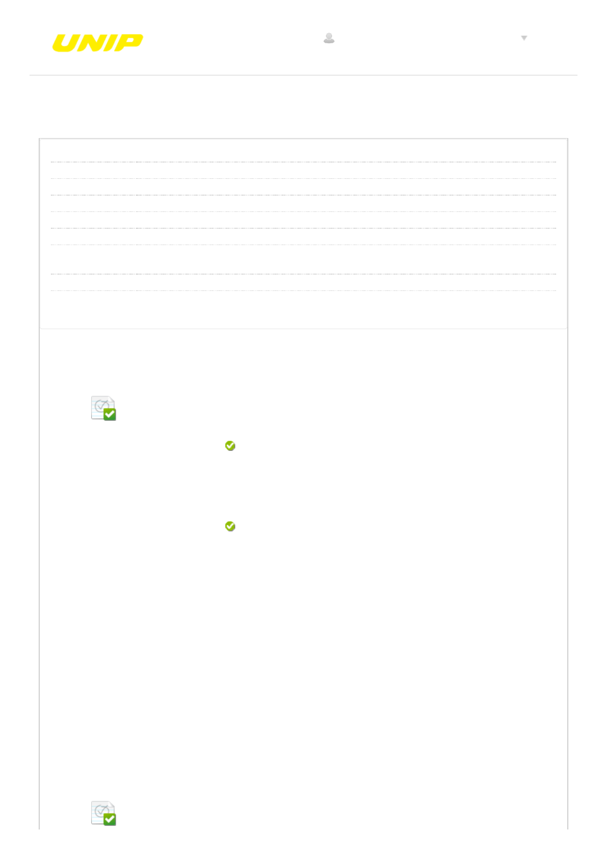 03/05/2018 Revisar envio do teste: QUESTIONÁRIO UNIDADE IV – 3062-... https://ava.ead.unip.br/webapps/assessment/review/review.jsp?attempt_id=_3836732_1&course_id=_12730_1&content_id=_204569_1&return_content=1&step= Revisar envio do teste: QUESTIONÁRIO UNIDADE IV Organização de Computadores 3062-60_57501_R_20181 CONTEÚDO Usuário gustavo.ferreira14 @unipinterativa.edu.br Curso Organização de Computadores Teste QUESTIONÁRIO UNIDADE IV Iniciado 03/05/18 11:23 Enviado 03/05/18 11:27 Status Completada Resultado da tentativa 2,5 em 2,5 pontos Tempo decorrido 3 minutos Resultados exibidos Todas as respostas, Respostas enviadas, Respostas corretas, Comentários, Perguntas respondidas incorretamente Pergunta 1 Resposta Selecionada: d. Respostas: a. b. c. d. e. Feedback da resposta: Considerando o menor número de portas lógicas, quantas serão necessárias para implementar a função lógica S = (A . B) + (C . D) + (E . F)? 4 1 2 3 4 5 Resposta: "D" Comentário: São necessárias 3 portas OR e uma porta AND que receba como entrada as saídas das portas OR. Pergunta 2 Quais são as portas lógicas que compõe a porta lógica XOR? CONTEÚDOS ACADÊMICOS BIBLIOTECAS MURAL DO ALUNO TUTORIAISUNIP EAD 0,25 em 0,25 pontos 0,25 em 0,25 pontos gustavo.ferreira14 @unipinterativa.ed... 3 03/05/2018 Revisar envio do teste: QUESTIONÁRIO UNIDADE IV – 3062-... https://ava.ead.unip.br/webapps/assessment/review/review.jsp?attempt_id=_3836732_1&course_id=_12730_1&content_id=_204569_1&return_content=1&step= Resposta Selecionada: b. Respostas: a. b. c. d. e. Feedback da resposta: AND, NOT e OR AND, NAND e OR AND, NOT e OR NAND, NOR e OR OR e NAND NOT e NAND Resposta correta: "B" Comentário: A porta XOR internamente é composta por duas portas NOT, duas NAND e um OR. Pergunta 3 Resposta Selecionada: c. Respostas: a. b. c. d. e. Feedback da resposta: Qual das funções operadas por uma das portas lógicas utilizadas nos sistemas computacionais se assemelha à operação aritmética da multiplicação? Função lógica AND Função lógica NAND Função lógica NOR Função lógica AND Função lógica OR Função lógica XOR Resposta correta: "C" Comentário: A função lógica AND se assemelha a função aritmética da multiplicação, onde o resultado da saída na tabela verdade só retorna o valor binário 1 quando todas as entradas estiverem no nível lógico 1. Pergunta 4 Sobre a porta lógica XOR é incorreto a�rmar que: 0,25 em 0,25 pontos 0,25 em 0,25 pontos 03/05/2018 Revisar envio do teste: QUESTIONÁRIO UNIDADE IV – 3062-... https://ava.ead.unip.br/webapps/assessment/review/review.jsp?attempt_id=_3836732_1&course_id=_12730_1&content_id=_204569_1&return_content=1&step= Resposta Selecionada: d. Respostas: a. b. c. d. e. Feedback da resposta: Somente pode ser implementada em duas entradas. É Implementada a partir de mais de duas portas lógicas. Possui uma saída com nível lógico 1 caso uma das entradas tenha o nível lógico 1. Utiliza portas inversoras em sua implementação. Somente pode ser implementada em duas entradas. Implementa uma função conhecida como OU EXCLUSIVO. Resposta correta: "D" Comentário: Com exceção da função NOT (inversora), todas as outras portas podem ter duas ou mais entradas. Pergunta 5 Resposta Selecionada: e. Respostas: a. b. c. d. e. Feedback da resposta: Sobre o barramento ISA é incorreto a�rmar que: Era voltado para área grá�ca. Surgiu com o PC da IBM. Trabalhava com 8 bits. Trabalhava com 16 MB/s. Era baseado no processador 8088. Era voltado para área grá�ca. Resposta correta: "E" Comentário: O barramento voltado para área grá�ca, ou seja, os slots são para utilização de placa de vídeo é o AGP. O barramento ISA é mais antigo baseado no processador 8088. Pergunta 6 0,25 em 0,25 pontos 0,25 em 0,25 pontos 03/05/2018 Revisar envio do teste: QUESTIONÁRIO UNIDADE IV – 3062-... https://ava.ead.unip.br/webapps/assessment/review/review.jsp?attempt_id=_3836732_1&course_id=_12730_1&content_id=_204569_1&return_content=1&step= Resposta Selecionada: c. Respostas: a. b. c. d. e. Feedback da resposta: Sobre o processo de evolução dos barramentos é correto a�rmar que: O barramento PCI substituiu o ISA. O barramento PCI-EX é uma evolução do PCI de 64 bits com transmissão de 512 MB/s. O barramento AGP começou a trabalhar com 16 bits, podendo transmitir até 133 MB/s. O barramento PCI substituiu o ISA. A tecnologia USB não é compatível com todos os computadores. A USB 2.0 evoluiu para 600 MB/s. Resposta: "C" Comentário: O barramento PCI substituiu o ISA em na década de 1990 e contava com 32 bits e possuía um slot menor que o ISA. Pergunta 7 Resposta Selecionada: e. Respostas: a. b. c. d. e. Feedback da resposta: Sobre os circuitos lógicos utilizados no nível da lógica digital é incorreto a�rmar que: Os multiplexadores são um tipo de circuito digital aritmético. As portas lógicas são elementos básicos para construção dos circuitos digitais. Sistemas computacionais são construídos a partir dos circuitos digitais. Os circuitos digitais podem ser combinacionais e aritméticos. As memórias são construídas a partir de �ip-�ops e latches. Os multiplexadores são um tipo de circuito digital aritmético. Comentário: Correta (E) Os multiplexadores são circuitos digitais combinacionais implementados através de portas lógicas, que tem a função de selecionar uma entrada a partir de sinais de controle. 0,25 em 0,25 pontos 03/05/2018 Revisar envio do teste: QUESTIONÁRIO UNIDADE IV – 3062-... https://ava.ead.unip.br/webapps/assessment/review/review.jsp?attempt_id=_3836732_1&course_id=_12730_1&content_id=_204569_1&return_content=1&step= Pergunta 8 Resposta Selecionada: c. Respostas: a. b. c. d. e. Feedback da resposta: Sobre os conceitos de barramento é incorreto a�rmar que: Os barramentos externos são aqueles que somente interligam o sistema computacional a periféricos. É o caminho elétrico que faz a liga