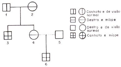 Instituto Federal de Educação, Ciência e Tecnologia do Acre Genética Animal. Lista de Exercícios 1) Na espécie humana, a fenilcetonúria é condicionada por um gene autossômico recessivo, enquanto a polidactilia é devida a um gene autossômico dominante. Uma mulher normal para a fenilcetonúria e não polidáctila casa-se com um homem normal para a fenilcetonúria, mas polidáctilo. O casal tem uma filha com fenilcetonúria e não polidáctila. A probabilidade de esse casal ter uma criança normal para a fenilcetonúria, e não polidáctila, é de: a) ¾ b) ½ c) 3/8 d) 1/16 e)2/3 2) Um homem daltônico e com pigmentação normal se casa com uma mulher de visão normal e albina. A primeira criança desse casal é uma menina daltônica e albina. Sabendo que o daltonismo é devido a um gene recessivo ligado ao sexo e que o albinismo é devido a um gene autossômico recessivo, a probabilidade de esse casal ter uma criança de sexo masculino normal para as duas características é a) 1/8 . b) 1/6 . c) 3/4 d) 1/2. e) ¼ 3) 3) Um casal apresenta a seguinte constituição genética: o marido é albino e normal para o daltonismo e a mulher é heterozigota para os dois loci. A probabilidade de nascer, deste casal, um filho do sexo masculino, de fenótipo completamente normal, é: a) 100% b) 12,5% c) 37,5% d) nula 4). Sabendo-se que a miopia e o uso da mão esquerda são condicionados por genes autossômicos recessivos, considere a genealogia a seguir. Assinale a alternativa correta. a) O indivíduo 2 deve ser heterozigoto para os alelos dessas duas características. b) O indivíduo 3 deve ter herdado os alelos dessas duas características apenas de sua mãe. c) A probabilidade de o casal 1 x 2 ter uma criança destra e de visão normal é de 1/4. d) Todos os descendentes de pai míope e canhoto possuem essas características. e) A probabilidade de o casal 4 x 5 ter uma criança míope e canhota é de 3/8. 5) Na espécie humana, a habilidade para o uso da mão direita é condicionada pelo gene dominante E, sendo a habilidade para o uso da mão esquerda devida a seu alelo recessivo e. A sensibilidade à feniltiocarbamida (PTC) é condicionada pelo gene dominante I, e a insensibilidade a essa substância é devida a seu alelo recessivo i. Esses dois pares de alelos apresentam segregação independente. Um homem canhoto e sensível ao PTC, cujo pai era insensível, casa-se com uma mulher destra, sensível, cuja mãe era canhota e insensível. A probabilidade de esse casal vir a ter uma criança canhota e sensível ao PTC é de: a) 3/4. b) 3/8. c) 1/4. d) 3/16. e) 1/8. 6) . Nos bovinos a cor da pelagem é controlada por um gene representado por 2 alelos; o alelo Dominante B confere o fenótipo preto e branco, e o alelo recessivo b, vermelho e branco. A presença de chifres é também controlada por um gene representado por 2 alelos, sendo o alelo dominante M responsável pela ausência de chifres (mocho) e o alelo recessivo m, pela presença de chifres. Um touro heterozigótico para os dois genes foi cruzado com vacas também heterozigóticas para ambos os genes. A frequência esperada de animais vermelho e branco e com chifres na descendência F1 (primeira) será de: a)1/4 b)1/2 c) 1/64 d) 1/8 e) 1/6 7) O pelo dos porquinhos da Índia é determinado por um gene dominante B e o pelo branco pelo seu alelo recessivo b. Suponha que II.1 e II.4 não sejam portadores de alelos recessivos. Calcule a probabilidade de um descendente de III.1x III.2 apresentar pelos brancos.