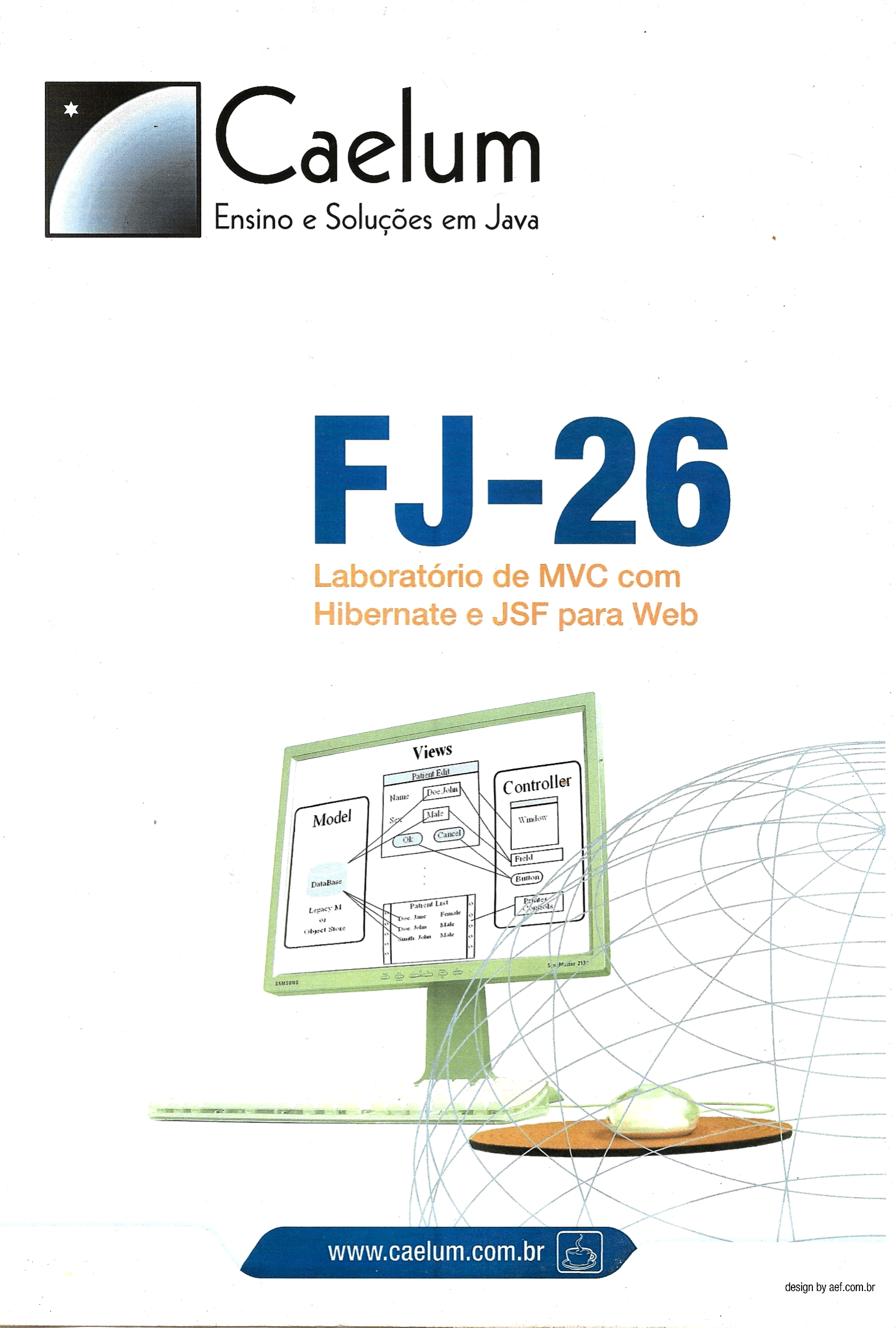 Índice 1. Como aprender Java 1.1 Falando em Java 1.2 O que é realmente importante? 1.3 Sobre os exercícios 1.4 Tirando dúvidas 1.5 Sobre o curso 1.6 Sobre os autores 1.7 Versão da apostila 2. Apache Derby 2.1 Apresentando o Apache Derby 2.2 Exercícios 2.3 O que é um servidor embutido? 2.4 Criando um banco 2.5 Exercícios 2.6 Utilizando o Squirrel 2.7 Exercícios 2.8 Executando uma query 2.9 Usando um BD 100% Java em produção? 2.10 Limitações do Derby com Hibernate 2.11 Exercícios 3. Hibernate básico 3.1 Hibernate 3.2 Baixando na internet 3.3 Anotações, EJB3 e Persistence API 3.4 Criando a classe Funcionario 3.5 Exercícios 3.6 Configurando o Hibernate 3.7 Exercícios 3.8 Gerando as tabelas 3.9 Exercícios 3.10 Geradores de chave primária 3.11 Exercícios 3.12 Inserindo novos objetos 3.13 Exercícios 3.14 O que faz o método save 3.15 Buscando um objeto pela chave primária 3.16 Exercícios 3.17 Exercícios adicionais 3.18 EntityManager 4. Conta a pagar e Fornecedor 4.1 Nosso sistema de contas a pagar 4.2 Exercícios 4.3 Data e hora 4.4 Relacionamentos 4.5 Exercício 4.6 Gerando o banco 4.7 Criando alguns objetos 4.8 Exercícios 4.9 Recuperando uma relação 4.10 Exercícios 5. Alguns detalhes importantes 5.1 Analogias das operações básicas 5.2 Durante uma sessão 5.3 Load, Get e Lazyness 5.4 Configurando melhor o schema 5.5 Campos não gravados no banco de dados 5.6 Chaves primárias 5.7 Exercícios 6. Data Access Object - DAO 6.1 HibernateUtil 6.2 Exercícios 6.3 Data Access Object 6.4 Exercícios 6.5 DAO específico 6.6 Exercícios 6.7 Outras opções de DAO 6.8 Para saber mais 7. Criteria API 7.1 Criando uma pesquisa orientada a objetos 7.2 Exercícios 7.3 Ordenando resultados 7.4 Exercícios 7.5 Restrição "e" Restrição 7.6 Restrição "ou" Restrição 7.7 Exercícios 7.8 Contando Linhas com Projection 7.9 Exercícios 7.10 Média 7.11 Exercícios 7.12 Soma 7.13 Exercícios 7.14 Métodos úteis 7.15 Criterias avançadas 7.16 Dificuldades 7.17 Exercícios 8. Hibernate Query Language 8.1 Outra maneira de realizar queries 8.2 Um query equivale a um Criteria 8.3 Joins e produtos cartesianos 8.4 Critérios de Busca 8.5 Outros métodos 8.6 Exercícios 9. Relacionamentos 9.1 Relacionamento inverso ContaPagar X Fornecedor 9.2 Ordenando 9.3 Lazyness 9.4 Tabela associativa 9.5 Relacionamento muitos para muitos 9.6 Exercícios 10. Detalhes de um projeto real 10.1 SchemaUpdate 10.2 Connection Pool 10.3 Pool de prepared statements 10.4 Queries nativas e ResultTransformer 10.5 Cache de segundo nível (second level cache) 10.6 Estatísticas 10.7 Outro banco de dados 10.8 Exercícios 11. Criando nosso projeto web 11.1 Requerimentos 11.2 Instalando o Tomcat e preparando o Eclipse 11.3 Novo projeto 11.4 Configurando no Tomcat 11.5 Erros comuns 11.6 web.xml 11.7 Configurando o Amateras 11.8 Verificando se tudo ocorreu normalmente 11.9 Em casa: configurando o Tomcat sem o plugin 12. JavaServer Faces 12.1 Motivação: http stateless 12.2 Motivação: Swing, Visual Basic e Delphi 12.3 Como JSF resolve isso 12.4 JavaServer Faces 12.5 Exercícios 13. Managed Beans 13.1 Managed Beans - lógica de negócios 13.2 Exercícios 13.3 Session e Application 14. Um pouco de teoria 14.1 O que o JSF faz? 14.2 Phases 14.3 Árvore de componentes 14.4 Feramentas Drag and Drop 14.5 Inúmeros componentes 14.6 O web.xml gerado pelo Amateras 14.7 Exercícios 14.8 Hot code replace do Tomcat 15. Lógica de negócios 15.1 Managed Beans - lógica de negócios 15.2 Exercícios 16. Navegação 16.1 Assim como no Struts e WebWork 16.2 Exercícios 17. Componentes 17.1 Inúmeros componentes 17.2 A lógica para lidar com fornecedores e contas 17.3 A página de resultado 17.4 Exercício 17.5 Mostrando tabelas em JSF 17.6 Exercícios 17.7 Visualizando um fornecedor para alteração 17.8 Lógica para visualização 17.9 Mais ActionListeners e ValueChangeListener 17.10 Exercícios 17.11 Como funciona 17.12 Exercícios opcionais 18. Validação de campos 18.1 Campos obrigatórios 18.2 Exercícios 18.3 Mensagem de erro 18.4 Exercícios 18.5 Outras validações 18.6 Immediate 18.7 Exercícios 18.8 Alterado as mensagens de erro 18.9 Exercícios 18.10 Outros validadores 18.11 Mais informações sobre taglibs 18.12 Exercícios opcionais 18.13 Validadores e mensagens 18.14 Criando seu validador 19. Internacionalização 19.1 Resource bundles 19.2 Exercícios 20. Tomahawk 20.1 Tomahawk 20.2 Exercícios 21. Completando a camada visual da aplicação 21.1 Utilizando Tabs 21.2 Exercício 21.3 ContaPagarHandler e ContaPagar 21.4 Exercício 21.5 Combo box 21.6 Pegando a referência de um managed bean 21.7 Exercício 21.8 Checkbox 21.9 Exercício 21.10 Recuperando o item selecionado no combobox e botão de salvar 21.11 Exercício 21.12 Tomahawk datalist - um forEach? 21.13 Exercícios 21.14 Exercícios opcionais 22. Integrando o model: preparando o ambiente 22.1 Exercício: preparando nosso projeto para o Hibernate 22.2 Política de aquisição de sessions: Open Session in View 22.3 Exercício 22.4 Configurando nossas entidades 22.5 Exercício 22.6 Gerando o banco 22.7 Exercícios 23. Integrando o model: lógica de negócios 23.1 DAO 23.2 Exercícios 23.3 FornecedorHandler 23.4 Exercícios 23.5 ContaPagarHandler 23.6 Exercícios 23.7 Exercícios opcionais 24. Ajax 24.1 AJAX - Asynchronous JavaScript and XML 24.2 Componentes sandbox da Apache 24.3 Exercícios 24.4 Buscando sugestões que façam sentido 24.5 Exercícios 25. Gráficos com o JFreeChart 25.1 JFreeChart 25.2 Gráfico - Contas por fornecedor 25.3 Na web: Cewolf 25.4 Na web: Servlet 25.5 Exercício opcional: colocaldo o gráfico no sistema 26. Relatórios 26.1 Ireport e JasperReports 26.2 iReport 26.3 Exercício Configurando uma conexão 26.4 Wizard de relatório 26.5 Para gerar o relatório 26.6 Colocando o relatório na web