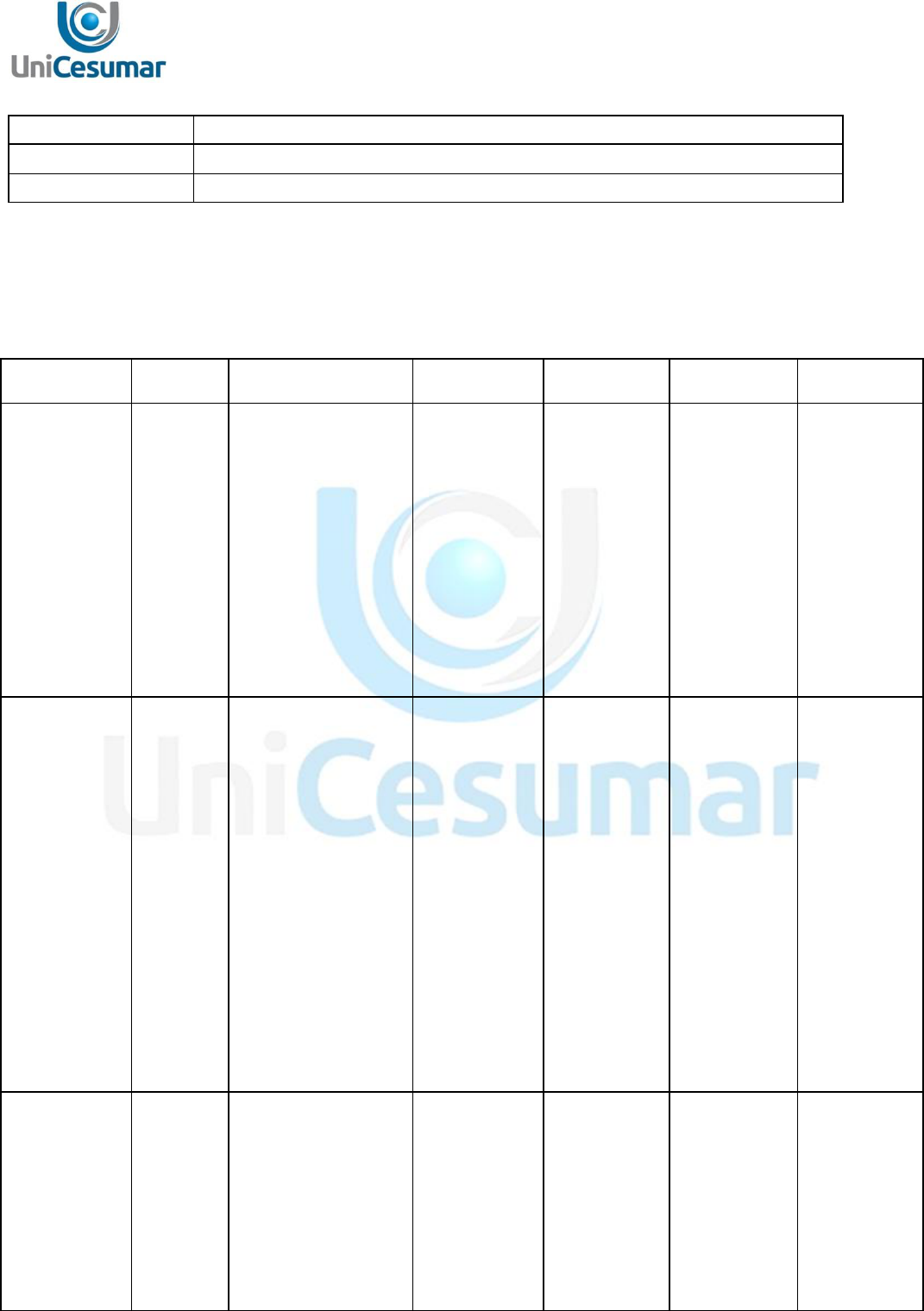 � � � M.A.P.A. Material de Avaliação Prática de Aprendizagem Acadêmico (a): Carmem Steinke Pilato RA : 18122995 Disciplina: Gestão da Qualidade Plano de ação 5W2H para controle de problemas em Delicia de Chocolate O que ? Quem? Onde ? Por quê ? Quando? Como ? Quanto? Atraso na entrega Sr. João Transportadora Sinus Falta de pagamento e organização com datas e entregas dos produtos 30 dezembro 2018 Atualizar os pagamentos em atrasos, realizar nova proposta de agilidade e realizar um novo cronograma entrega do produto Pagamento de 20% para entregas antecipadas e nos horários do cronograma Baixa qualidade de ingredientes adicionais Carlos Setor de compras Na tentativa de economia compra de produtos com qualidade inferior ao que era utilizado imediato Voltar a utilizar os produtos na quantidade certa e da mesma marca com as mesmas especificações que eram utilizadas antigamente Contratar um auxiliar de compras para ajudar a manter o setor organizado e manter a mesma negociação com o fornecedor antigo custo de 30% a mais Falta de informação sobre o produto Vanessa Setor de Qualidade Falta de treinamento e sem instruções e especificações de uso. 30 de janeiro 2019 Atualizar posto de trabalho com IT’s e realizar novos treinamentos com colaboradores 30 horas por mes de treinamentos por 20 dias e após fazer treinamentos contínuos Cor do produto Vanessa Setor de qualidade Mudança de marca do produto imediato Voltar a compras os produtos que eram utilizados e verificar se todos os equipamentos estarão aferidos para não haver alteração na cor e qualidade do produto Custo adicional de R$ 10.000,00 para regulagem e amperagem das maquinas e termômetros. Referência On-Line 1 Em : <http://www.sobreadministracao.com/o-que-e-o-5w2h-e-como-ele-e-utilizado/>. Acesso em: 25 nov. 2018. 2 Em: <https://klickpages.com.br/blog/5w2h-o-que-significa/>. Acesso em: 25 nov. 2018. 3 Em: <https://www.youtube.com/watch?v=LaK1dicNdUI/>. Acesso em: 25 nov. 2018.