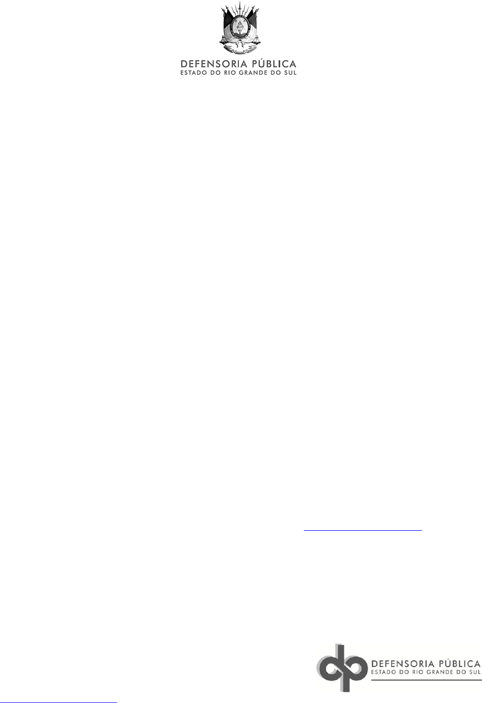 COMISSÃO DE CONCURSO Rua Sete de Setembro, 666 - 5º andar Centro Histórico – Porto Alegre/RS CEP 90.010-190 Fone: 51 3210-9429 rafaela@defensoria.rs.def.br 1 DEFENSORIA PÚBLICA DO ESTADO DO RIO GRANDE DO SUL V CONCURSO PÚBLICO PARA INGRESSO NA CARREIRA DE DEFENSOR PÚBLICO DO ESTADO DO RIO GRANDE DO SUL EDITAL Nº 014/2018 DE DIVULGAÇÃO DO RESULTADO DA PRIMEIRA FASE – PROVA OBJETIVA - RETIFICAÇÃO A COMISSÃO DE CONCURSO, no uso de suas atribuições legais, tendo em vista o Edital nº 004/2018 de Abertura e das Instruções Especiais do V Concurso Público para Ingresso na Carreira de Defensor Público do Estado do Rio Grande do Sul, publicado no Diário Eletrônico da Defensoria no dia 29 de março de 2018, RESOLVE: 1. INFORMAR que em face da análise dos recursos, houve alteração de gabaritos, conforme indicado abaixo. Questão 42 tipo 1 B Questão 42 tipo 2 C Questão 43 tipo 3 C Questão 43 tipo 4 D Questão 44 tipo 5 D Questão 49 tipo 1 D Questão 49 tipo 2 E Questão 50 tipo 3 E Questão 50 tipo 4 A Questão 49 tipo 5 A 1.1 As respostas de todos os recursos serão levadas ao conhecimento de todos os candidatos inscritos no Concurso, por meio do site da Fundação Carlos Chagas (www.concursosfcc.com.br), não tendo qualquer caráter didático, e ficarão disponíveis pelo prazo de 7 (sete) dias a contar da data de sua divulgação. 2. TORNAR PÚBLICA a lista retificada dos candidatos habilitados na Primeira Fase – Prova Objetiva, na ordem de classificação, de acordo com o Capítulo 10 do Edital nº 04/2018 de Abertura de Inscrição, conforme Anexo Único. COMISSÃO DE CONCURSO Rua Sete de Setembro, 666 - 5º andar Centro Histórico – Porto Alegre/RS CEP 90.010-190 Fone: 51 3210-9429 rafaela@defensoria.rs.def.br 2 3. INFORMAR que, a partir da data de publicação deste Edital, os resultados de todos os candidatos que realizaram as provas poderão ser verificados no site da Fundação Carlos Chagas (www.concursosfcc.com.br). 4. INFORMAR que os recursos referentes às questões cujo gabarito foi alterado, bem como à divulgação do resultado da Prova Objetiva deverão ser interpostos nos dias 07, 08 e 09 de agosto, exclusivamente por meio do site da Fundação Carlos Chagas (www.concursosfcc.com.br), de acordo com as instruções constantes na página do Concurso Público. Porto Alegre, 03 de agosto de 2018. RAFAELA CONSALTER Defensora Pública Presidente da Comissão de Concurso COMISSÃO DE CONCURSO Rua Sete de Setembro, 666 - 5º andar Centro Histórico – Porto Alegre/RS CEP 90.010-190 Fone: 51 3210-9429 rafaela@defensoria.rs.def.br 3 ANEXO ÚNICO CANDIDATOS HABILITADOS EM ORDEM DE CLASSIFICAÇÃO (RESULTADO PRELIMINAR DA PRIMEIRA FASE - PROVA OBJETIVA) Legenda: (N) CANDIDATOS NEGROS. Cargo: DEFENSOR PÚBLICO DO ESTADO NÚMERO NOME DOCUMENTO OBJETIVA CLASS 0000980f HELOISA BEVILAQUA DA SILVEIRA 0000000072730542 8.40 1 0002576i LETICIA ALMEIDA DE LA RUE 0000001057466193 8.40 1 0004333d MATHEUS ARTHUR WASKOW 0000003090786546 8.40 1 0003461h GABRIELA DUARTE GONCALVES 0000008091075484 8.30 4 0000624f GUILHERME ALVES CORTES DA FONSECA 0000000264913997 8.30 4 0002963e ANTONIO TREVISAN FREGAPANE 0000004083905705 8.20 6 0002582d MANUELA SILVA GUIMARAES GONCALVES 0000000009059565 8.20 6 0001796g MARCOS BOTTIN 0000000004843623 8.20 6 0002407h RAQUEL FERNANDA TENORIO SECO 000000MG14016891 8.20 6 0003791g THAIS MARIA MARRA CORREA 000000MG15650633 8.20 6 0005030b THALES VIEIRA DOS SANTOS 0000008067624075 8.20 6 0005536a ANA BEATRIZ MEIRELLES DE MIRANDA 0000000231084427 8.10 12 0001787f GUSTAVO SATT CORREA 0000003077266521 8.10 12 0003237c PRISCILLA MIWA KUMODE 0000000088324285 8.10 12 0000662c ALEXANDRE HENRIQUE MOURA CHUPEL 0000000002731315 8.00 15 0004122b DIEGO ISAAC NIGRI 0000000213956915 8.00 15 0004866f GERSON FARIAS GOMES 0000006050214193 8.00 15 0002560e GUSTAVO CARLOS COUTO KNOPP 0000003109249205 8.00 15 0000569b JESSIKA DE LIMA FREIRE 0002005009187318 8.00 15 0005061b JOAO ROBER MELO CIRNE 0000005057270372 8.00 15 0001610k LETICIA SILVEIRA SEERIG 0000001087189633 8.00 15 0000767f PEDRO HENRIQUE PEDRETTI LIMA 0000000222845752 8.00 15 0003797h ANA BEATRIZ XIMENES DE QUEIROGA 0000000003357317 7.90 23 0001521a ANA JULIA SILVA BARBOSA 0000000015924689 7.90 23 0001888a BRUNO FIORIN HERNIG 00000001997132ES 7.90 23 0000912k DANIELA CHIESA 0000009093473362 7.90 23 0003752h ERIC DE MORAES 0000001070412562 7.90 23 0000080c FLAVIO MARTINS RODRIGUES JUNIOR 000000043512707X 7.90 23 0004013h GUILHERME HENRIQUE MARIANI DE SOUZA 0000008094209551 7.90 23 0004377b JESSICA DE SOUSA OLIVEIRA 0000201083420022 7.90 23 0002272k JONAS FERREIRA ANGELO DE DEUS 0000000001294456 7.90 23 0003656a KEDI LETICIA BAGETTI 0000003055008341 7.90 23 0004076j MARIA FERNANDA VIDAL ARELLANO 0000000368740596 7.90 23 0002516b MARIANA FENALTI SALLA 0000001103222749 7.90 23 0002828j PAULA GUERRERO MOYSES 0000001090613439 7.90 23 0000351h PAULA PEDROSO MENDONCA 0000000013147249 7.90 23 0003975f RODRIGO ANTOLA AITA 0000005101682473 7.90 23 0000177g THIAGO SOTANA PEREIRA 0000000082299190 7.90 23 COMISSÃO DE CONCURSO Rua Sete de Setembro, 666 - 5º andar Centro Histórico – Porto Alegre/RS CEP 90.010-190 Fone: 51 3210-9429 rafaela@defensoria.rs.def.br 4 0002238k THULIO MESQUITA TELES DE CARVALHO 0002008010154627 7.90 23 0000718d VICTOR REGO 0000000478511589 7.90 23 0005584a WALTER IANNONE TARCHA 0000000463615396 7.90 23 0002783c ANA LUIZA SARQUIS BOTREL 0000000013616240 7.80 42 0002064d ANDREIA REZENDE TINANO 000000MG14497952 7.80 42 0001465f CAMILA BRISTOT DE CARVALHO BROCCA 0000000004491577 7.80 42 0003807g CAROLINA VICENTE BISOGNIN 0000002074580776 7.80 42 0001114j CERES DE OLIVEIRA DANCKWARDT 0000006100588398 7.80 42 0002434k DANIELLE CASTANHEIRA DE OLIVEIRA 0000000257721696 7.80 42 0002075i FELIPE JOSE DA SILVA ALVES 000000MG11459604 7.80 42 0003525h FERNANDO MAICON PRADO TASCHETTO 0000006100562799 7.80 42 0000514j JOSE SANTOS FERNANDES 0000004094924281 7.80 42 0003068f PEDRO HENRIQUE LAMY BASILIO 00