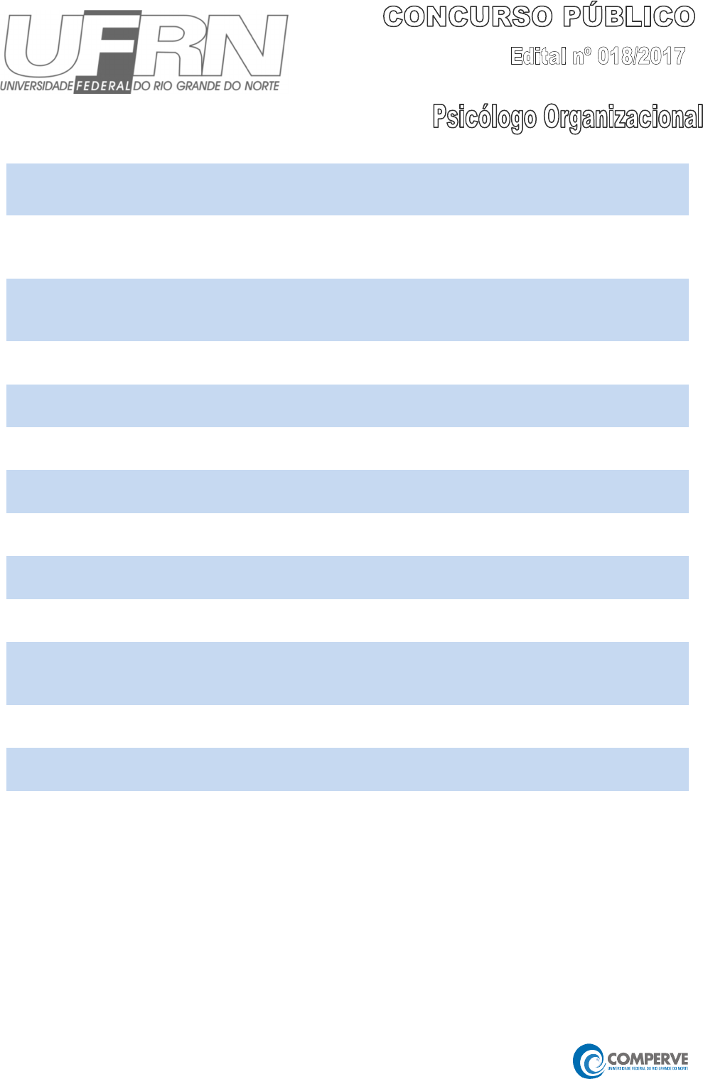 Concurso Público UFRN � Seleção 2017.2. O pranto é que apaga o brilho (Auta de Souza) Leia estas instruções: 1 Confira se os dados contidos na parte inferior desta capa estão corretos e, em seguida, assine no espaço reservado. 2 Este Caderno contém, respectivamente, uma proposta de Redação e 50 questões de múltipla escolha, assim distribuídas: 01 a 10 � Língua Portuguesa; 11 a 20 � Legislação; 21 a 50 � Conhecimentos Específicos. 3 Quando o Fiscal autorizar, verifique se o Caderno está completo e sem imperfeições gráficas que impeçam a leitura. Detectado algum problema, comunique-o, imediatamente, ao Fiscal. 4 A Redação será avaliada considerando-se apenas o que estiver escrito no espaço reservado para o texto definitivo na Folha de Redação fornecida pela Comperve. 5 Escreva de modo legível, pois dúvida gerada por grafia ou rasura implicará redução de pontos. 6 Cada questão de múltipla escolha apresenta quatro opções de resposta, das quais apenas uma é correta. 7 Interpretar as questões faz parte da avaliação, portanto não adianta pedir esclarecimentos aos fiscais. 8 A Comperve recomenda o uso de caneta esferográfica de tinta preta, fabricada em material transparente. 9 Utilize qualquer espaço em branco deste Caderno para rascunhos e não destaque nenhuma folha. 10 Os rascunhos e as marcações que você fizer neste Caderno não serão considerados para efeito de avaliação. 11 Você dispõe de, no máximo, quatro horas e trinta minutos para redigir o texto definitivo na Folha de Redação, responder às questões e preencher a Folha de Respostas. 12 O preenchimento da Folha de Respostas e da Folha de Redação é de sua inteira responsabilidade. 13 Antes de se retirar definitivamente da sala, devolva ao Fiscal este Caderno, a Folha de Respostas e a Folha de Redação. _________________________________________________________________________________ Assinatura do Candidato: ____________________________________________________________________ Concurso Público UFRN � Seleção 2017.2 � Psicólogo Organizacional 1 Prova de Redação Em 2016, o Supremo Tribunal Federal (STF) decidiu que “A Administração Pública deve proceder ao desconto dos dias de paralisação decorrente do exercício do direito de greve pelos servidores públicos, em virtude da suspensão do vínculo funcional que dela decorre, permitida a compensação em caso de acordo”. O desconto nos salários seria possível mesmo antes de a Justiça estabelecer se a paralisação seria ilegal. PROPOSTA DE REDAÇÃO Colocando-se na posição de cidadão brasileiro, escreva uma carta aberta à Presidente do STF manifestando seu posicionamento sobre o desconto dos dias de paralisação decorrente do exercício do direito de greve. INSTRUÇÕES Sua carta deverá, obrigatoriamente, atender as seguintes exigências: • ser redigida no espaço destinado à versão definitiva na Folha de Redação; • apresentar, explicitamente, um ponto de vista fundamentado em, no mínimo, dois argumentos; • ser redigida na variedade padrão da língua portuguesa; • não ser escrita em versos; • conter, no máximo, 40 linhas; • respeitar as normas de citação de textos; • não ser assinada (nem mesmo com pseudônimo). ATENÇÃO Será atribuída NOTA ZERO à redação em qualquer um dos seguintes casos: • texto com até 14 linhas; • fuga ao tema ou à proposta; • letra ilegível; • identificação do candidato (nome, assinatura ou pseudônimo); • texto que revele desrespeito aos direitos humanos ou que seja ofensivo. 2 Concurso Público UFRN � Seleção 2017.2 � Psicólogo Organizacional Concurso Público UFRN � Seleção 2017.2 � Psicólogo Organizacional 3 RASCUNHO 1 2 3 4 5 6 7 8 9 10 11 12 13 14 15 16 17 18 19 20 21 22 23 24 4 Concurso Público UFRN � Seleção 2017.2 � Psicólogo Organizacional 25 26 27 28 29 30 31 32 33 34 35 36 37 38 39 40 (NÃO ASSINE O TEXTO) Concurso Público UFRN � Seleção 2017.2 � Psicólogo Organizacional 5 Língua Portuguesa 01 a 10 As questões de número 01 a 10 referem-se ao texto abaixo. MOÇA BONITA NÃO PAGA? Maíra Zapater Em junho de 2017, uma juíza do Distrito Federal, ao julgar uma ação proposta por um homem contra os organizadores de uma festa que cobrava preços diferentes para os ingressos de homens e mulheres, declarou ser ilegal a prática. À decisão, seguiu-se agora, em julho, nota técnica da Secretaria Nacional do Consumidor do Ministério da Justiça reafirmando a ilegalidade da cobrança diferenciada e ressaltando que os estabelecimentos que não se adaptassem estariam sujeitos às sanções previstas no artigo 56 do Código de Defesa do Consumidor. Ambas as determinações geraram polêmica (aliás, como parece acontecer com tudo – ou quase tudo – que envolva demandas feministas relacionadas à desigualdade de gênero). Se até então eram frequentes, nas conversas de bar travadas tanto nas mesas quanto nas redes sociais, afirmações tais como “nunca vi feminista reclamar na hora de entrar de graça ou pagar mais barato na balada!” (em geral proferida com sua gêmea siamesa “na hora de pedir serviço militar obrigatório, as feministas ficam quietas”), agora parece que o jogo virou, e os críticos preferem manifestar sua indignação dizendo que “as feministas querem impor sua ideologia pra todo mundo e obrigar as mulheres a pagarem mais caro na balada”, “vai acabar balada”, “nunca mais ninguém vai sair pra night”, “ninguém vai pegar mais ninguém”, “as feministas vão fazer fechar as casas noturnas” e por aí vai. Piadas à parte, e sem entrar no mérito da (in)coerência das críticas, quero, na coluna de hoje, contribuir com argumentos para a discussão, sugerindo duas perguntas para, juntos, pensarmos sobre o assunto. Parece-me ser relevante refletir sobre dois aspectos: primeiro, é discriminatório cobrar preços diferentes para homens e mulheres na balad