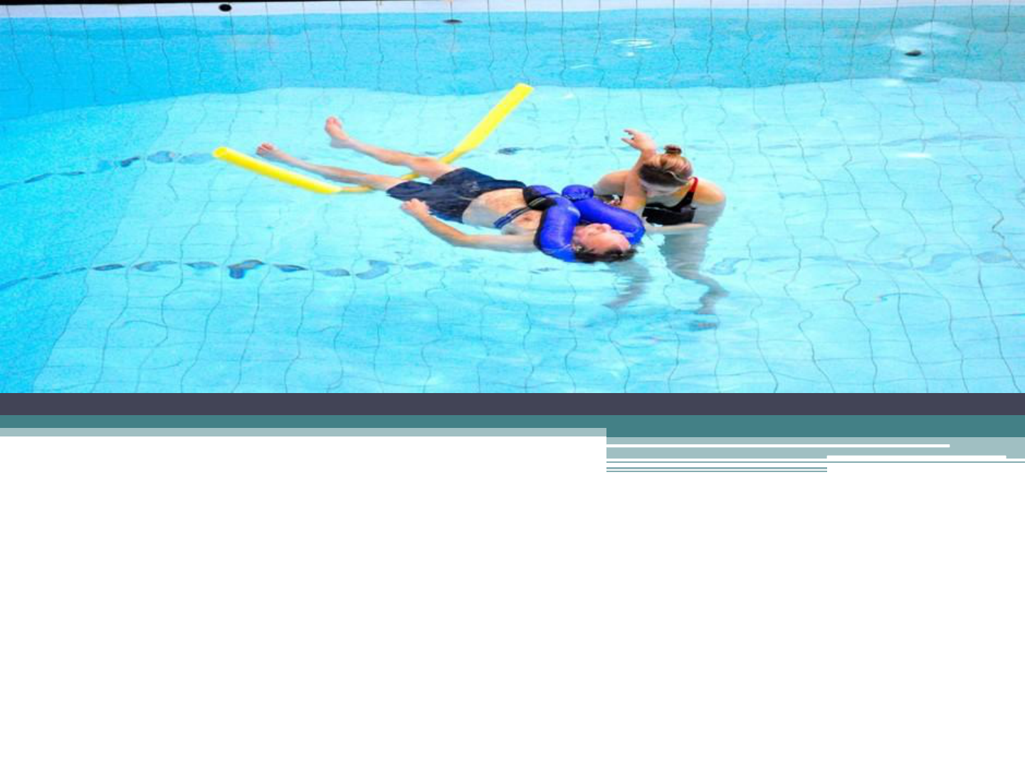 FISIOTERAPIA AQUÁTICA FUNCIONAL EM PACIENTES COM LESÃO MEDULAR LESÃO MEDULAR A lesão medular (LM) constitui-se numa grave síndrome incapacitante que pode acarretar alterações de motricidade, sensibilidade, distúrbios neurovegetativos, alterações esfincterianas e, ainda, repercussões psicológicas, entre outras; As causas traumáticas como acidente de trânsito, mergulho, quedas, ferimento por armas de fogo e traumas do esporte são as mais comuns, por isso, geralmente o perfil do paciente com lesão medular é o adulto jovem do sexo masculino. QUADRO CLÍNICO ESPASTICIDADE Os pacientes que apresentam lesão medular acima do cone medular, portanto, lesão de motoneurônio superior, clinicamente apresentam, depois de superada a fase de choque medular, hiperreflexia dos reflexos miotendinosos associada ao aumento do tônus muscular, caracterizando espasticidade. QUADRO CLÍNICO ALTERAÇÕES RESPIRATÓRIAS Nos pacientes que apresentam lesões cervicais e/ou torácicas altas por paralisia da musculatura acessória da respiração, pode ocorrer insuficiência respiratória restritiva, sendo necessário muitas vezes o uso de pressões positivas na fase aguda. Nos pacientes com lesão acima de C4 ocorre paralisia diafragmática, necessitando de assistência ventilatória constante. QUADRO CLÍNICO ALTERAÇÕES VESICAIS As repercussões urológicas estão entre as maiores preocupações dos médicos fisiatra e urologista, pois o mau funcionamento vesical pode, quando assistido inadequadamente acarretar complicações que vão desde a infecção urinária, cálculos vesicais, até fistulas peno- escrotais, refluxo vésico- ureteral e hidronefrose com consequente perda da função renal. QUADRO CLÍNICO O funcionamento vesical vai comportar-se do seguinte modo: Lesões de motoneurônio superior Lesão de motoneurônio completa Lesão de motoneurônio incompleta- sensitiva QUADRO CLÍNICO ALTERAÇÕES INTESTINAIS Também como efeito da lesão medular há diminuição do peristaltismo acompanhada de tendência à retenção fecal. QUADRO CLÍNICO ALTERAÇÕES VASCULARES E NEUROVEGETATIVAS Desde a fase aguda, os pacientes portadores de lesão medular apresentam alterações vasomotoras que podem acarretar algumas complicações. QUADRO CLÍNICO ALTERAÇÕES NA FUNÇÃO SEXUAL Assim como ocorrem alterações esfincterianas, também ocorrem alterações sexuais nos pacientes portadores de lesão medular. QUADRO CLÍNICO DOR NA LESÃO MEDULAR Os pacientes portadores de lesão medular podem apresentar quadros dolorosos que devem ser muito bem caracterizados pela equipe que os está acompanhando para que o diagnóstico etiológico e o tratamento instituído sejam adequados e bem- sucedidos. QUADRO CLÍNICO ALTERAÇÃO HETEROTÓPICA E ÚLCERAS POR PRESSÃO A ossificação heterotópica é uma complicação que pode ocorrer, em geral, do primeiro mês ao primeiro ano pós-lesão com pico de incidência no quarto mês pós lesão. As úlceras de pressão são complicações de alta morbidade. Geralmente ocorrem em regiões de saliência óssea, em pacientes sem sensibilidade preservada e que permanecem por muito tempo na mesma posição. QUADRO CLÍNICO Quanto ao grau e abordagem terapêutica, as úlceras são classificadas em: Grau 1 Grau 2 Grau 3 Grau 4 Úlcera “fechada” QUADRO CLÍNICO REPERCUSSÕES PSICOLÓGICAS A repercussão do ponto de vista psicológico irá também depender do perfil prévio, das estratégias de enfrentamento e dos antecedentes socioculturais do pacientes. BENEFÍCIOS DA FISIOTERAPIA AQUÁTICA FORTALECIMENTO E RESISTÊNCIA MUSCULAR Para ganho de força muscular, podemos aumentar a velocidade dos exercícios, criando turbulência e acentuando os efeitos da viscosidade da água contra o membro; utilizamos também resistência manual dosada pelo fisioterapeuta e/ou adicionamos flutuadores ou pesos à extremidade distal. Para resistência muscular, aumentamos o número de repetições, mantendo equivalente carga. BENEFÍCIOS DA FISIOTERAPIA AQUÁTICA AMPLITUDE DE MOVIMENTO Os efeitos das propriedades do meio líquido permitem mobilizar as articulações mais facilmente e com maior conforto, que é decorrente do efeito tridimensional, ganhando e/ou mantendo a ADM. BENEFÍCIOS DA FISIOTERAPIA AQUÁTICA TROCAS POSTURAIS Atividades funcionais como rolar, sentar, transferir-se e permanecer nas posições ajoelhado, semiajoelhado e ortostatismo podem ser praticadas e facilitadas em meio líquido. BENEFÍCIOS DA FISIOTERAPIA AQUÁTICA ORTOSTATISMO O ortostatismo pode ser facilitado pelas propriedades do meio líquido, que suportam o corpo através da coação das moléculas de água. A verticalidade favorece o alongamento dos músculos abdominais, flexores de quadril, flexores de joelho e tríceps sural; melhora as funções viscerais; além de beneficiar a reestruturação da imagem corporal. BENEFÍCIOS DA FISIOTERAPIA AQUÁTICA MARCHA TERAPEUTICA A marcha associada á imersão traz benefícios circulatórios, melhora da força muscular, além de permitir o treino na função com menos estabilizadores, devido a ação estabilizadora do meio. BENEFÍCIOS DA FISIOTERAPIA AQUÁTICA CONTROLE POSTURAL O meio líquido sustenta o tronco e permite que ao paciente maior tempo para recuperar-se da perda de estabilidade postural; BENEFÍCIOS DA FISIOTERAPIA AQUÁTICA BIOMECÂNICA RESPIRATÓRIA A simples imersão do corpo com a cabeça fora da água eleva a frequência respiratória e melhora a taxa de ventilação/perfusão dos pulmões, diminuídas em pacientes com LM acima de C5. BENEFÍCIOS DA FISIOTERAPIA AQUÁTICA CIRCULAÇÃO PERIFÉRICA Durante a imersão, o gradiente de pressão hidrostática e o empuxo causam um desvio em sentido cefálico de sangue venoso periférico. PREOCUPAÇÕES E CONTRAINDICAÇÕES PREOCUPAÇÕES Incontinência esfincteriana anal e vesical; Traqueostomia; CONTRAINDICAÇÕES Disreflexia autômica; Hipotensão postural; Desconforto respiratório; CONTRAINDICA