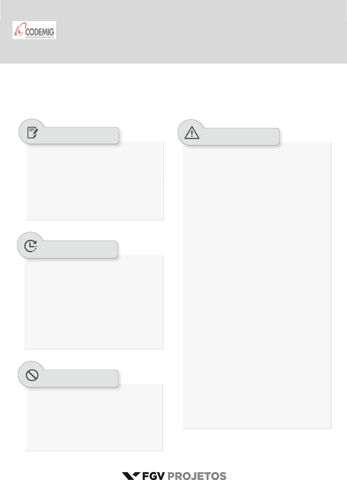 Companhia de Desenvolvimento Econômico de Minas Gerais - CODEMIG 80 Concurso Público 2015 TARDE Prova Escrita Objetiva e Discursiva – Nível Superior ANALISTA DE DESENVOLVIMENTO ECONÔMICO - GEÓLOGO DE PETRÓLEO Tipo 1 – BRANCA Além deste caderno de prova, contendo setenta questões objetivas e duas questões discursivas, você receberá do fiscal de sala: uma folha destinada às respostas das questões objetivas um caderno de textos definitivos destinado às questões discursivas As questões objetivas têm cinco alternativas de resposta (A, B, C, D, E) e somente uma delas está correta As questões discursivas virão ao final do caderno de prova Verifique se seu caderno está completo, sem repetição de questões ou falhas. Caso contrário, notifique imediatamente o fiscal da sala, para que sejam tomadas as devidas providências Confira seus dados pessoais, especialmente nome, número de inscrição e documento de identidade e leia atentamente as instruções para preencher a folha de respostas Use somente caneta esferográfica, fabricada em material transparente, com tinta preta ou azul Assine seu nome apenas nos espaços reservados Marque na folha de respostas o campo relativo à confirmação do tipo/cor de prova, conforme o caderno recebido O preenchimento das respostas da prova objetiva é de sua responsabilidade e não será permitida a troca da folha de respostas em caso de erro Reserve tempo suficiente para o preenchimento de suas respostas. Para fins de avaliação, serão levadas em consideração apenas as marcações realizadas na folha de respostas da prova objetiva e as respostas no caderno de textos definitivos, não sendo permitido anotar informações relativas às respostas em qualquer outro meio que não seja o caderno de prova A FGV coletará as impressões digitais dos candidatos na folha de respostas Os candidatos serão submetidos ao sistema de detecção de metais quando do ingresso e da saída de sanitários durante a realização das provas Boa prova! 5 (cinco) horas é o tempo disponível para a realização da prova, já incluído o tempo para a marcação da folha de respostas da prova objetiva e a transcrição dos textos definitivos 2 horas após o início da prova é possível retirar- se da sala, sem levar o caderno de prova 1 hora antes do término do período de prova é possível retirar-se da sala levando o caderno de prova Qualquer tipo de comunicação entre os candidatos durante a aplicação da prova Levantar da cadeira sem autorização do fiscal de sala Usar o sanitário ao término da prova, após deixar a sala SUA PROVA TEMPO NÃO SERÁ PERMITIDO INFORMAÇÕES GERAIS Companhia de Desenvolvimento Econômico de Minas Gerais FGV Projetos Analista de Desenvolvimento Econômico - Geólogo de Petróleo Ш Tipo 1 – Cor BRANCA – Página 3 Língua Portuguesa 1 A charge acima, da autoria de Newton Silva, considerando-se ter sido feita em setembro de 2015, tem por principal objetivo: (A) condenar a influência de Maquiavel nos atos dos governos; (B) criticar os frequentes atos de corrupção na política brasileira; (C) ironizar a má preparação intelectual dos nossos políticos; (D) mostrar fraquezas presentes na teoria política dos regimes democráticos; (E) demonstrar a urgente necessidade de ser revisto nosso sistema eleitoral. 2 “A minha democracia termina no momento em que você não concorda mais comigo”. O comentário adequado aos termos presentes na fala da charge de Newton Silva é: (A) a expressão “minha democracia” indica uma distorção teórica do regime democrático da parte do personagem; (B) o emprego do verbo “terminar” mostra o erro de considerar- se a democracia como um regime superado; (C) a utilização dos pronomes pessoais “você” e “comigo” confirma a visão de a democracia ser um regime que conta com a participação popular; (D) a presença do verbo “concordar” confirma a visão de que o regime democrático sobrevive graças à solidariedade entre os cidadãos; (E) o uso do advérbio “mais” se refere implicitamente à presença de opiniões diferentes com que convive o regime democrático. 3 “Assaltar os cofres públicos é um ato democrático porque o dinheiro é poder e o poder emana do povo”. A frase mostra uma estrutura argumentativa, que teria validade, mas não verdade, na seguinte forma: (A) o poder emana do povo / o dinheiro é poder / assaltar os cofres públicos é um ato democrático; (B) o dinheiro é poder / o poder emana do povo / assaltar os cofres públicos é um ato democrático; (C) assaltar os cofres públicos é um ato democrático / o poder emana do povo / o dinheiro é poder; (D) o dinheiro é poder / assaltar os cofres públicos é um ato democrático / o poder emana do povo; (E) o poder emana do povo / assaltar os cofres públicos é um ato democrático / o dinheiro é poder. Texto 1 Do grego demo=povo e cracia=governo, ou seja, governo do povo. Democracia é um sistema em que as pessoas de um país podem participar da vida política. Essa participação pode ocorrer através de eleições, plebiscitos e referendos. Dentro de uma democracia, as pessoas possuem liberdade de expressão e manifestações de suas opiniões. A maior parte das nações do mundo atual seguem o sistema democrático. Embora tenha surgido na Grécia Antiga, a democracia foi pouco usada pelos países até o século XIX. Até este século, grande parte dos países do mundo usavam sistemas políticos que colocavam o poder de decisão nas mãos dos governantes. Já no século XX, a democracia passou a ser predominante no mundo. (suapesquisa.com) 4 O texto 1 começa apresentando a etimologia do vocábulo democracia; o item abaixo em que a significação do vocábulo dado está correta é: (A) teocracia – governo que não adota uma religião oficial; (B) meritocracia – governo composto exclusivamente por pessoas de nível superior de instrução; (C) aristocracia – governo formado