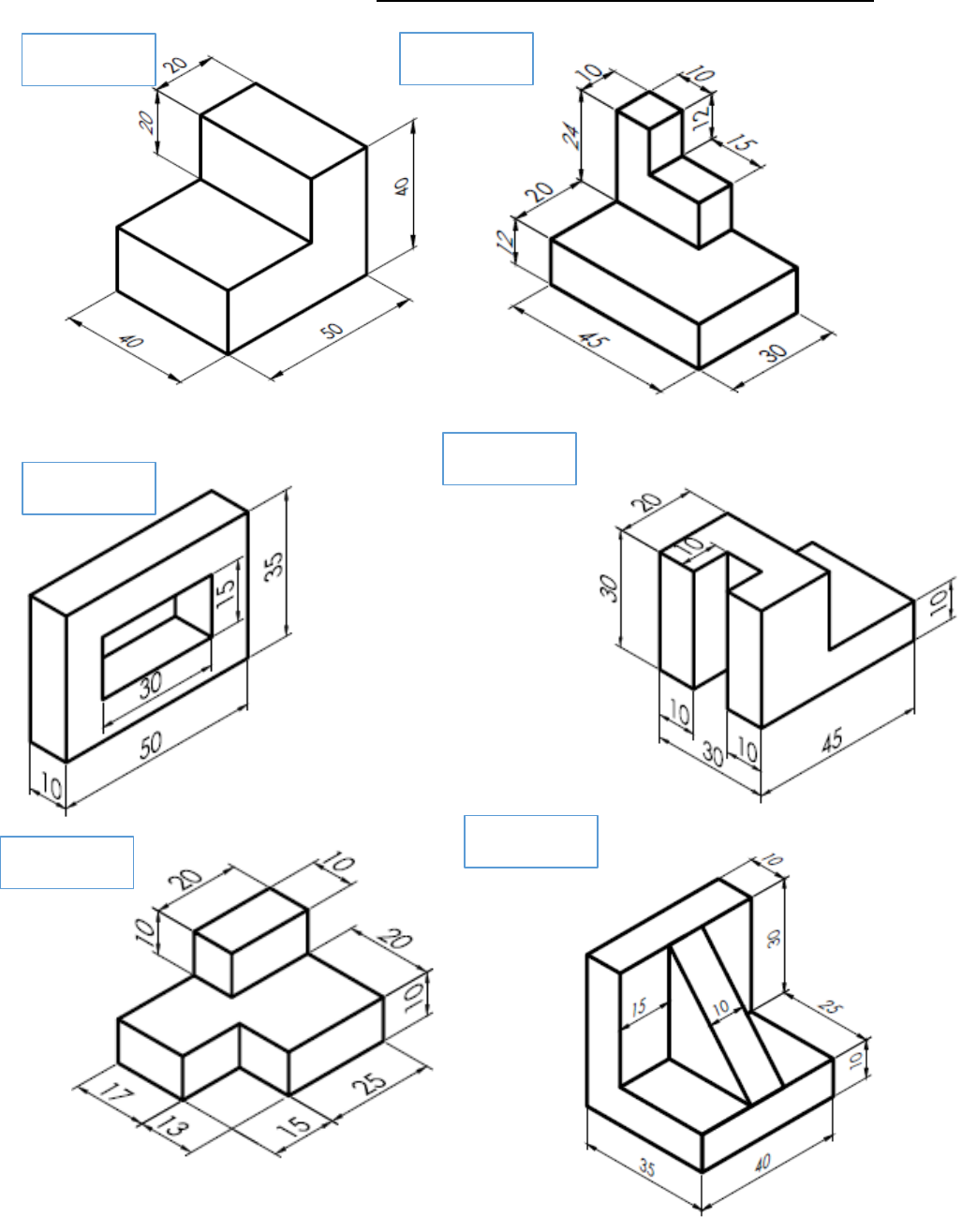DESENHO TÉCNICO I - Exercícios do Capítulo 2 – Projeções Ortogonais Peça 1 Peça 2 Peça 3 Peça 4 Peça 5 Peça 6 *Empregar a escala 5:1 *Empregar a escala 1:5 Peça 13 Peça 8 Peça 7 Peça 7 Peça 12 Peça 11 Peça 9 Peça 10 Peça 14