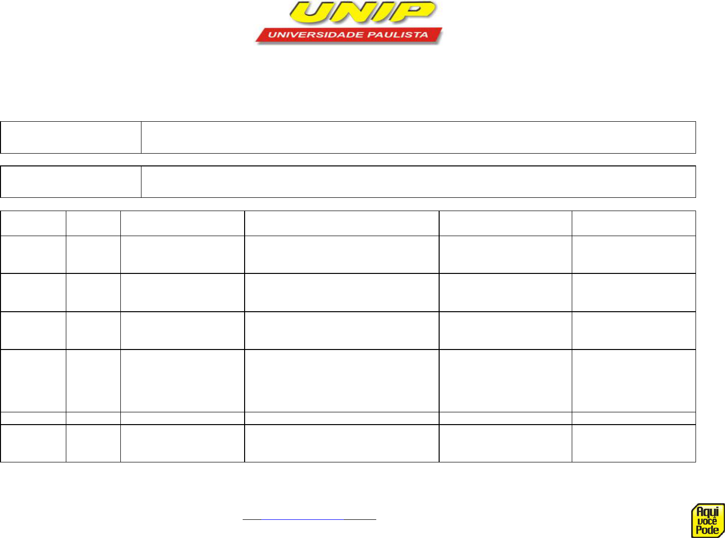 � PLANO DE AULA 2019.1 DISCIPLINA: Fisiologia do Sistema Regulador PROFESSORA: Valéria Aguiar e Silva Castro TURNO: Noite I PERÍODO: 04/02/2019 a 24/06/2019 EMENTA Caracterização da fisiologia no contexto profissional e acadêmico, identificando os principais mecanismos reguladores dos sistemas do corpo humano. OBJETIVOS Fornecer subsídios fundamentais para a formação acadêmica do discente sobre a fisiologia do corpo humano. Possibilitar a compreensão da disciplina de fisiologia no curso de Enfermagem. DATA Nº. AULA MÓDULO CONTEÚDO METODOLOGIA RECURSO 04/02/19 01 I Apresentação da Disciplina e introdução a fisiologia do sistema regulador Aula expositiva e dinâmica de apresentação da formiga Quadro branco e marcador 11/02/19 02 I Sistema nervoso central e periférico Aula expositiva e dialogada. Material apostilado (UNIP). Data show. 18/02/19 03 I Estudo dos neurônios e células da glia Aula expositiva e dialogada. Material apostilado (UNIP). Data show 25/02/19 04 I Leitura e produção textual com o artigo: Alterações neurológicas ao envelhecimento humano. Síntese crítica de artigo – Parcial para NP (1/3) Discussão e produção textual Artigo científico 04/03/19 FERIADO 11/03/19 05 I Fisiologia do sistema nervoso II Potencial de ação Potencial de membrana Aula expositiva e dialogada. Vídeo Data show 18/03/19 06 I Revisão da aula anterior Fisiologia do sistema nervoso II Sinapses elétrica e química Aula expositiva e dialogada. Quadro branco. Data show 25/03/19 07 I Os neurotransmissores e seu efeitos: acetilcolina, dopamina e serotonina. Aula expositiva e dialogada. Quadro branco Material apostilado (UNIP). 01/04/19 08 II Sentidos especiais da visão, audição e olfato – Parcial para NP (2/3) Seminário Data show 08/04/19 09 II Sistema reprodutor masculino, glândulas e hormônios reguladores – Parcial para NP (2/3) Seminário Data show 15/04/19 10 II Sistema reprodutor feminino: ciclo menstrual, ovulação, fertilização e parto – Parcial para NP (2/3) Seminário Data show 22/04/19 11 II Sistema endócrino: regulação da hipófise e hipotálamo – Parcial para NP (2/3) Seminário Data show 29/04/19 12 II Sistema endócrino: hormônios da adeno-hipófise neuro-hipófise – Parcial para NP (2/3) Seminário Data show 06/05/19 13 III A glândula da tireóide Hormônios TSH, T3 e T4 Desenvolvimento do projeto para a semana da Enfermagem – Parcial para NP (3/3). Aula expositiva e dialogada. Material apostilado (UNIP). Data show Artigo científico 13/05/19 14 III Fisiologia dos hormônios do crescimento e somatotrópico. Desenvolvimento do projeto para a semana da Enfermagem – Parcial para a NP (3/3). Aula expositiva e dialogada. Material apostilado (UNIP). Artigo científico 27/05/19 15 III Revisão da matéria e resolução de questões Socialização do aprendizado Material apostilado (UNIP). Data show 03/06/19 - AP - A a J Presencial Material impresso. 10/06/19 - - AP - K a Z Presencial - Material impresso. 17/06/19 - - Segunda chamada - Material impresso. 24/06/19 - - Exame Final - Material impresso. Unidade NOVA MARABÁ – Marabá- PA� (94) 3322-6020/99204-4949 www� HYPERLINK "http://.aquivocepode.com.br" �.aquivocepode.com.br� – www.unip-maraba.com.br