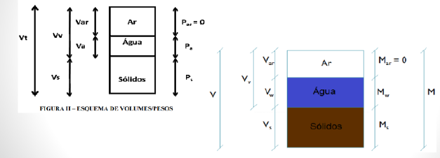 Índices Físicos O solo é composto por três fases: • fase sólida • fase líquida • fase gasosa O que são índices físicos? As principais grandezas de um solo são: Ps – peso das partículas sólidas; Pa – peso da água; * o peso do ar é considerado desprezível. Vs – volume das partículas sólidas; Va – volume da água; Var – volume do ar; Vv - volume de vazios; Teremos sempre: Pt = Ps + Pa; Vv = Va + Var; Vt = Vs + Va + Var = Vs + Vv; As unidades mais usuais são: Para o peso: g; kg; t. Para o volume: cm3; dm3; m3. As três relações de volume mais utilizadas são: • Índice de Vazios; • Porosidade e; • Grau de Saturação. Índice de Vazios (e) não tem unidade É uma grandeza adimensional e, é definido como o volume dos vazios (Vv) dividido pelo volume ocupado pelas partículas sólidas (Vs) de uma amostra de solo. e = Vv / Vs Os valores médios situam-se entre 0,5 e 1,5, em algumas argilas, o índice de vazios pode atingir valores superiores a 3. Solo Arenosos .e = 0,4 a 1,5 Solo Argilosos .e = 0,3 a 1,5 Solos orgânicos .e >1,5 Exemplo: 1.Suponha que em um solo 80% corresponda ao volume de sólidos, 15% ao volume de água e 5% ao volume de ar. Calcule o índice de vazios deste solo. Porosidade (n) É definida pela relação entre o volume de vazios e o volume total da amostra. A porosidade de um solo varia entre 0 e 100% e os valores médios encontrados situam-se entre 30 e 70%. n = Vv /V x 100 n = e / (1 + e) x 100 Porosidade (%) Índice de vazios (e) Denominação >50 >1 Muita alta 45-50 0,80- 1,00 alta 35-45 0,55-0,80 media 30-35 0,43-0,55 baixo <30 0,43 Muito baixo Os poros dos solos, que apesar de também serem chamados de volume de vazios, podem estar preenchidos com água (quando solo está saturado), com ar (quando o solo está totalmente seco) ou com ambos, que é a forma mais comum encontrada na natureza. Condições Normal Vv= Vw +Var Solo Saturado Vv=Vw Solo Seco Vv=Var Grau de Saturação (S) Representa a relação entre o volume de água e o volume de vazios. O grau de Saturação de um solo varia de 0 a 100%. Solo Saturado = 100% Solo completamente Seco = 0% S = Vw / Vv x 100 Exemplo: 1. Suponha que em um solo tenha 70% corresponda ao volume de sólidos, 20% ao volume de água e 10% ao volume de ar. Calcule: a) e – Índice de Vazios do solo; b) n – Porosidade do solo; c) S – Grau de Saturação do solo. Umidade (h%) É a relação, expressa na forma percentual, entre o peso da água contidanum certo volume de solo e o peso da parte sólida existente neste mesmovolume. h% = Pa / Ps × 100 Ensaio no laboratório - Estufa: T = 105ºC Pa = P1 - P2 Ps = P2 - Ptara Exemplos: 1. Um solo ao chegar no laboratório apresentou massa úmida de 133g. Para tirar a umidade, foi colocado na estufa e após 24h apresentou massa seca de 112g. Qual o teor de umidade deste solo? 2. Uma amostra de solo úmido em cápsula de alumínio tem uma massa de 462g. Após a secagem em estufa se obteve a massa seca da amostra igual a 364g. Determinar o teor de umidade do solo considerando a massa da cápsula de 39g. Aparelho Speedy: Exemplo: 1.Se a amostra de solo úmido colocado no aparelho do Speedy foi de 10g, e após reação com o carbureto apresentou pressão interna de 1,30kg/cm³, qual seria o teor de umidade deste solo? Método Expedito do Álcool Peso da cápsula; Peso do material (50g); Queima (3X); Peso do material seco; Cálculo da umidade. Exemplo: Em um laboratório uma amosta úmida de solo tinha 50g, a cápsula 90,57g. Após a terceira queimagem foi confirmado que a amostra, com cápsula, pesava 134,15g. Qual o teor de umidade da amostra? É grande a variação de umidade de um solo para outro, algumas argilas do México, por exemplo, apresentam umidade da ordem de 400%. Na natureza não existem solos com teor de umidade igual a zero!!! Com relação ao Volume: Peso Específico Natural É a relação entre o peso do elemento e o volume total desse elemento. A faixa de variação do peso específico natural dos solos encontra-se entre 17 e 21 kN/m3 em geral, porém para casos muito específicos estes valores podem atingir valores próximos a 14 kN/m3 (argilas orgânicas moles). Método do Frasco de Areia Esse método pode ser realizado no campo e consiste em instalar na superfície do terreno uma bandeja com abertura circular de 15cm de diâmetro. Através dessa abertura escava-se um buraco de aproximadamente 15 de profundidade. O solo escavado é pesado e tem-se o valor de Pt (peso total do solo). O volume do solo, Vt, é o volume do furo aberto no solo, com diâmetro e profundidade de 15cm. Calcula-se o teor de umidade da amostra. Enche-se esse furo com areia de densidade conhecida e, sabendo-se o peso da areia necessária para enche-lo e a densidade da areia, calcula-se o volume ocupado pela areia que é o volume do furo. Com o peso do solo e o volume ocupado por ele, tem-se o peso específico. Peso Específico Saturado (γsat) Quando o solo encontra-se saturado, ou seja, com todos os seus vazios preenchidos pela água. γsat = Psat / V Já o peso específico submerso representa o peso específico efetivo do solo quando submerso. Este índice é utilizado para cálculo das tensões efetivas no solo. γsub = γn - γw γsat = γsub - 1 Peso Específico dos Sólidos ou dos Grãos É determinado dividindo-se o peso dos sólidos pelo volume ocupado por eles. A faixa de variação do peso específico dos sólidos encontra-se entre 26 kN/m3 (areia) e 30 kN/m3 (argilas). Peso Específico Seco É a relação entre o peso dos sólidos e o volume total do solo. A faixa de variação do peso específico aparente seco de um solo encontra-se entre 13 e 19 kN/m3 em geral. Densidade dos Sólidos (ρs) É a relação entre o peso específico dos grãos e o peso específico da água. De maneira geral, pode-se afirmar que, quanto mais elevada for a densidade do solo, maior será sua compactação e, menor sua porosidade total e, consequentemente, maiores serão 