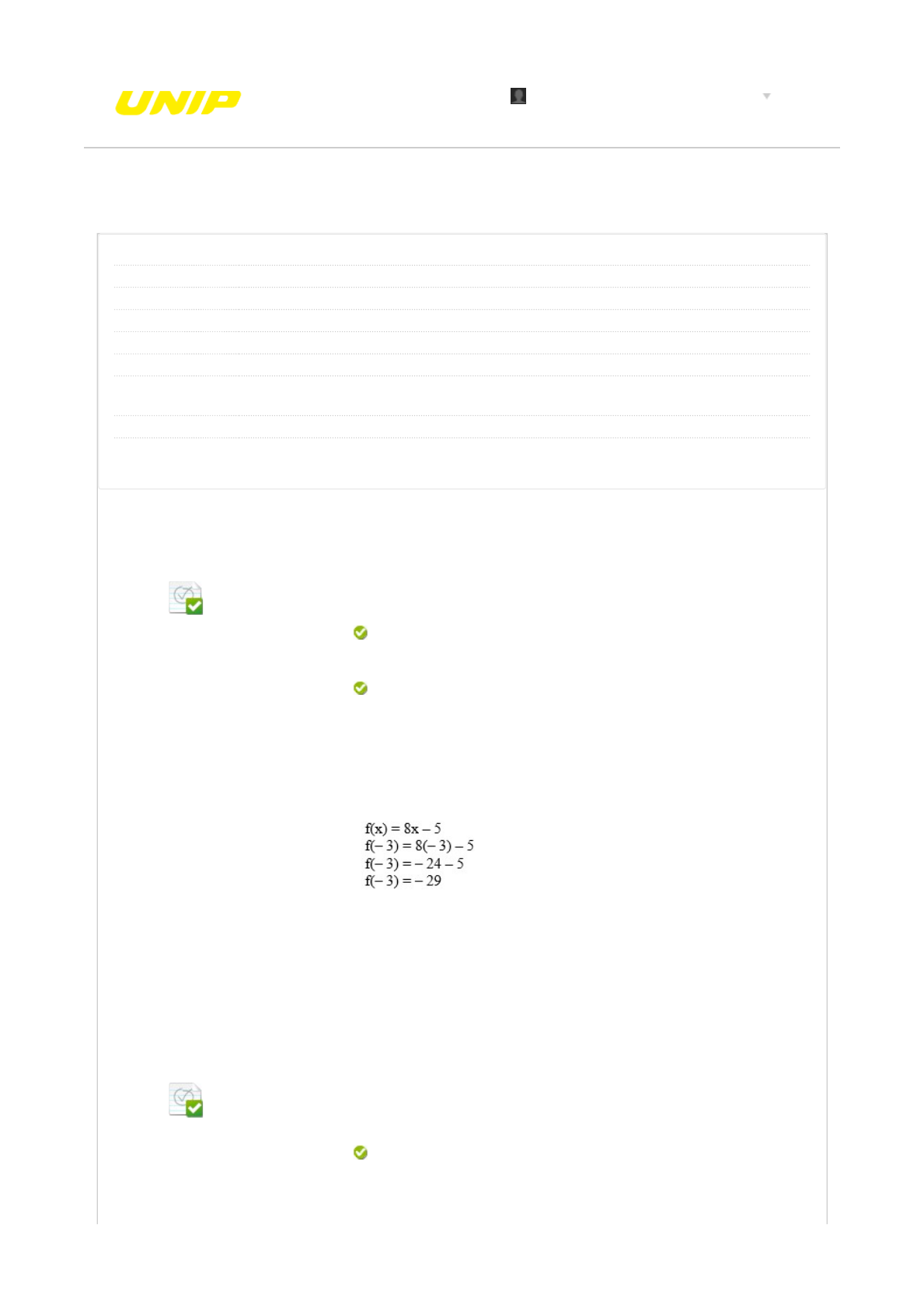 Sendo f(x) = 8x – 5, calcule f(– 3).