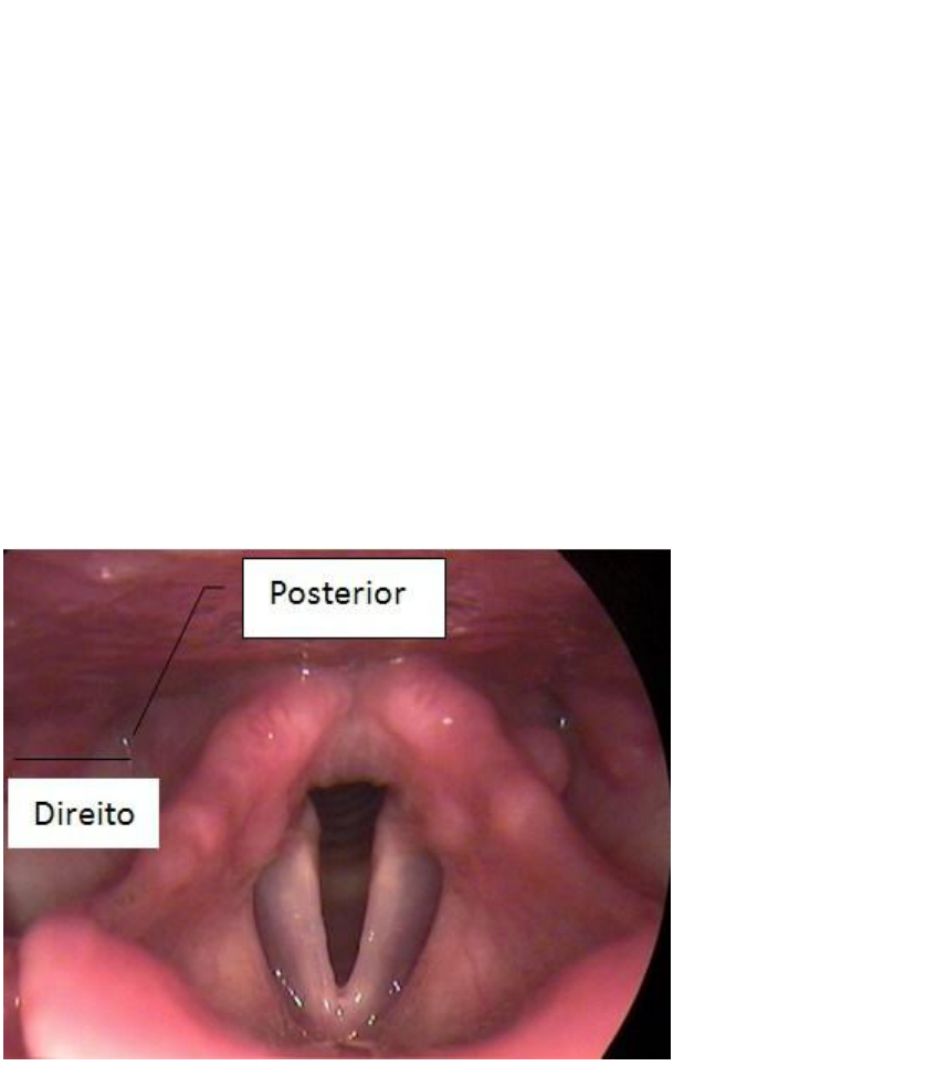 Exame realizado com tubo de 7,0 mm de diâmetro colocado na boca do paciente. É necessário manter a ponta da língua para fora da boca, presa pela mão do examinador, enquanto paciente diz as vogais “É” ou “Í” ou simplesmente respira, para colocar a laringe em posição favorável à sua visualização. O aparelho apenas toca na úvula e produz discreto desconforto na maioria dos pacientes. As imagens são de excelente qualidade, porém o exame não pode ser feito em crianças pequenas e em adultos com reflexo nauseoso acentuado. Abaixo mostramos algumas fotos obtidas a partir de imagens de vídeo S-VHS. Todas as imagens foram obtidas na Clinica Cóser. 1) A laringe normal apresenta-se com as pregas vocais de cor branca e com a superfície lisa. Durante a respiração elas se afastam para permitir a passagem do ar que vai e vem da traquéia e durante a fonação se aproximam fechando o espaço entre elas (glote) e vibram produzindo o som da voz. O fechamento da glote se faz de forma completa, sem fendas, nos homens e em 1/3 das mulheres. – Laringe em respiração – – Laringe em fonação- 2) A laringe de 2/3 das mulheres apresenta um “fenda triangular posterior” considerada normal. Observa-se a fenda triangular posterior durante a fonação que ocorre em 2/3 das mulheres. 3)Em pessoas com hábitos vocais inadequados forma-se uma “fenda em ampulheta” e no local onde há maior contato entre as pregas vocais pode se desenvolver uma calosidade que recebe o nome nódulo vocal. Pré-nódulos vocais Fenda em ampulheta 4) O abuso vocal , como gritar muito em jogo de futebol ou em uma festa, pode causar uma inflamação aguda das pregas vocais (laringite por fonotraumatismo). As pregas vocais ficam vermelhas e, neste caso, com edema no local onde futuramente poderá se formar um nódulo vocal. Fenda em ampulheta Fenda em ampulheta Fenda em ampulheta 7) O fechamento glótico com fenda fusiforme não é relacionado com o mau uso ou abuso vocal. Na maioria das vezes é decorrente de malformações congênitas e pelo envelhecimento da laringe (Presbifonia). Como o escape de ar durante a fonação costuma ser muito grande, na produção da voz a pregas ventriculares ( falsas pregas vocais ou bandas ventriculares) costumam s aproximar e até mesmo entrar em vibração. Pregas vocais assimétricas com fenda fusiforme anterior, as bandas ventriculares tendem a aproximação. Escavação no bordo livre das pregas vocais, conhecido como sulcus vocalis é responsável por muitas fendas fusiformes ântero-posteriores. Este caso de Presbifonia mostra grande fenda fusiforme com importante aproximação das bandas ventriculares. Aqui vemos um enorme sulcus vocalis bilateral. A voz é produzida pelas bandas ventriculares. Aqui vemos outro caso de fenda fusiforme ântero-posterior com voz de banda, sem sulcus vocalis desta vez.