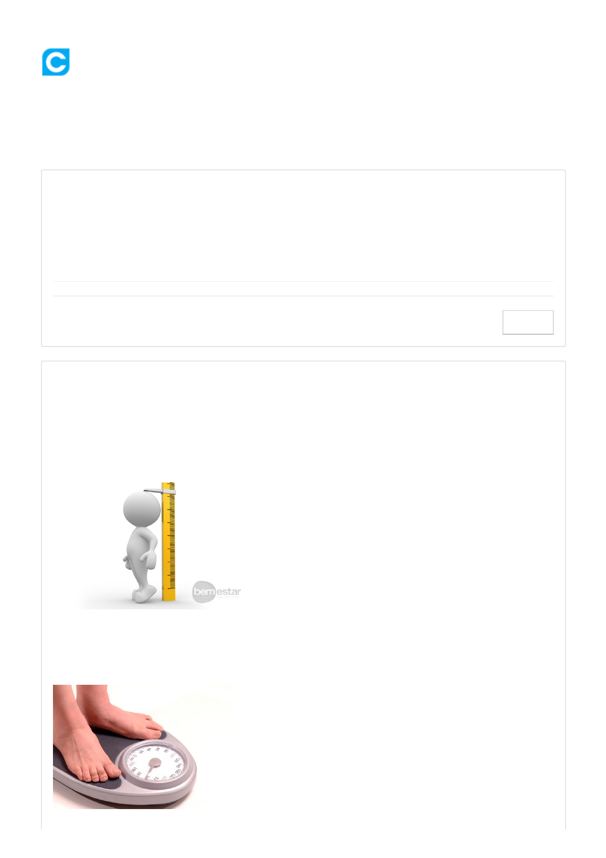 22/05/2019 Colaborar - Aap2 - Medidas e Avaliação em Educação Física https://www.colaboraread.com.br/aluno/avaliacao/index/0930469707?atividadeDisciplinaId=7686339 1/4 Medidas e Avaliação em Educação Física (/al… Aap2 - Medidas e Avaliação em Educação Física (/notific Avaliar Informações Adicionais Período: 15/04/2019 00:00 à 09/06/2019 23:59 Situação: Cadastrado Protocolo: 389130598 1) Antropometria é definida como a medida do homem (homem no sentido do ser humano e não ao sexo). Contudo, na área da educação física, o termo cineantropometria também é bastante utilizado, e remete à medida do homem (ser humano em movimento). Analise a tabela e as figuras a seguir: COLUNA 1 I – Antropometria II- Cineantropometria Figura A. Estatura Retirado de http://www.bemestarmed.com.br/site/fique-atento-a-baixa-estatura-tem-tratamento-e-quanto- antes-iniciado-melhor-sera-resultado/ (http://www.bemestarmed.com.br/site/fique-atento-a-baixa-estatura- tem-tratamento-e-quanto-antes-iniciado-melhor-sera-resultado/) . Acesso em 23 de nov. de 2017. Figura B. Massa corporal 22/05/2019 Colaborar - Aap2 - Medidas e Avaliação em Educação Física https://www.colaboraread.com.br/aluno/avaliacao/index/0930469707?atividadeDisciplinaId=7686339 2/4 a) b) c) d) e) 2) Retirado de http://revistavivasaude.uol.com.br/clinica-geral/voce-esta-acima-do-peso/365/ (http://revistavivasaude.uol.com.br/clinica-geral/voce-esta-acima-do-peso/365/) . Acesso em 23 de nov. de 2017. Figura C. Análise da corrida. Retirado de https://www.youtube.com/watch?v=onkOSATQOys (https://www.youtube.com/watch? v=onkOSATQOys) . Acesso em 23 de nov. de 2017. Analisando as figuras e a coluna 1 e com base no texto apresentado, assinale a alternativa que representa a associação CORRETA entre elas: Alternativas: A coluna I está associada com a figura C e a coluna II está associada com as figuras A e B. A coluna I está associada com as figura A e C e a coluna II está associada com a figura B. A coluna I está associada com a figura B e a coluna II está associada com as figuras A e C. A coluna I está associada com as figuras A e B e a coluna II está associada com a figura C. Alternativa assinalada A coluna I está associada com a figura A e a coluna II está associada com as figuras B e C. O instrumento utilizado para a mensuração da massa corporal, em geral, são as balanças antropométricas. Apesar de existirem diversas marcas, existe uma padronização para a realização dessa medida. Sendo eles: 1- O avaliado deverá subir na balança, colocando cuidadosamente um pé de cada vez próximo ao centro da plataforma, com afastamento lateral na largura dos quadris e com o peso distribuído igualmente em ambos os pés. 2- O avaliador deve solicitar que o avaliado mantenha o olhar no plano horizontal, em um ponto fixo, a fim de evitar oscilações do centro de massa. 3- O avaliado deve estar descalço e com o mínimo de roupas possível. Durante todo o procedimento, o avaliado deve evitar inspirações ou expirações profundas. 4- Verificada a posição correta e a ausência de oscilações, realizar a leitura da medida. 5- O avaliador deve posicionar o avaliado em pé e de costas para a escala de medida da balança, com os pés afastados de modo que a plataforma da balança fique entre eles. Assinale a alternativa que representa a ordem CORRETA da sequência que deve ser adotada pelo avaliador para a mensurar a massa corporal. Alternativas: 22/05/2019 Colaborar - Aap2 - Medidas e Avaliação em Educação Física https://www.colaboraread.com.br/aluno/avaliacao/index/0930469707?atividadeDisciplinaId=7686339 3/4 a) b) c) d) e) a) b) c) d) e) 3) 3 - 1 - 4 - 5 - 2. 2 - 1 - 3 - 4 - 5. 3 - 5 - 1 - 2 - 4. Alternativa assinalada 3 - 2 - 4 - 1 - 5. 1 - 2 - 3 - 4 - 5. No estudo do crescimento e desenvolvimento humanos, as medidas de massa corporal e estatura estão sempre presentes nas abordagens dos conteúdos. Através delas, é possível verificar o padrão de crescimento físico, como por exemplo, quando se utiliza as curvas (tabelas ou gráficos de percentil) de crescimento e estatura ou peso corporal. A Figura 1 apresenta um gráfico de curvas de Percentil (P25 e P75) relativos aos escores de estatura observados em um determinado estudo. Adaptado de http://www.efdeportes.com/efd145/crescimento-fisico-de-escolares-do-quilombo-do- curiau.htm (http://www.efdeportes.com/efd145/crescimento-fisico-de-escolares-do-quilombo-do- curiau.htm) . Acesso em 30 de Nov. de 2017. Com base no gráfico, analise as afirmativas a seguir: I- Na idade de 12-13 anos observa-se uma estabilização na estatura tanto para as crianças do percentil 25 quanto para as crianças do percentil 75. II- Ambos os percentis apresentam uma estabilização no período de 9-10 anos. III- Ambos os percentis apresentam crescimento linear da estatura. IV- Aos 10 anos, um aumento acentuado na estatura é observado apenas para as crianças do percentil 25. Assinale a alternativa CORRETA: Alternativas: Apenas as afirmativas I e IV estão corretas Apenas a afirmativa II está correta Apenas as afirmativas I e III estão corretas Alternativa assinalada As afirmativas I, II, III e IV estão corretas Apenas as afirmativas I, II e III estão corretas 22/05/2019 Colaborar - Aap2 - Medidas e Avaliação em Educação Física https://www.colaboraread.com.br/aluno/avaliacao/index/0930469707?atividadeDisciplinaId=7686339 4/4 a) b) c) d) e) 4) Dobras cutâneas corresponde à medida de uma camada dupla de pele e de tecido subcutâneo em determinado ponto anatômico, sendo uma das mais complexas medidas antropométricas. As medidas são realizadas em pontos específicos conforme demonstrado na figura abaixo. Retirado de https://medicina362.wordpress.com/2015/11/04/aula-modulo-3-biofisica-antropometria/ (https://medicina362.wordpress.com/2015/11/04/aula-modulo-3-biofisica-antropometria/) . Acesso em 03 de dez. de 2017. Dentro desse contexto, analise as asserções a segui