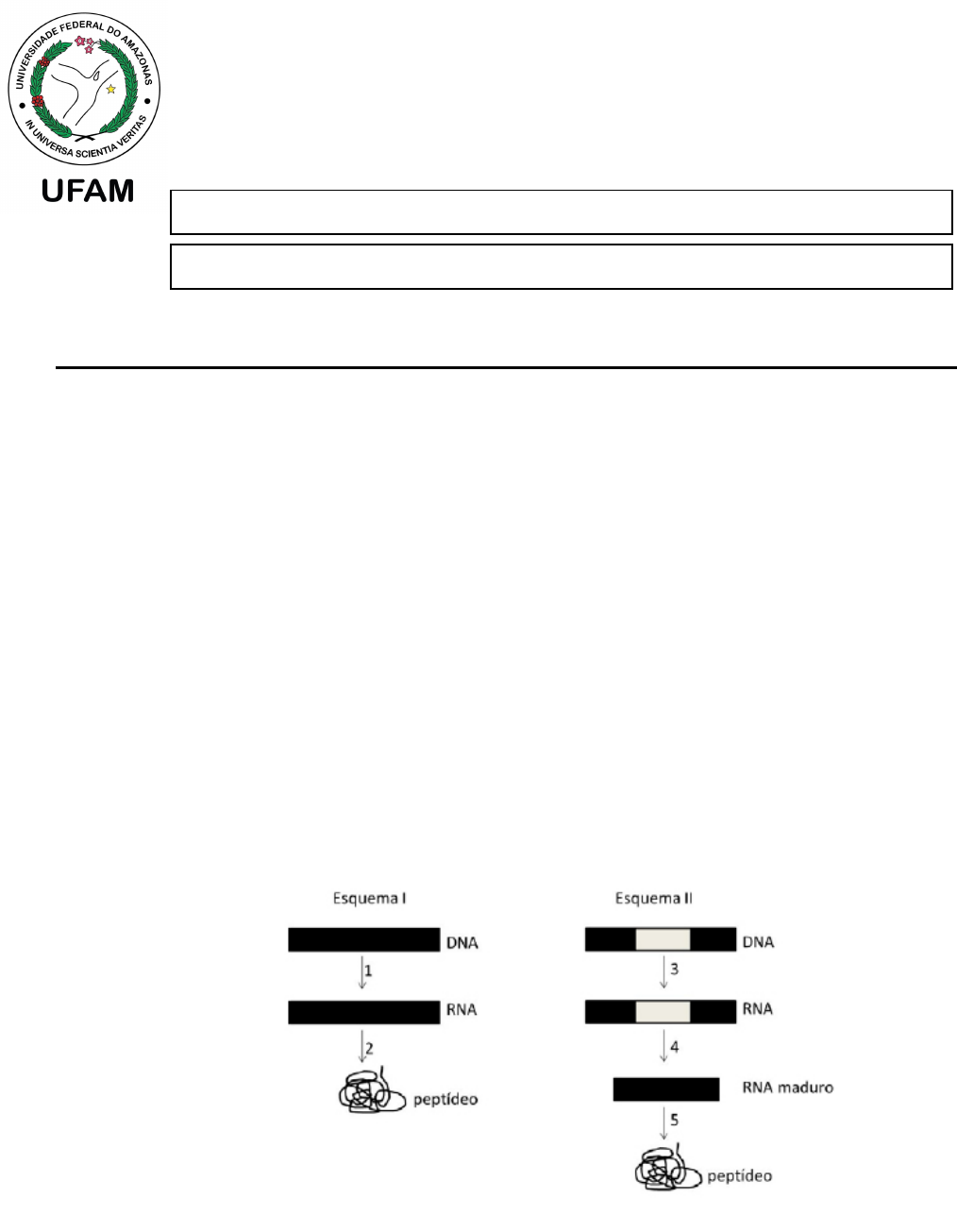 UFAM / ICB / Departamento de Genética Curso: Medicina – Disciplina: Genética Estudo Dirigido Prof. Diego Sotero 1. Em Escherichia coli a DNA-polimerase I possui atividades de exonuclease 5’e 3’ enquanto a DNA-polimerase III possui atividade exonuclease 3’e 5’. Explique a funcionalidade por trás das diferenças em atividade exonuclease associada a essas duas polimerases. 2. Construa um mapa de conceitos relacionando os seguintes termos: DNA / polimerase do RNA / holoenzima / fator sigma / transcrição do DNA / promotor/ sequência terminalizadora / transcrito 3. Enumere as seguintes enzimas na ordem direta em que começam a funcionar na replicação e conceitue cada uma delas: Ligase - DNA polimerase - primase - helicase - exonuclease 4. Os esquemas I e II abaixo mostram as etapas da expressão gênica em dois organismos distintos, um procarioto e um eucarioto. a) Indique, com justificativa, qual esquema se refere ao eucarioto. Em qual ou quais compartimentos celulares ocorrem as etapas indicadas por 1 e 2 no esquema I, e as etapas 3 e 5 do esquema II? b) A remoção diferencial de íntrons do RNA mensageiro pode resultar na produção de diferentes peptídeos. Qual das etapas indicadas nos esquemas corresponde ao processo de Aluno: Matrícula: remoção de íntrons? Explique por que a remoção diferencial de íntrons pode acarretar na produção de diferentes peptídeos. 5. Observe a figura abaixo: Fonte: SNUSTAD, P., SIMMONS, M.J. Fundamentos de Genética (6ª Edição). Rio de Janeiro: Guanabara Koogan, 2013. Com base nela responda: por que os hormônios esteroides interagem com receptores dentro da célula, enquanto hormônios peptı́dicos interagem com receptores na superfı́cie celular? Qual o impacto destes mecanismos no controle da expressão de genes em eucariotos? 6. Defina mutação, seus principais tipos existentes e aponte dois distúrbios metabólicos onde a mutação tem papel fundamental. Justifique sua resposta. 7. A Síndrome do X frágil é a segunda forma mais comum de retardo mental hereditário em seres humanos. As pessoas com síndrome do X frágil apresentam comprometimento mental acentuado; também podem apresentar anormalidades faciais e de comportamento. A análise molecular mostrou que esse cromossomo contém uma repetição trinucleotídica instável, (CGG)n, no sítio frágil. Essa repetição está localizada na região 59 não traduzida de um gene designado FMR-1, do inglês fragile X mental retardation gene 1 (gene do retardo mental do X frágil 1). O produto proteico desse gene, designado FMRP, é uma proteína de ligação do RNA, e a ausência da mesma parece ser a causa das deficiências mentais observadas. A transcrição do gene FMR-1 é desativada em pacientes com X frágil, genes FMR-1 normais – ou seja, expressos – contêm de 6 a 59 cópias dessa repetição. Já os genes FMR-1 anormais – ou seja, não expressos – encontrados em pessoas com a síndrome do X frágil contêm de 200 a 1.500 cópias. O que determina o aumento do número de cópias das repetições trinucleotídicas nos cromossomos de 6 a 59 para 200 a 1.500? Para realizar os exercícios abaixo utilize a tabela do código genético. 8. Ek dada a sequência nucleotı́dica hipotética de um mRNA a partir de um “gene selvagem”. Para os mutantes 1 e 2, decorrentes de mutações pontuais (em um único nucleotídico), escreva a sequência de aminoácidos esperada. Gene Selvagem 5’-AUG AAA UAC UUU GUU CAU-3’ Met Lys Tyr Phe Val His Gene Mutante 1 Mutação de troca de sentido: 5’-AUG AUA UAC UUU GUU CAU-3’ _______________________ Gene Mutante 2 Mutação sem sentido: 5’-AUG UAA UAC UUU GUU CAU-3’ _______________________ 9. Ek dada a sequência nucleotı́dica hipotética de um mRNA a partir de um “gene selvagem”. Para os mutantes 3, 4 e 5, decorrentes de mutações por mudança de fase de leitura (inserção ou deleção de bases), escreva a sequência de aminoácidos esperada. Gene Selvagem 5’-AUG AAA UAC UUU GUU CAU-3’ Met Lys Tyr Phe Val His Gene Mutante 3 Inserção ou deleção de uma base: 5’-AUG CAA AUA CUU UGU UCA U-3’ _________________________ Gene Mutante 4 Inserção ou deleção de duas bases: 5’-AUG UCA AAU ACU UUG UUC AU-3’ __________________________ Gene Mutante 5 Inserção ou deleção de três bases: 5’-AUG UCA AAA UAC UUU GUU CAU-3’ ___________________________ 10. De acordo com o que foi visto em aula sobre a síntese protéica responda: a) Qual é a relação entre o RNA mensageiro e a formação de polissomos? b) Qual é a diferença entre o rRNA e o mRNA e tRNA e as proteínas solúveis no processo de síntese protéica? c) Quais são as funções dos sı́tios de ligação A, P e E do aminoacil-tRNA no ribossomo?