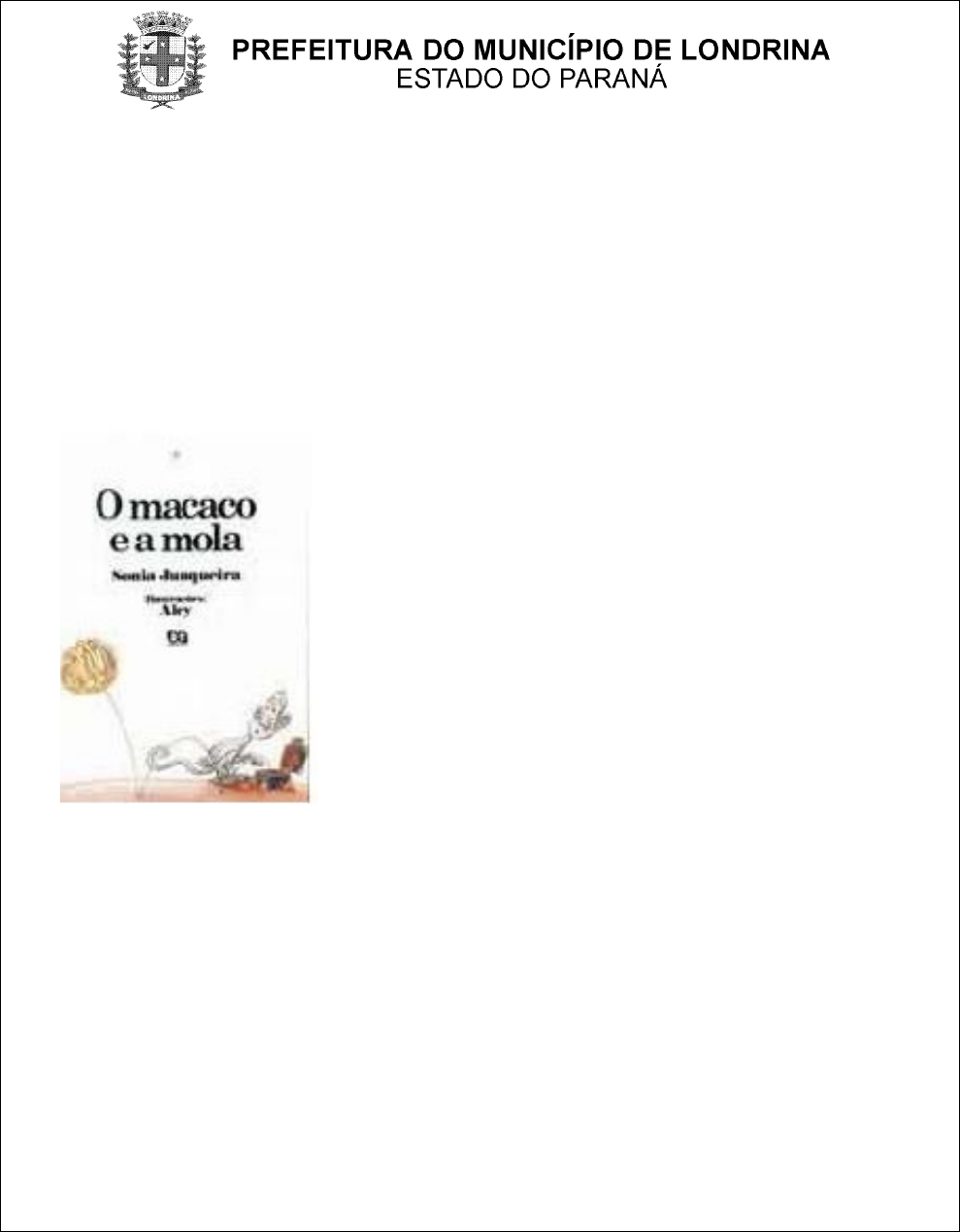 SECRETARIA DE EDUCAÇÃO/DIRETORIA DE ENSINO GERÊNCIA DE APOIO TÉCNICO-PEDAGÓGICO ASSESSORIA DE ALFABETIZAÇÃO E LÍNGUA PORTUGUESA ROSANA DALINER ACOSTA MARCHESE ASSESSORA TÉCNICO-PEDAGÓGICA DE ALFABETIZAÇÃO Londrina Set/2003 SUGESTÕES DE ATIVIDADES PARA ALFABETIZAÇÃO Rosana Daliner Acosta Marchese Assessora Técnico-Pedagógica de Alfabetização 2 O MACACO E A MOLA 1) LEITURA DO LIVRO O MACACO E A MOLA. 2) O PROFESSOR LÊ O TÍTULO E MOSTRA A CAPA E A CONTRACAPA DO LIVRO. FORMULA, ENTÃO AS SEGUINTES PERGUNTAS: • O QUE O MACACO ESTÁ FAZENDO? • O QUE DIZEM AS EXPRESSÕES DA CARA DO MACACO? 3) O PROFESSOR LÊ PAUSADAMENTE A HISTÓRIA, CONVIDANDO OS ALUNOS A DAREM ESCLARECIMENTOS QUANTO AOS ENUNCIADOS VERBAIS E ÁS ILUSTRAÇÕES. ASSIM PODERÁ PROPOR, ENTRE OUTRAS , AS PERGUNTAS: • O QUE QUER DIZER: O MACACO CUTUCA A MALA? PAG. 2 • QUEM É MAIOR NAS ILUSTRAÇÕES DAS PÁGINAS 2 E 3: O MACACO OU MALA? • QUAL É A REAÇÃO DO MACACO NAS PÁGINAS 4 E 5? • PORQUE O CONTADOR DA HISTÓRIA DIZ QUE A MOLA VIRA BOLA? (P. 6 E 7 ) • O QUE É UM ROBALO? • NA HISTÓRIA, QUEM BRINCA DE PEGA-PEGA E DE PULA PULA? (P.15) • QUEM FAZ A PERGUNTA: A MOLA SERÁ CADUCA? 4) APÓS A LEITURA, O PROFESSOR PROPÕE QUESTÕES PARA AMPLIAR A COMPREENSÃO DA CARGA SIGNIFICATIVA DO TEXTO E DESENVOLVER A PERCEPÇÃO CRÍTICA DOS ALUNOS: • A QUEM PERTENCIA A MALA COM A MOLA? • PORQUE A MOLA É MÁGICA? • O QUE MOSTRA A ILUSTRAÇÃO DA PÁGINA? • NA PÁGINA 18, O TEXTO DIZ: “ TUDO RODA”. SERÁ QUE A AFIRMAÇÃO ESTÁ CORRETA? POR QUÊ? • OBSERVE AS ILUSTRAÇÕES DO MACACO E DA MOLA. POR QUE, AS VEZES, A MOLA PARECE SER MAIOR DO QUE O MACACO? • AO FINAL DA HISTÓRIA, O MACACO AINDA QUER BRINCAR COM A MOLA? PROVE SUA AFIRMAÇÃO ATRAVÉS DAS FRASES E DE UMJA ILUSTRAÇÃO DO TEXTO. Rosana Daliner Acosta Marchese Assessora Técnico-Pedagógica de Alfabetização 3 5) O PROFESSOR SELECIONA FRASES DO TEXTO, REGISTRANDO SUAS PALAVRAS LETRA POR LETRA, PARA PODER ALTERNAR A COLOCAÇÃO DAS MESMAS NO QUADRO, FLANELÓGRAFO, E EXPÕE OS SEGUINTES ENUNCIADOS: LIDAS AS FRASES, O PROFESSOR SOLICITA AOS ALUNOS QUE REALIZEM AS ATIVIDADES EXPRESSAS NAS ORDENS ABAIXO. • INDIQUE AS PALAVRAS SEMELHANTES EM CADA FRASE. • MOSTRE AS ALTERAÇÕES EXISTENTES DE UMA PALAVRA PARA OUTRA. 6) SUBSTITUA A PALAVRA GRIFADA POR OUTRA: O MACACO CUTUCA A MALA: ............................................................................................. A MOLA VIRA PETECA:............................................................................................................... 7) REESCREVA A FRASE TROCANDO O LUGAR DAS PALAVRAS: A MOLA PULA NO PÉ DO MACACO. ............................................................................................................. DA MALA PULA A MOLA. ........................................................................................................... 8) CONCLUÍDAS AS ATIVIDADES DE EXPLORAÇÃO DO TEXTO, O PROFESSOR SUGERE AOS ALUNOS: • A ILUSTRAÇÃO DA NARRATIVA EM UM PAINEL A SER AFIXADO NA SALA DE AULA; DA MALA PULA A MOLA A MOLA VIRA BOLA. O MACACO CUTUCA A CUCA. A MOLA REBOLA COMO O ROBALO. Rosana Daliner Acosta Marchese Assessora Técnico-Pedagógica de Alfabetização 4 9) PINTE NO TEXTO PALAVRAS QUE COMECEM COM: M , B , (IMPORTANTE: A PROFESSORA DEVE PEDIR PARA A CRIANÇA SILÁBICA OU PRÉ-SILÁBICA, QUE PINTE JUSTAMENTE AS LETRAS QUE ELA TEM MAIS DIFICULDADE OU AQUELAS QUE NÃO CONHECEM. 10) QUANTAS LETRAS TEM: CAVALO BONECA BALA MACACO 11) ESCREVA NOS QUADRINHOS AS PRIMEIRAS LETRAS DE CADA PALAVRA: 12) CAÇA-PALAVRAS: PROCURE ESTES NOMES NO CAÇA- PALAVRAS, COLORINDO-OS CAVALO BONECA BALA MACACO Rosana Daliner Acosta Marchese Assessora Técnico-Pedagógica de Alfabetização 5 S D B A L A A P B O N E C A C A V A L O M T M A C A C O PERCEBENDO OS PEDACINHOS DAS PALAVRAS: 13) VAMOS MARCAR COM UM X OS QUADRINHOS CORRESPONDENTES AO NÚMERO DE VEZES QUE ABRIMOS A BOCA PARA FALAR: Rosana Daliner Acosta Marchese Assessora Técnico-Pedagógica de Alfabetização 6 14) LEIA JUNTO COM A PROFESSORA E COLEGAS AS PALAVRAS ABAIXO E OBSERVE O FINAL. RECORTE AS FICHINHAS QUE ESTÃO ABAIXO DA LINHA PONTILHADA E COLE-AS NA CARTELA DA PALAVRA QUE TERMINA COM O MESMO SOM. ---------------------------------------------------------------------------------------------------------------------------- Rosana Daliner Acosta Marchese Assessora Técnico-Pedagógica de Alfabetização 7 15) OBSERVE OS NOMES ABAIXO. LIGUE COM UM TRAÇO OS NOMES IGUAIS: ( PS) 16) JOGO DA MEMÓRIA DO MACACO E A MOLA: ( PRÉ-SILÁBICO) PETECA BALA CANECA MACACO MOLA CAVALO FITA BONECA CANECA MACACO MOLA FITA CAVALO BONECA PETECA BALA Rosana Daliner Acosta Marchese Assessora Técnico-Pedagógica de Alfabetização 8 Rosana Daliner Acosta Marchese Assessora Técnico-Pedagógica de Alfabetização 9 BOLA BONECA MOLA MALA FITA CANECA BALA MACACO Rosana Daliner Acosta Marchese Assessora Técnico-Pedagógica de Alfabetização 10 17) BINGO DO LIVRO PARA TODAS OS NÍVEIS. FICHAS PARA SILÁBICOS E ALFABÉTICOS BONECA CANECA BALA FITA MACACO MALA CANECA BALA FITA MOLA BONECA CANECA PETECA FITA MACACO Rosana Daliner Acosta Marchese Assessora Técnico-Pedagógica de Alfabetização 11 MOLA MALA BALA FITA PETECA BONECA MOLA BALA PETECA MACACO MALA CANECA BOLA PETECA MOLA Rosana Daliner Acosta Marchese Assessora Técnico-Pedagógica de Alfabetização 12 BALA MACACO BOLA PETECA MOLA MALA CANECA FITA PETECA MOLA FICHAS PARA ALFABETIZADOS O MACACO E A MOLA O MACACO VÊ A MALA O MACACO CUTUCA A MALA A MOLA VIRA BOLA DA MALA PULA A MOLA A BOLA PULA. A MOLA GALOPA COMO CAVALO. O MACACO CUTUCA A MALA A MOLA VIRA BOLA DA MALA PULA A MOLA Rosana Daliner Acosta Marchese Assessora Técnico-Pedagógica de Alfabetização 13 O MACACO E A MOLA O MACACO VÊ A MALA O MACACO CUTUCA A MALA A MOLA REBOLA COMO ROBALO O MACACO FICA MOLE DE MEDO O MACACO E A MOLA A MOLA SERÁ MALUCA? O MACACO CUTUCA A MALAA MOLA VIRA BOLA DA MALA PULA A