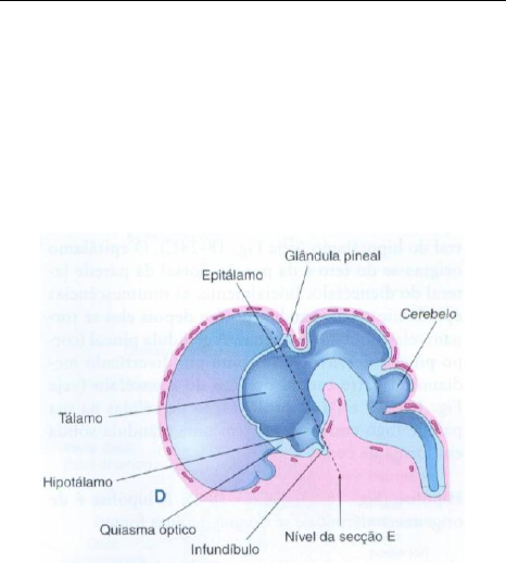 Desenvolvimento da Hipófise – Marcão – 29/08/17 O desenvolvimento do encéfalo anterior ocorre de duas formas: Parte Rostral ou Anterior: Origina o telencéfalo – hemisférios cerebrais. Parte Caudal ou Posterior: Origina o diencéfalo – olhos, hipófise, tálamo e hipotálamo. Logo, parte da hipófise é originada da parte caudal do encéfalo anterior. Tudo que está em azul na imagem é neuroectoderma. Vale ressaltar que o neuroectoderma surge na 3ª semana e origina o tubo neural e a crista neural. Observa-se, na 5ª semana surge um infundíbulo que é um primórdio da NH. A hipófise tem origem ectodérmica e se origina de duas fontes: Uma evaginação (p/ cima) no teto ectodérmico do estomodeu da orofaringe -> divertículo hipofisário (Bolsa de Rathke). Essa evaginação vem da orofaringe. Surge na região em que há o ectoderma do estomodeu na parte anterior do intestino primitivo. Logo, essa evaginação é a subida do teto da orofaringe revestida por estomodeu. Essa porção sobe e forma a AH. Uma invaginação (p/ baixo) de neuroectoderma do diencéfalo -> divertículo neuro-hipofisário. A decida do neuroectoderma do diencéfalo – que vem da porção caudal do encéfalo anterior. Sua origem distinta justifica a existência de dois tecidos completamente diferentes na NH e na AH. Adeno-hipófise (parte glandular) -> Ectoderma oral. Neuro-hipófise (parte nervosa) -> Neuroectoderma. Na 3ª semana, o divertículo hipofisário (bolsa de Rathke) se projeta do teto do estomodeu da orofaringe e se posiciona na proximidade do diencéfalo. Na 5ª semana, já há a consolidação do infundíbulo, derivado do divertículo neuro-hipofisário, que é abraçado pelo divertículo hipofisário. Durante a sexta semana, a conexão do divertículo hipofisário com a cavidade oral se degenera por apoptose. Logo, a haste do divertículo hipofisário sofre regressão. Vale ressaltar que a ligação da NH com o assoalho do diencéfalo permanece. Obs.: Se essa degeneração não ocorrer, o indivíduo adulto pode apresentar malformações discutidas adiante. A formação da AH está relacionada com a formação de: Parte Distal: Originada pela formação da parede anterior do divertículo hipofisário. Proliferação celular. Parte Tuberal: Originada pela porção do divertículo hipofisário que “abraça” a haste infundibular. Parte Intermédia: Originada por células da parede posterior do divertículo hipofisário. Células na parede anterior do divertículo hipofisário origina a parte distal. Outra porção do divertículo hipofisário cresce ao redor do infundíbulo e origina a parte tuberal. As células da parede posterior do divertículo hipofisário origina a parte intermédia. A parte distal é a porção da AH em que ocorre a proliferação celular massiva. Essa proliferação massiva cria na região as células cromófobas e cromófilas (acidófilas (somatotropos e lactotropos) e basófilas (corticotropos, tireotropos, gonadotropos)). Obs.: Apesar de, embriologicamente, a parte intermédia surgir da adeno-hipófise, anatomicamente, consideramos a parte intermédia uma porção individual da hipófise, assim como a NH e AH. A formação da NH está relacionada com a formação de: Parte Nervosa; Infundíbulo; Eminência Mediana. As células do divertículo neuro-hipofisário vão originar: a parte nervosa, o infundíbulo e a eminência mediana. Há livros que o infundíbulo é formado por: eminência mediana + haste infundibular. A eminência mediana seria uma extensão em forma de funil do hipotálamo. Já o restante do prolongamento do pedículo que se aproxima da NH é a haste infundibular. A NH apresenta um aspecto fibroso, visto que é repleta de fibras neuronais. Na NH surgem, por diferenciação celular, células da parte nervosa da NH passam a ser chamadas de pituicitos. A proliferação de células neuroepiteliais transforma a extremidade distal do infundíbulo em maciça e sem pituicitos que são células primárias do lobo posterior da hipófise, intimamente relacionadas com as células neurogliais. Malformações: Se a haste do divertículo hipofisário não for totalmente degenerado por apoptose na 6ª semana, fragmentos de tecido ectodérmico de origem do estomodeu da orofaringe irão permanecer. A manutenção desses fragmentos pode ocorrer em três regiões: Intracraniana: Manutenção de fragmentos na cápsula da hipófise na sela turca. Intraósseo: Manutenção de fragmentos no interior do osso esfenoide. Faríngea: Tem esse nome, no entanto, a manutenção dos fragmentos ocorre na cavidade oral. Obs.: Raramente pode ocorrer fora da cápsula da hipófise, dentro da sela turca. A manutenção faríngea (que na verdade é na cavidade oral) pode criar a hipófise faríngea na cavidade oral/teto da orofaringe. A manutenção intracraniana e intraóssea podem criar o craniofaringiomas. Ambos são espécies de tumores benignos, só que localizados em porções diferentes. Apesar de serem benignos, é recomendada a retirada cirúrgica, visto que seu crescimento pode comprimir estruturas do SNC e comprometer outras funções. Vale ressaltar que essas malformações podem ser assintomática. Por exemplo, se os resquícios celulares ficarem na fase G0, as células não se dividem e não há sintomas. No entanto, se por alguma razão, as células começarem a crescer e a se dividir, sintomas podem aparecer. Craniofaringiomas, se crescerem muito, pode comprimir a adenohipófise e prejudicar a produção hormonal. Dessa forma, o indivíduo apresentará dificuldade de crescimento, imaturidade sexual... Toda a sintomatologia, tanto da hipófise faríngea, quanto do craniofaringioma dependerá do tamanho do tumor. ore Origem embrionária da hipófise faríngea ou craniofaringioma: Persistência de parte da haste do divertículo hipofisário que não regride totalmente e deixa resquícios de células ectodérmicas. Origem da NH: Invaginação do neuroectoderma do diencéfa