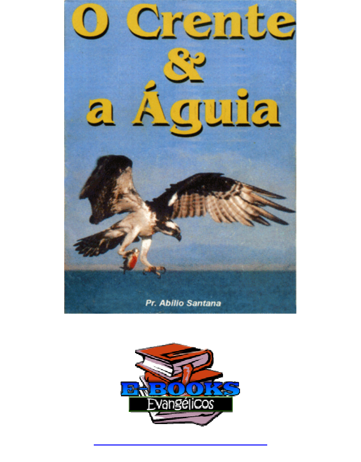 Livreto digitalizado por: Levita Digital Com exclusividade para: http://ebooksgospel.blogspot.com/ O CRENTE & A ÁGUIA O CRENTE E A ÁGUIA Gratidão Ao único e eterno Deus de Israel. E meu Deus também por me inspirar para que esta, fosse deitada em letras. Dedicatória A minha esposa - Marili Santana (INHA) Ao meu filho - MisaelSantana (MISA) A dona Nalva - grande águia na fé (Minha mãe) Antônio Barros - (Amigo) - Que ajudou e cooperou na revisão desta. Abílio Silva Santana Vosso em Cristo O CRENTE E A ÁGUIA Na criação do mundo, o Senhor Deus criador do Universo, teve o cuidado de fazer certas coisas humanamente falando, espantosas aos nossos olhos, mas, sem sombra de dúvida para nos dar exemplos futuros. A águia por exemplo: Seu golpe de vista, suas garras, sua capacidade de vôo, sua astúcia, sua prudência, sua vida num todo. TIPO DE ÁGUIA Segundo a ornitologia, existem 08 espécies de águias, saber: 1 - Águia Dourada 2 - Águia Cinzenta - seu nome deriva-se do penhasco, a cauda é preta com a extremidade branca, seu corpo mede aproximadamente 85 cm de comprimento, incluindo o bico e a cauda. É encontrada no Brasil, Bolívia, Paraguai e Argentina. 3 - Águia Calçada - os seus pés mostram estabilidade quando se encontra assentada nos galhos das árvores. 4 - Águia Pescadora - vive da pesca. 5 -Águia do Dedo Curto - elas tem os dedos curtos que não tem estabilidade quando se assenta em algum galho de árvore. 6 - Águia Mosqueada - o seu corpo é todo mesclado de manchas. 7 - Águia Nipalenses - essa espécie de águia só se encontra no deserto e tem uma vida isolada, em lugares inabitados. 8 - Águia Imperial - é uma das águias mais bonitas e de presença agradável. Esta espécie possui uma capacidade de domínio sobre as demais de sua família. A ÁGUIA E OS IMPÉRIOS Anteriormente os países que consideravam-se fortes e invencíveis tinham como símbolo uma águia. Os Estados Unidos da América, tomou a águia como seu símbolo em 1872, para cumprir-se o que está escrito (Dt. 28:4-9). Semelhantemente os impérios: Russo, Prussiano, Austríaco, a França de Bonaparte e o império Romano. Na era de Jesus ostentava-se no cume do templo de Salomão uma grande águia, que era o símbolo de Roma. O CRENTE E A ÁGUIA Depois de meditar com bastante precisão, em Isaias 40:31 e II Samuel 1:23, fui obrigado a fazer uma pesquisa profunda sobre estes dois seres distintos, a saber: o crente e a águia. Cheguei a conclusão que os escritores dos versículos citados, estavam redondamente certos, quando disseram que o crente é semelhante a uma águia. INTRODUÇÃO AO TEXTO Em Isaias 40 versículo 31 lemos o seguinte: "Mas os que esperam no senhor, renovação as duas forças, e subirão com asas de águias ", observem que há duas promessas nesse texto bíblico. Observem também que estas duas promessas não é para todos os habitantes da terra, e sim para os que esperam no Senhor. O texto é taxativo, as promessas são para os que esperam no Senhor Deus de Israel e não para os que esperam em: São Fulano ou São Beltrano (ídolos). Fica aqui uma indagação. Qual o povo que de fato espera no Senhor, senão os crentes na pessoa bendita de Jesus? Então o texto acima diz que para os crentes há duas promessas: 1 - Forças renovadas (Renovarão as suas forças); 2 - De subir aos céus, semelhantemente a uma águia. (O que será que I saias viu na águia, ou nas águias para usá-la como figura, símbolo, tipo do cristão?) Segundo o doutor Russel Wallace (Grande ornitólogo), há no mundo 10.087 tipos de aves, e porque em meio a 10.087 tipos de aves, Isaías não usou outro pássaro qualquer. » Tal como: Codorna, andorinha, bem-te-vi, sabiá, sua majestade rouxinol, etc. E sim uma águia? A resposta não é outra senão "nenhuma outra ave poderia representar tão bem o cristão, quanto a águia " (digo salvo). DEFININDO O TEXTO ISAÍAS 40:31 A águia representa legalmente o crente. O crente e a águia são como a gente profere na Bahia "é tudo farinha do mesmo saco". Não se sabe quem é a xerox ou a matriz. A partir de agora estaremos estudando sobre esta majestosa ave, rainha das aves. Bem, o crente é representado por uma águia, sabeis porque? Eis as razões: 1 - DA FAMÍLIA DE PÁSSAROS GIGANTESCOS A águia não é da família de pássaros minúsculos, e sim de pássaros gigantescos, da família dos falcões e falconizes de natureza que duma ponta a outra da asa é cerca de 3m de águia. Da ponta do bico às penas da cauda é cerca de 90cm de águia. A águia é da família de pássaros grandes. Que lição aprendemos aqui? O crente é da família não de deuses minúsculos e sim do GRANDE DEUS, que fez o céu e a terra. (Sal. 95:3; Sal. 77:13; 1Cr. 16:25; Sal. 48:1) 2 -A ÁGUIA É AVE DE RAPINA A águia como ave de rapina, sai em busca de sua presa, de sua alimentação. Inclusive o próprio Jesus abordou sobre este assunto. (Mat. 24:28; Jó 9:26). Assim deve ser o crente águia, deve sair em busca de sua alimentação espiritual, nas vigílias, nos cultos matutinos, congressamentos enfim onde tiver comida espiritual, vá, e alimente-se. 3- O COMPANHEIRO DA ÁGUIA A ornitologia profere que nenhuma outra ave é tão unida quanto as águias, elas são tão unidas que quando um caçador chega a capturar uma delas, as demais choram literalmente, a falta da águia capturada. (Será que isto é companheirismo?). Assim deve ser o crente águia, deve amar o seu irmão com amor ágape (amor sacrificial), Sal. 133:1-3. Já diz o adágio popular "uma comunidade unida, jamais será vencida". (Gl. 6:2). 4-A VISÃO DA ÁGUIA O golpe de vista da águia é humanamente falando incomparável. É a única ave que encara por quantas horas quiser o resplendor do sol. A águia é dotada de um grande poder visual, tem olhos graúdos de natureza que o mesmo ocupa quase um terço do seu crânio, segundo a ornitologia o cristalino dos olhos das águias focaliza uma formiga a lO.OOOm de alt