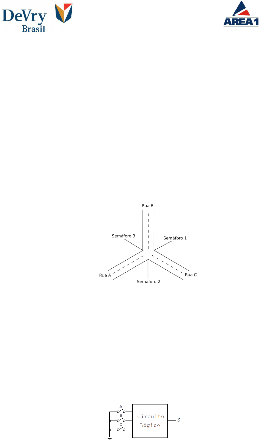 1 Disciplina: Eletrônica Digital Professora: Priscila Doria Nome do aluno: Lista de Exercícios Nº 4 1. Uma escola tem sua diretoria constituída pelos seguintes elementos: Diretor, Vice-Diretor, Secretário e Tesoureiro. Uma vez por mês esta diretoria se reúne para decidir sobre diversos assuntos, sendo que as propostas são aceitas ou não através de votação. Projete um circuito que acende uma lâmpada caso a proposta seja aprovada pela diretoria. Como o número de elementos da diretoria é par, o sistema adotado é o seguinte: • Maioria absoluta: se no mínimo três elementos são, respectivamente, a favor ou contra; • Empate: vence o voto dado pelo diretor. 2. A figura a seguir mostra um entroncamento das ruas A, B e C. Neste cruzamento, queremos instalar um conjunto de semáforos para as seguintes funções: a. Quando o semáforo 1 abrir para a Rua A, automaticamente os semáforos 2 e 3 devem fechar, para possibilitar ao motoristas ambas as conversões; b. Analogamente, quando o semáforo 2 abrir, devem fechar os semáforos 1 e 3; c. Pelo mesmo motivo, quando o semáforo 3 abrir, devem fechar os semáforos 1 e 2. Devemos seguir também, as seguintes prioridades: a. O motorista que está na rua A tem prioridade em relação ao motorista que está na rua B; b. O motorista que está na rua B tem prioridade em relação ao motorista que está na rua C; c. O motorista que está na rua C tem prioridade em relação ao motorista que está na rua A; d. Quando houver carros nas três ruas, a rua A é preferencial; e. Quando não houver nenhum carro nas ruas, devemos abrir o sinal para a rua A. Obtenha as expressões e os circuitos dos sinais verdes e vermelhos, dos semáforos 1, 2 e 3. 3. Desenhe um circuito para, em um conjunto de três chaves, detectar um número par destas ligadas. Convencionar que chave fechada equivale a nível 0. 2 4. Desenhe um circuito para, em um conjunto de três chaves, detectar um número ímpar destas ligadas. Convencionar que chave fechada equivale a nível 0. 5. Obtenha um circuito combinacional que funcione como uma chave seletora digital com duas entradas e uma saída digital. O circuito, em função do nível lógico aplicado a uma entrada de seleção, deve comutar à saída os sinais aplicados às entradas digitais. 6. Obtenha um circuito combinacional que funcione como uma chave seletora digital com 4 entradas e 1 saída. O circuito, em função do nível lógico aplicado a duas entradas de seleção, deve comutar à saída os sinais aplicados às entradas digitais. 7. Projete um circuito lógico para abastecer três tanques (T1, T2 e T3) de glicose em pavimentos distintos em uma indústria de balas e biscoitos, através do controle de duas bombas, conforme esquematizado na figura abaixo. O abastecimento principal é feito por caminhão-tanque que fornece o produto diretamente ao T1 disposto no piso térreo localizado à entrada da empresa. Desenvolva o projeto supondo que o nível máximo de T1 seja controlado pelo caminhão, coloque os sensores de controle nas caixas, convencione as variáveis e desenhe o circuito final. 8. Analise e faça a interpretação prática das expressões obtidas no exercício 7. 9. Elabore um circuito lógico para encher ou esvaziar um tanque industrial por meio de duas eletroválvulas, sendo um para a entrada do líquido e outra para o escoamento de saída. O circuito lógico através da informação de sensores convenientemente dispostos no tanque e de um comando elétrico com dois botões interruptores, sendo cada um de duas posições, deve atuar nas eletroválvulas para encher o tanque até a metade (botão de baixo ativado), encher totalmente (ambos ativados ou apenas o de cima) ou, ainda, esvaziá-lo totalmente (botões desativados). 10. Analise e faça a interpretação prática das expressões obtidas no exercício 9. 11. Um técnico em informática deve construir um dispositivo para auxiliar no diagnóstico de determinada doença W. A doença é diagnosticada através da análise do valor do volume de três substâncias, S1, S2 e S3, encontradas no sangue. Considera-se que a pessoa tem a doença W nas seguintes situações: Situação Volume de S1 Volume de S2 Volume de S3 1 ≤ 10 > 20 > 45 2 > 10 ≤ 20 ≤ 45 3 > 10 ≤ 20 > 45 4 > 10 > 20 > 45 pavimento 2 pavimento 1 piso térreo 3 As variáveis lógicas T, V e X foram definidas da seguinte maneira: Qual é a expressão lógica que deverá ser implementada no dispositivo para indicar que a pessoa tem a doença W? 12. Uma agência bancária, com expediente de 10h até 16h, tem dois gerentes. Por motivos de segurança, cada gerente possui uma chave do cofre, cuja abertura está submetida a restrições de tempo. Durante o expediente, qualquer dos gerentes pode abrir o cofre; entretanto, fora do expediente, é preciso a presença de ambos. O quadro apresenta os valores lógicos de duas variáveis (T16 e T10) que permitem identificar o horário de funcionamento. T16 T10 Horário 0 0 Antes do expediente (0-10h) 0 1 Durante o expediente (10h – 16h) 1 1 Após o expediente (16h - 24h) 1 0 Impossível Representando a presença de cada gerente pelas variáveis lógicas G1 e G2, qual é a expressão lógica que habilita a abertura do cofre? 13. Uma empresa capta a água que necessita de um rio próximo ao seu reservatório. Esta água é transferida ao reservatório, passando antes por uma estação de tratamento. Sempre que o sensor de nível alto do reservatório (SNAR) estiver desativado, a bomba do rio (BR) deve ser ligada para encher o reservatório até o sensor SNAR ser acionado. A empresa está numa região de baixo índice pluviométrico e o rio às vezes, fica baixo e não é possível captar a água. Então, se o sensor de nível crítico do rio (SNCR) estiver desacionado, um alarme sonoro (AS) deve avisar o operador do sistema e a bomba do rio deve ficar desligada. Ao mesmo tempo, a caixa d’água da indústria deve ficar com seu nível sobre o s