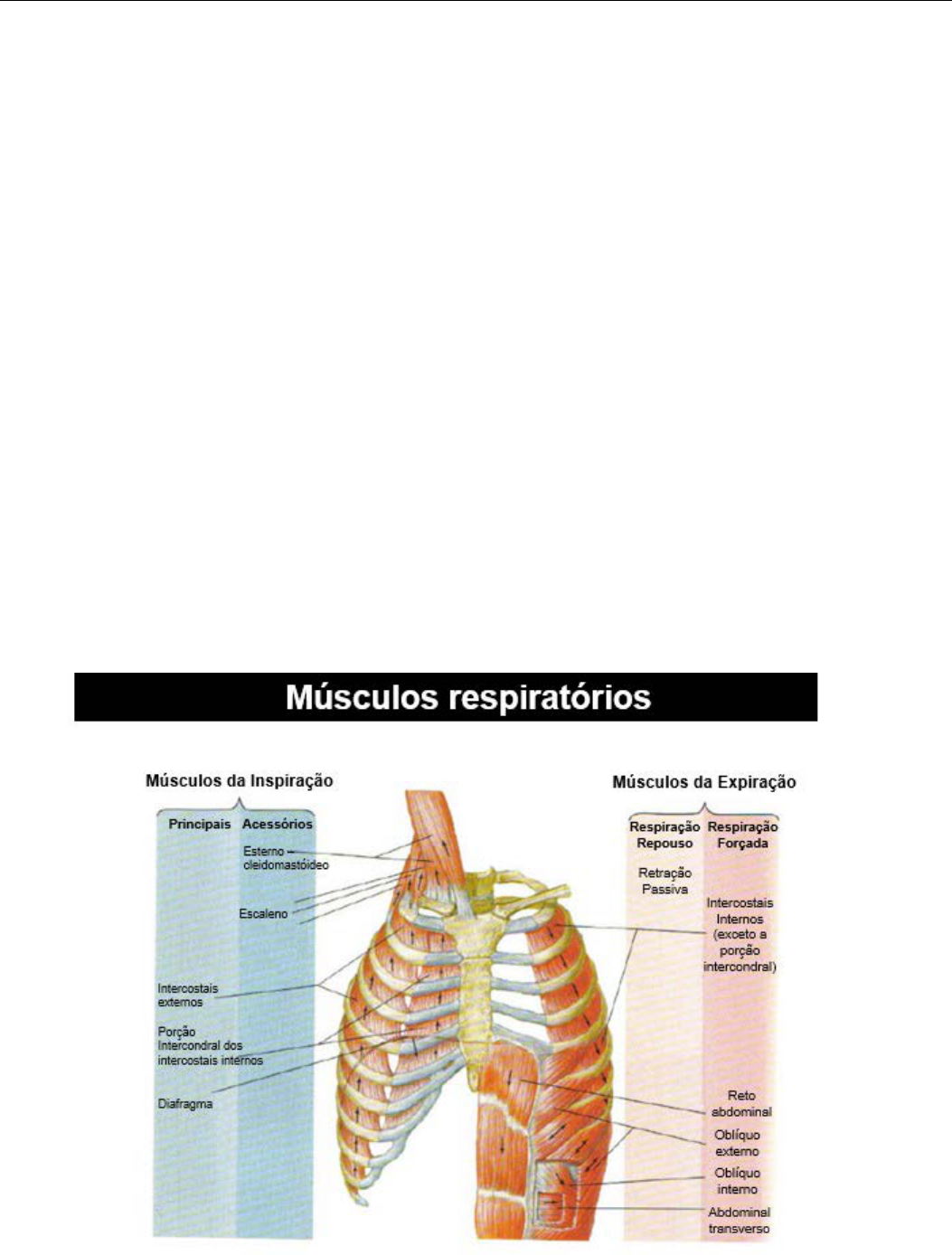 MÓDULO 9: MECÂNICA RESPIRATÓRIA 1. Quais são os músculos envolvidos na inspiração e expiração durante o repouso e o exercício? INSPIRAÇÃO NO REPOUSO: m. diafragma e mm. intercostais externos INSPIRAÇÃO NO EXERCÍCIO: esternocleidosmastóideo, dilatador da narina, escalenos... além dos músculos da boca A inspiração é um processo ativo dependente de trabalho muscular. Com contração do diafragma, principalmente, o músculo se abaixa e força os conteúdos abdominais para baixo e para a frente, aumentando a dimensão da caixa torácica. As margens costais também elevam-se e são movimentadas para fora, em um movimento de “alça de balde”. Com o aumento do volume torácico, diminui a pressão da cabidade torácica e dos pulmões, favorecendo a entrada de ar. EXPIRAÇÃO NO REPOUSO: retração passiva (pelas características elásticas do pulmão) – relaxamento dos músculos respiratórios EXPIRAÇÃO NO EXERCÍCIO: intercostais internos, reto abdominal, oblíquo interno e externo e transverso. A expiração em repouso é passiva – não requer trabalho muscular nem gasto de energia, havendo apenas o relaxamento dos músculos empregados na inspiração. Assim, há retração da caixa torácica e dos pulmões devido às forças elásticas, favorecendo a saída de ar. Durante a expiração forçada, porém, como no exercício físico, a expiração conta com a ação da musculatura, tracionando as costelas para baixo e para dentro e reduzindo ainda mais o volume torácico. 2. Quais são os valores normais das pressões alveolares e intrapleurais durante o ciclo respiratório? Explique por que a pressão intrapleural é menor que a pressão alveolar. PRÉ-INSPIRAÇÃO: Alveolar: próximo de 0 cmH20 (equilíbrio com a pressão atmosférica) Intrapleural: próximo de - 5cmH20 DURANTE A INSPIRAÇÃO: Alveolar: varia até – 1 cmH20 Intrapleural: varia até cerca de - 7cmH20 INÍCIO DA EXPIRAÇÃO: Alveolar: vai até 1 cmH20 Intrapleural: - 8cmH20 FIM DA EXPIRAÇÃO: Alveolar: volta a 0 cmH20 Intrapleural: - 5 cmH20 A pressão intrapleural é menos do que a pressão alveolar porque o líquido intrapleural é retirado da cavidade intrapleural pelo sistema linfático, criando uma pressão negativa. Essa menor pressão permite que ocorra expansão dos alvéolos pulmonares durante a inspiração. Já o alvéolo faz parte de um sistema aberto à atmosfera e, sendo assim, sua pressão viária, mas entra em equilíbrio em algum momento com a pressão atmosférica. 3. Desenhe a curva pressão-volume dos pulmões (diagrama de complacência). Explique a histerese da curva. O diagrama acima relaciona as alterações do volume pulmonar com as mudanças da pressão transpulmonar. Observe que a relação é diferente para a inspiração e para a expiração. As duas curvas são denominadas de curva de complacência inspiratória e curva de complacência expiratória. As características desse diagrama de complacência são determinadas por 2 fatores: • A força elástica do tecido pulmonar propriamente dito; - é determinada em grande parte pelas fibras de elastina e de colágeno entrelaçadas no parênquima pulmonar. Em pulmões vazios, essas fibras estão contraídas e dobradas; nos pulmões expandidos, estão estiradas e desdobradas. • As forças elásticas causadas pela tensão superficial do líquido que reveste as paredes internas dos alvéolos e outros espaços aéreos pulmonares. – quando os pulmões estão cheios de ar, há uma interface entre o líquido alveolar e o ar no interior do alvéolo. Note, no gráfico abaixo, que se os pulmões estiverem cheios de solução salina, não haverá essa interface e o efeito da tensão superficial não estará presente – de forma que apenas as forças elásticas dos tecidos estarão atuantes. Histerese é um fenômeno no qual um material responde de forma distinta na aplicação de um estímulo e na retirada desse mesmo estímulo. A histerese pulmonar demonstra que o volume pulmonar é sempre maior durante a desinsuflação que durante a insuflação, com pressões iguais. A histerese, ou seja, o diferente comportamento pulmonar durante a inspiração e expiração deve-se , assim, aos seguintes fatos: Durante a inspiração, os pulmões devem vencer as forças elásticas do pulmão e as forças de tensão superficial da água, de modo que a expansão da caixa torácica é dificultada – requer uma maior pressão para variar um certo volume. Já durante a expansão, o processo é passivo, visto que em função das próprias forças elásticas, o pulmão já possui a tendência de colabar. 4. Considerando a lei de Laplace, explique a importância da tensão superficial na superfície do alvéolo. Discuta o papel do surfactante pulmonar na redução da tensão superficial. A lei de Laplace descreve a relação entre a tensão superficial (T), a pressão (P), o raio (r) : Analisando a fórmula, temos: → Quanto maior o raio do alvéolo, menor é a pressão colapsante gerada pela tensão superficial da água. Sendo assim, menor é a pressão exigida para manterem-se abertos. → Se o raio do alvéolo é pequeno, a água na superfície alveolar irá se atrair mais fortemente e assim, haverá uma maior pressão colapsante. Dessa forma, será exigida uma maior pressão para evitar o colapso. A tensão superficial de água na superfície alveolar decorre da tendência que as moléculas têm de interagir umas com as outras e, consequentemente, colapsar o alvéolo. Ela é importante para permitir o processo passivo da expiração, auxiliando no colabamento dos alvéolos pulmonares através da força de contração da água. O surfactante promove a redução da tensão superficial da água, reduzindo as forças intermoleculares entre as moléculas de água. Em outras palavras, o surfactante evita que as moléculas de água se contraiam, estabilizando os alvéolos e reduzindo a tendência de os alvéolos menores se colapsarem. Ele faz com